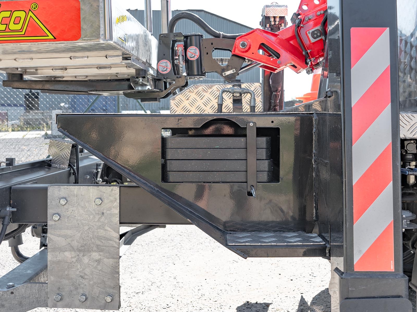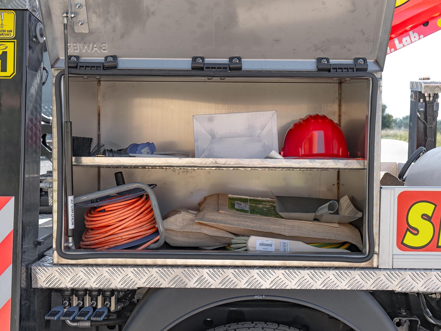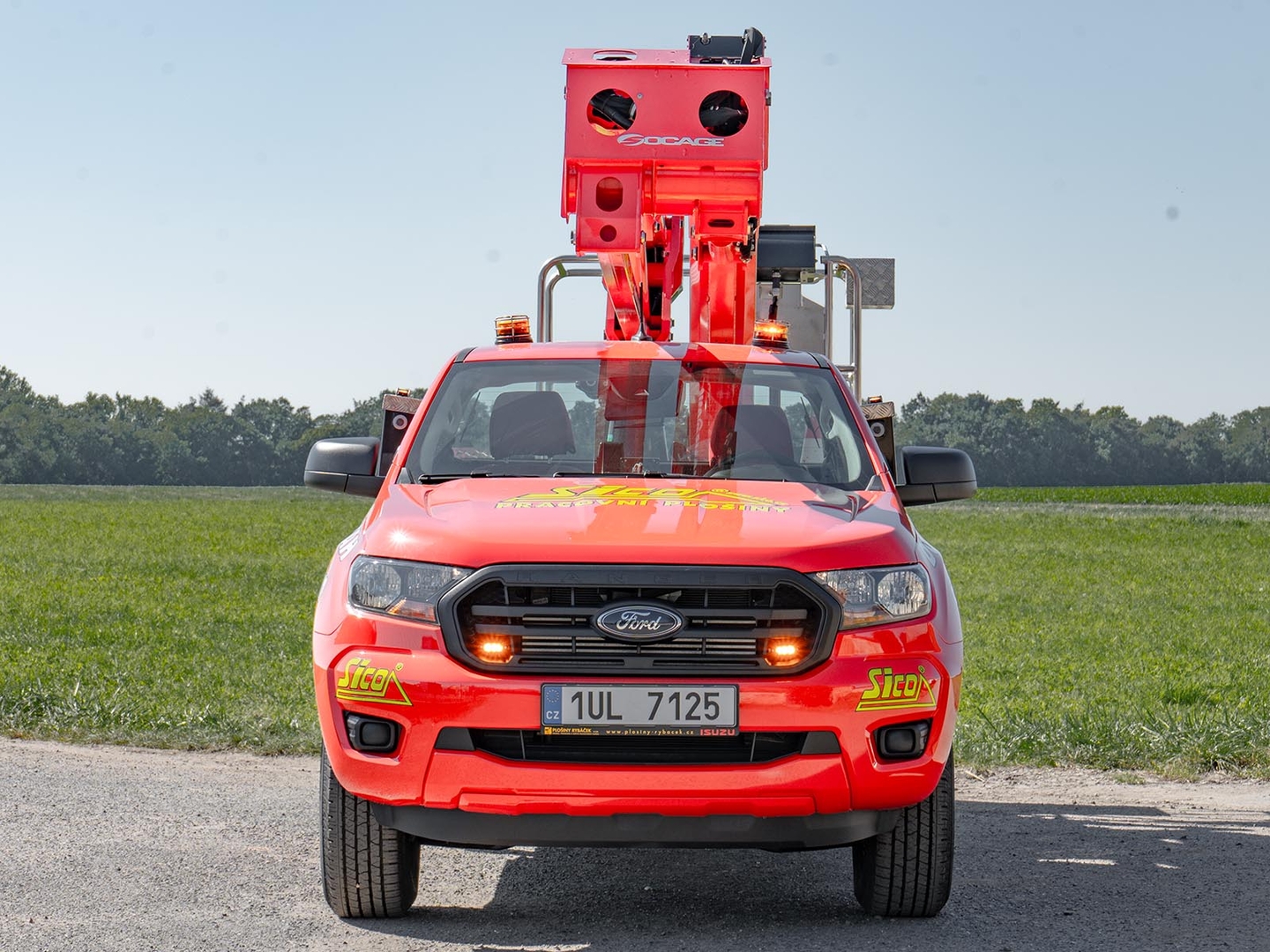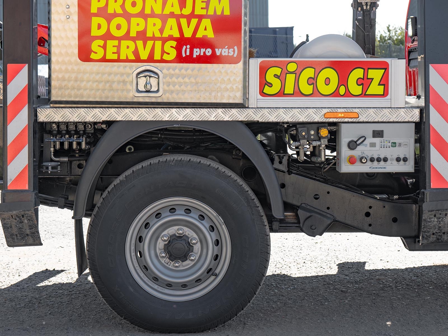 A truck mounted platform on a 4x4 car chassis with intuitive controls, good cross-country ability and a working height of up to 15,5 meters. The machine uses a two-arm articulated-telescopic construction allowing a lateral reach of up to 7,3 meters with a platform load of 80 kilograms. Control is fully proportional and very clear and intuitive. The machine is also equipped with an electric drive (230V). Maximum stability when working at height is ensured by 4 hydraulic supports, and the safety of workers is ensured by hydraulic cylinder locks that prevent loss of pressure. The weight of the machine does not exceed 3,5 tons and therefore it is possible to rent it with a driving license of group B.