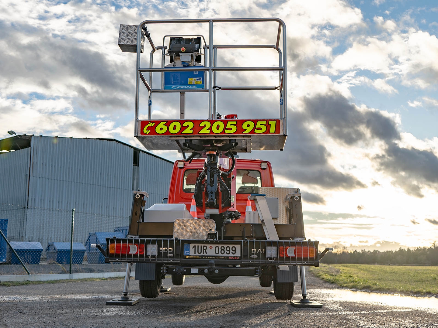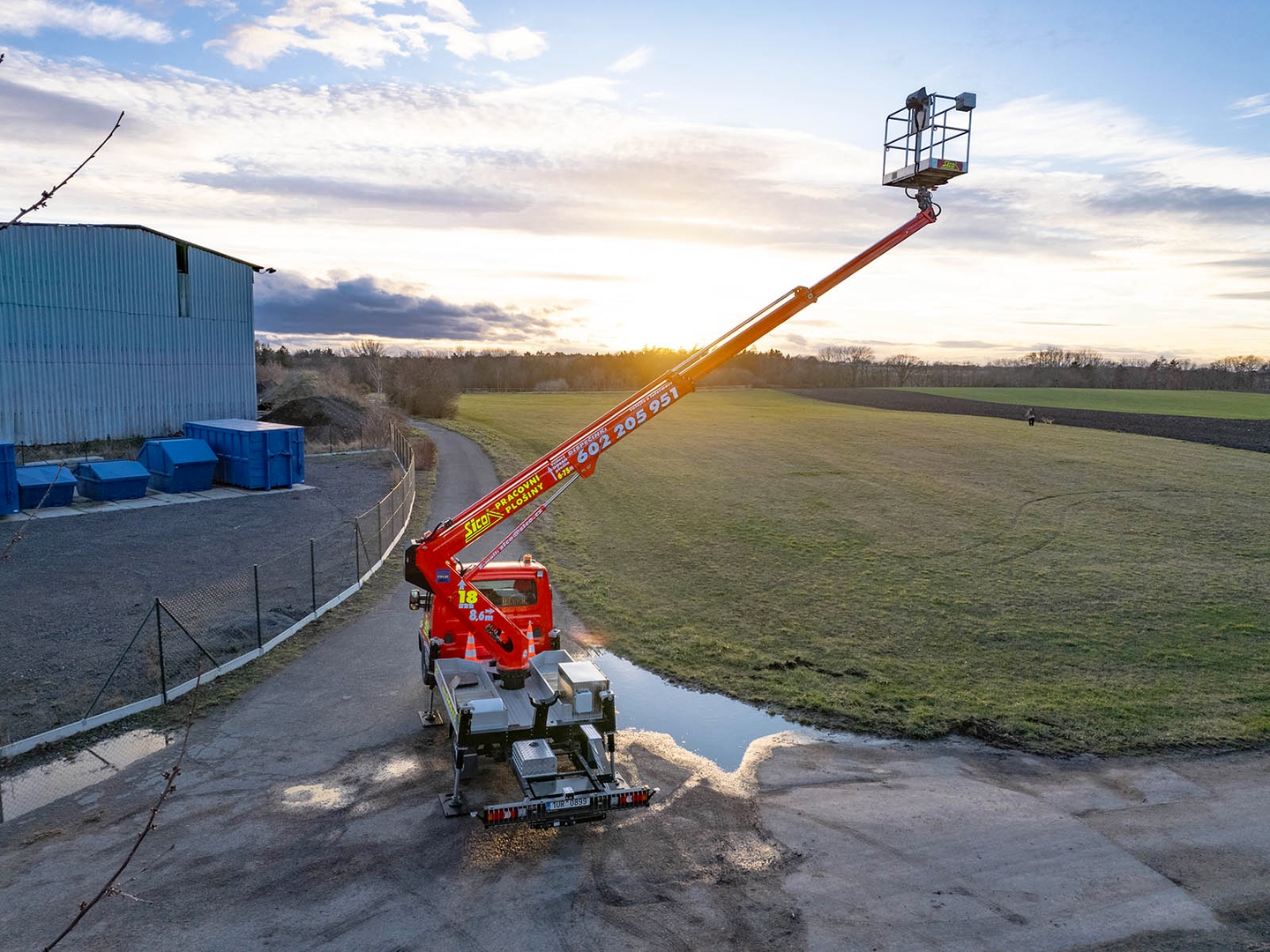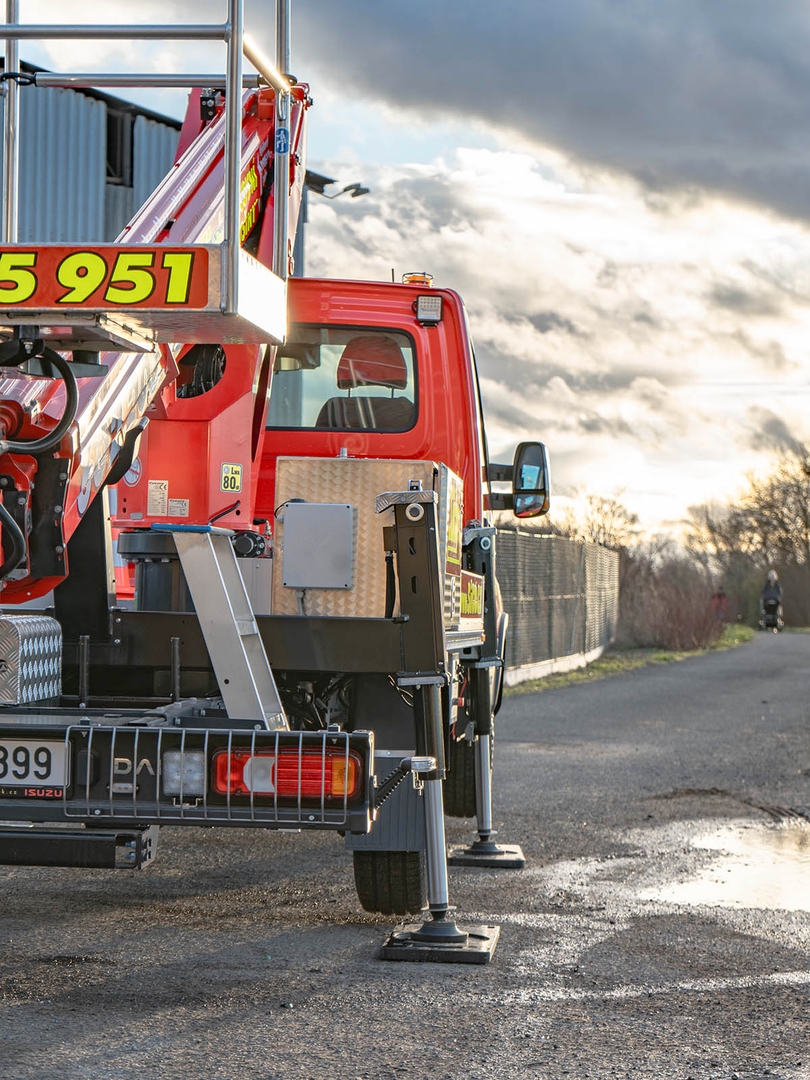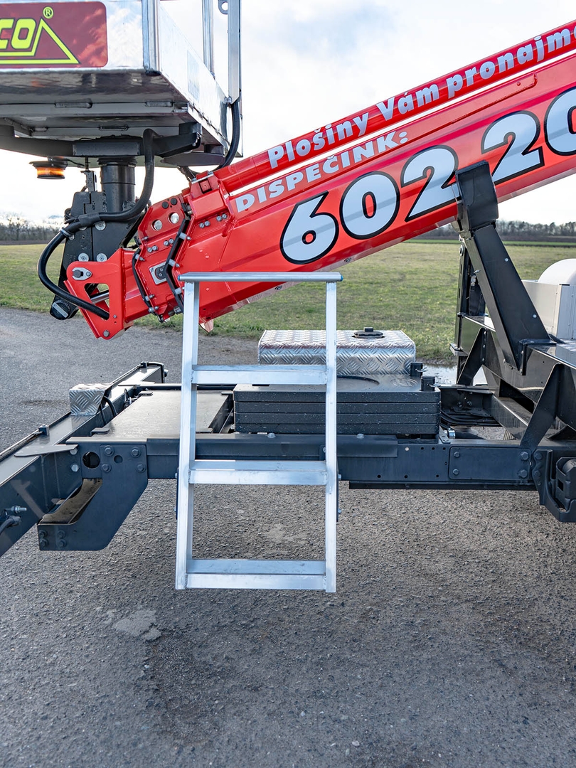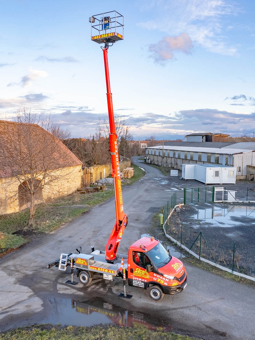 High-quality steel and an innovative telescopic body design ensure safety even at a maximum height of 17,7 metres. The maximum lateral reach is dependent on the load of the work basket and stops at 10 metres at 80 kilograms.