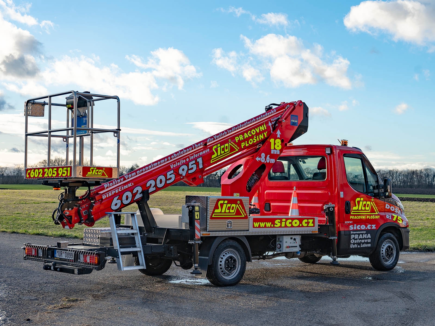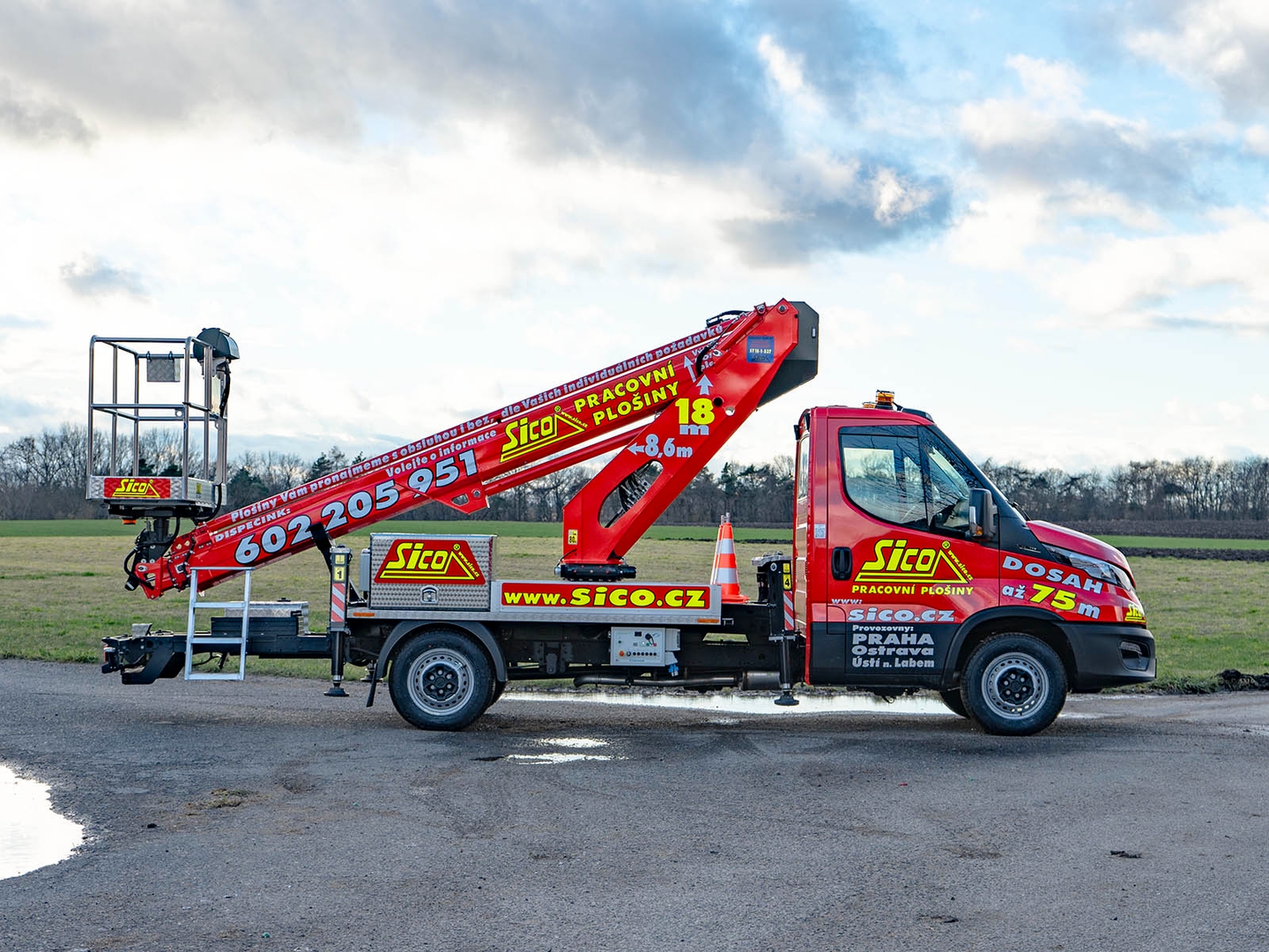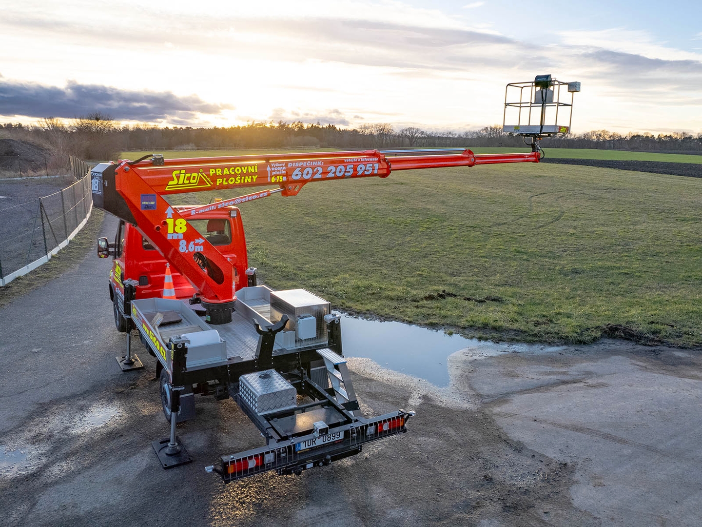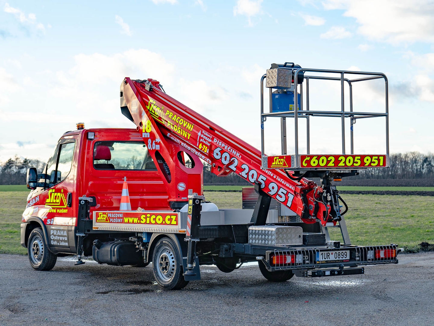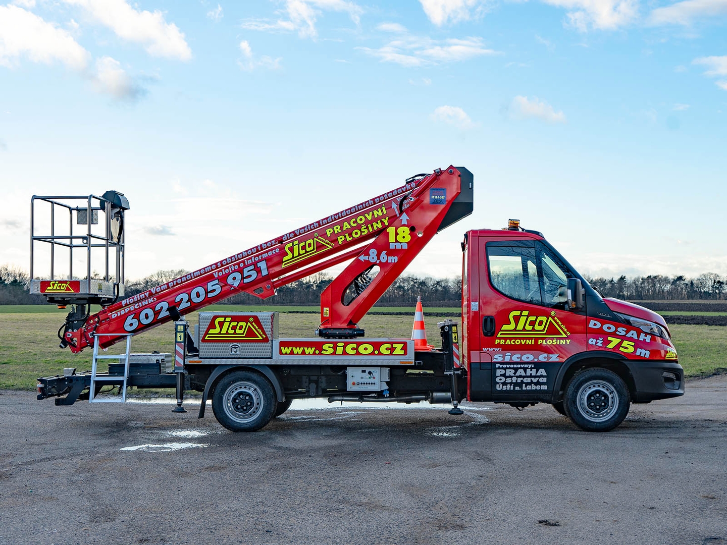 High-quality steel and an innovative telescopic body design ensure safety even at a maximum height of 17,7 metres. The maximum lateral reach is dependent on the load of the work basket and stops at 10 metres at 80 kilograms.