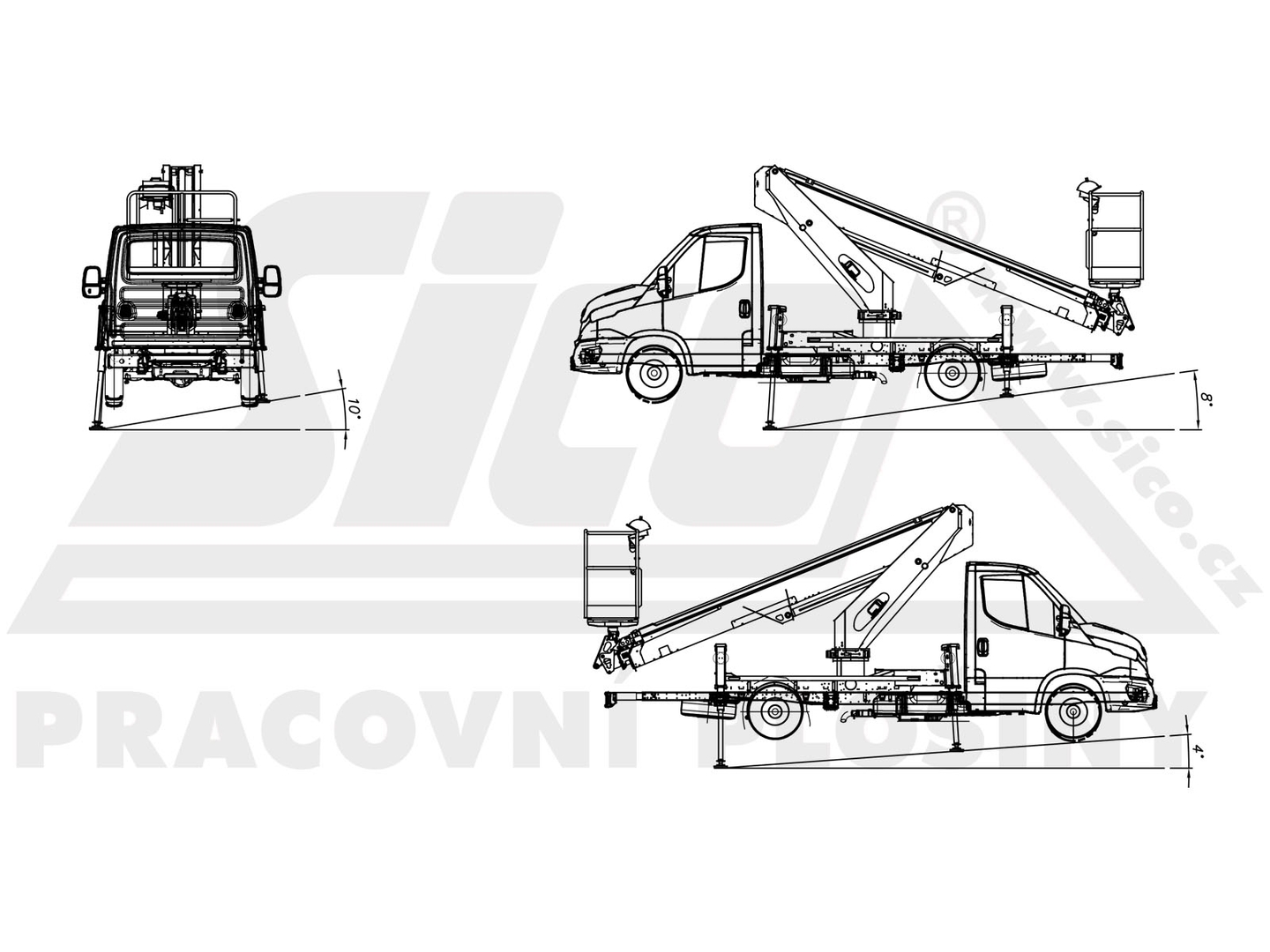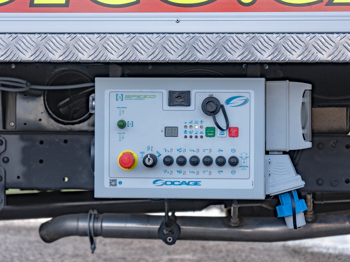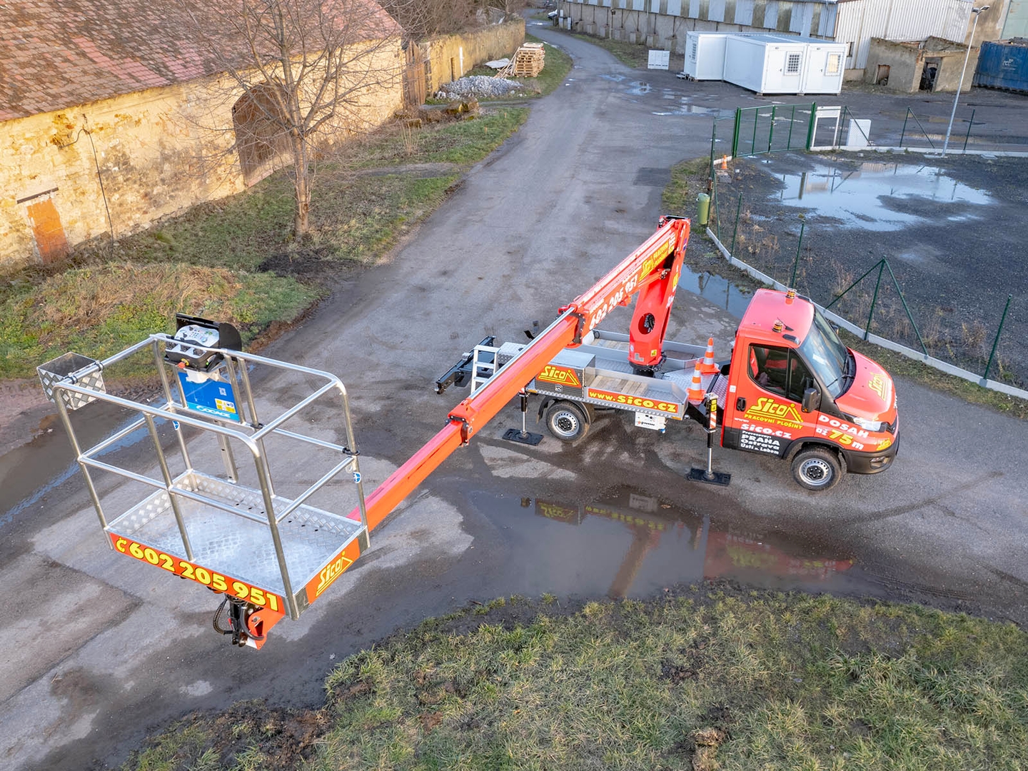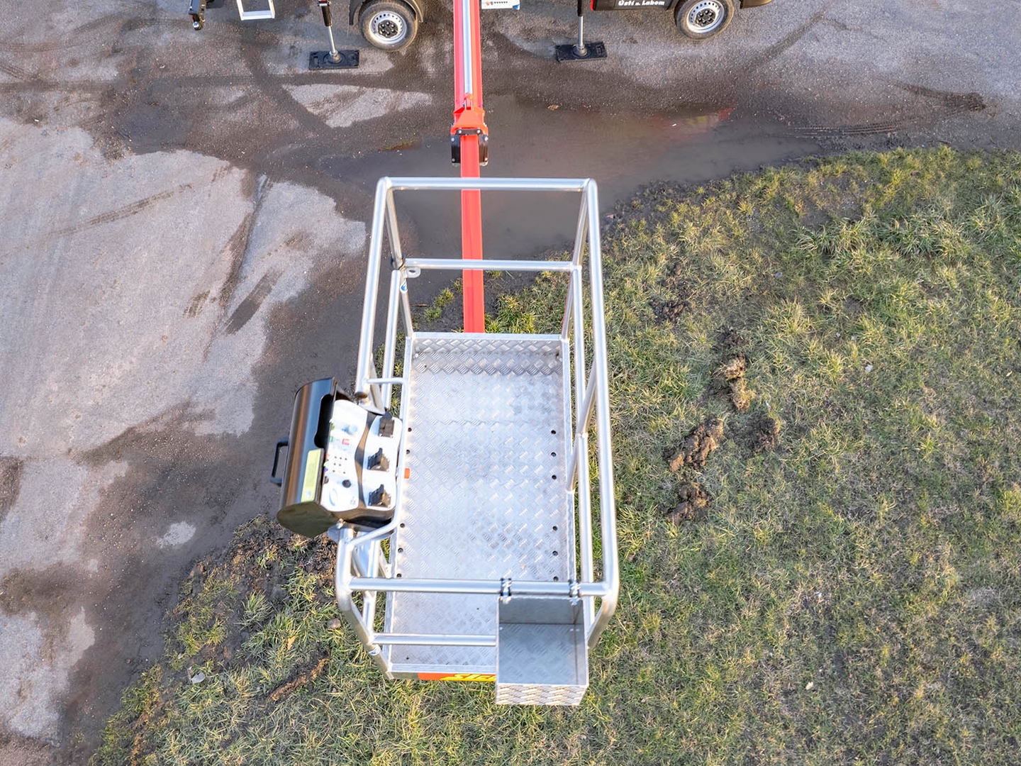 Stability is ensured by 4 supports with sufficient travel and safety at work is ensured by a range of systems including tilt gauge, hydraulic valve locks, load sensors. The platform allows remote emergency control.