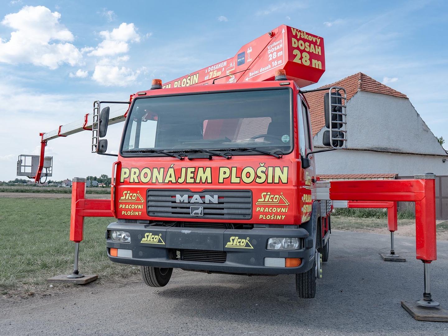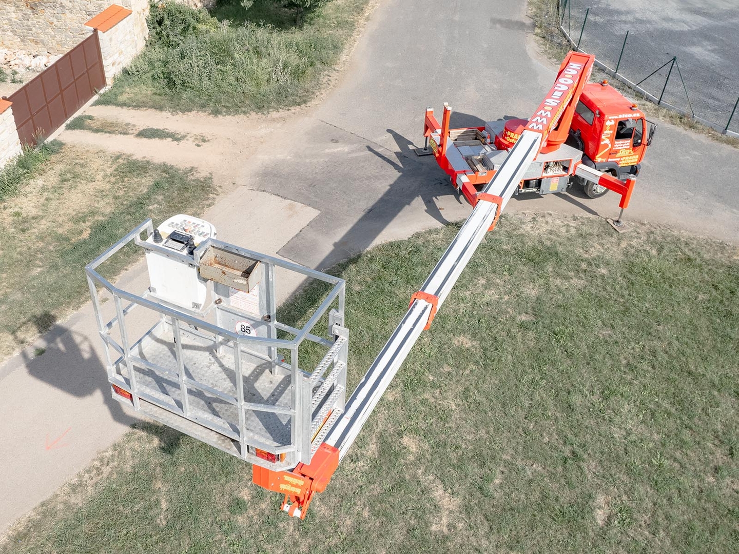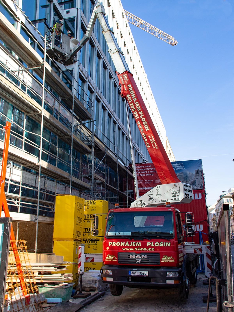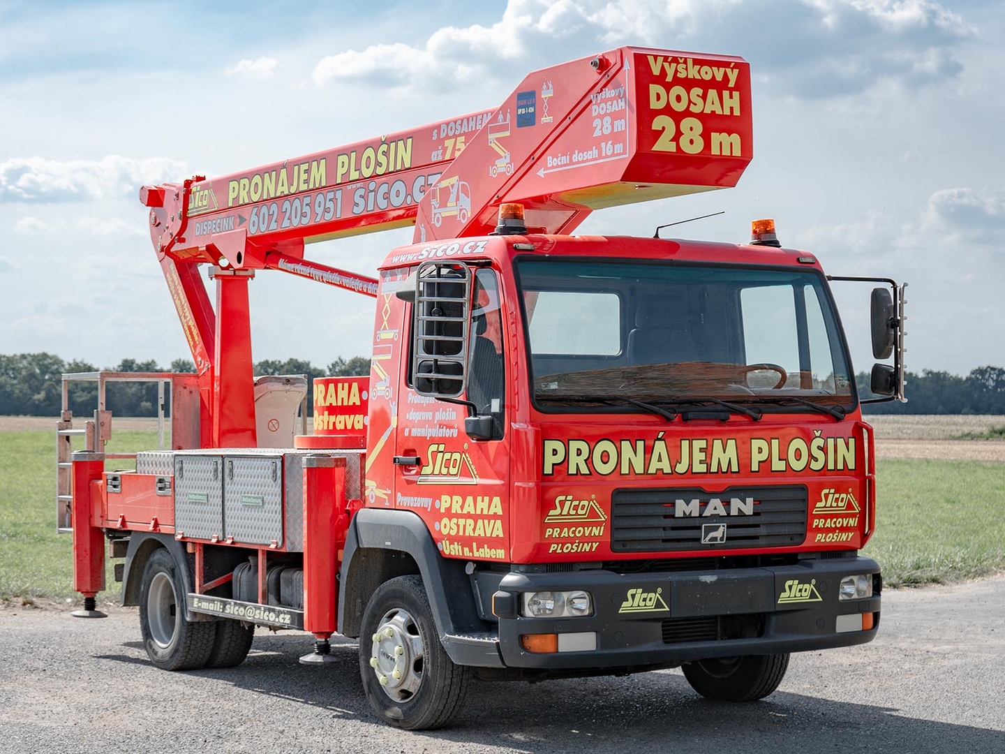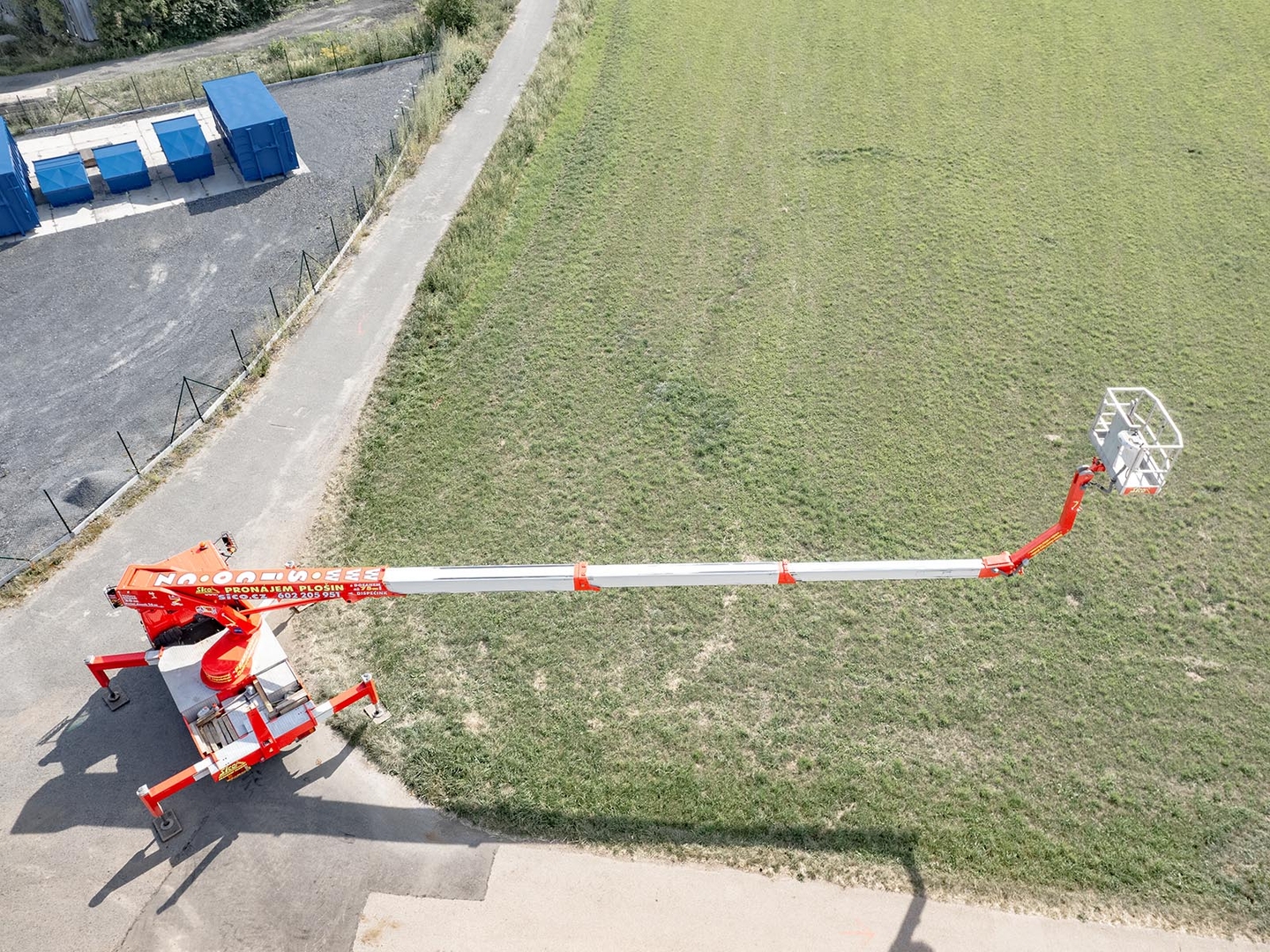 The robust patented construction of the Bison-Palfinger manufacturer with a telescopic boom with a JIB arm ensures the necessary stability when working at a height of up to 28 meters.