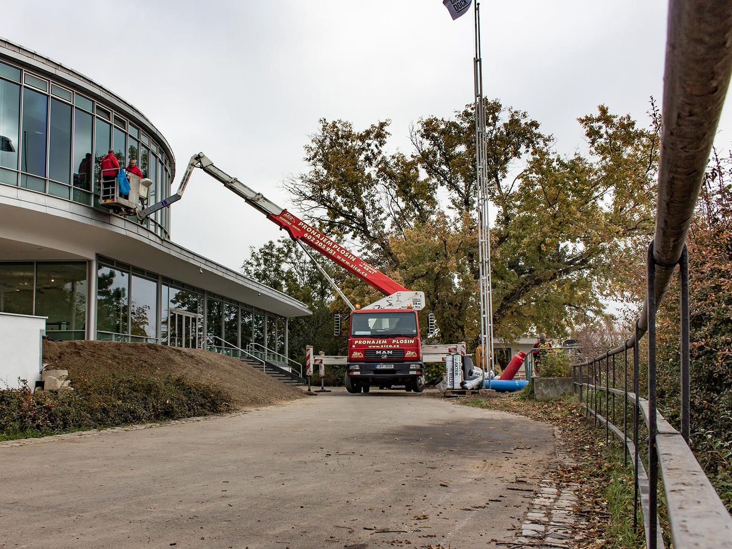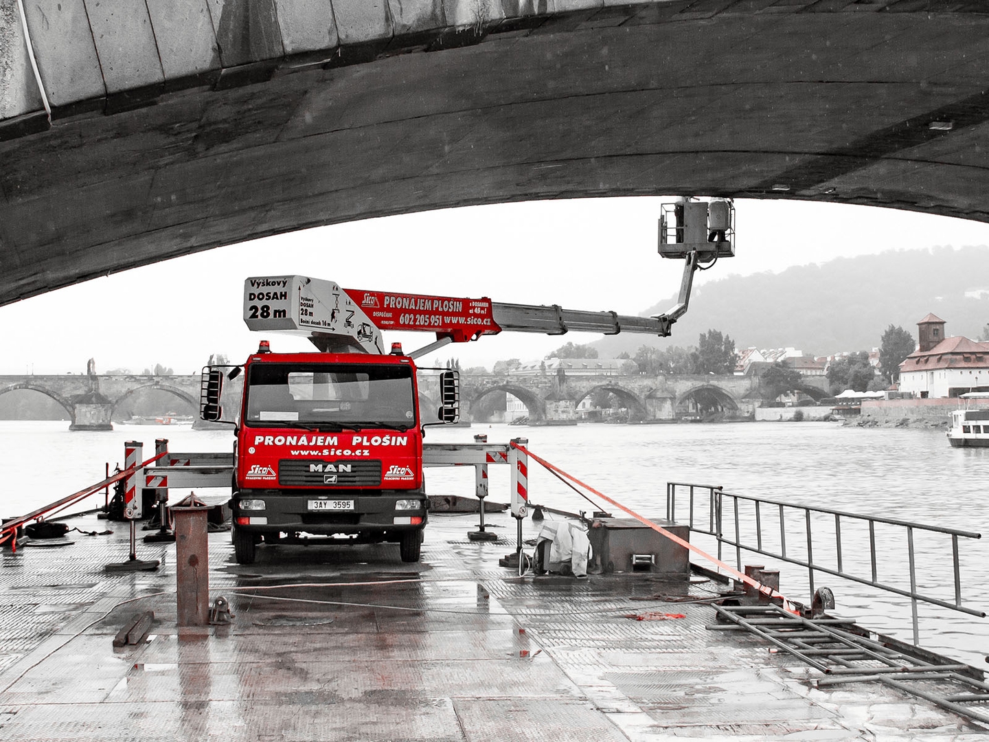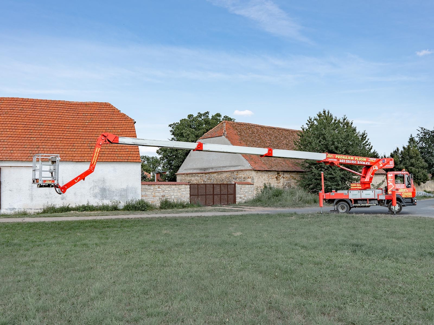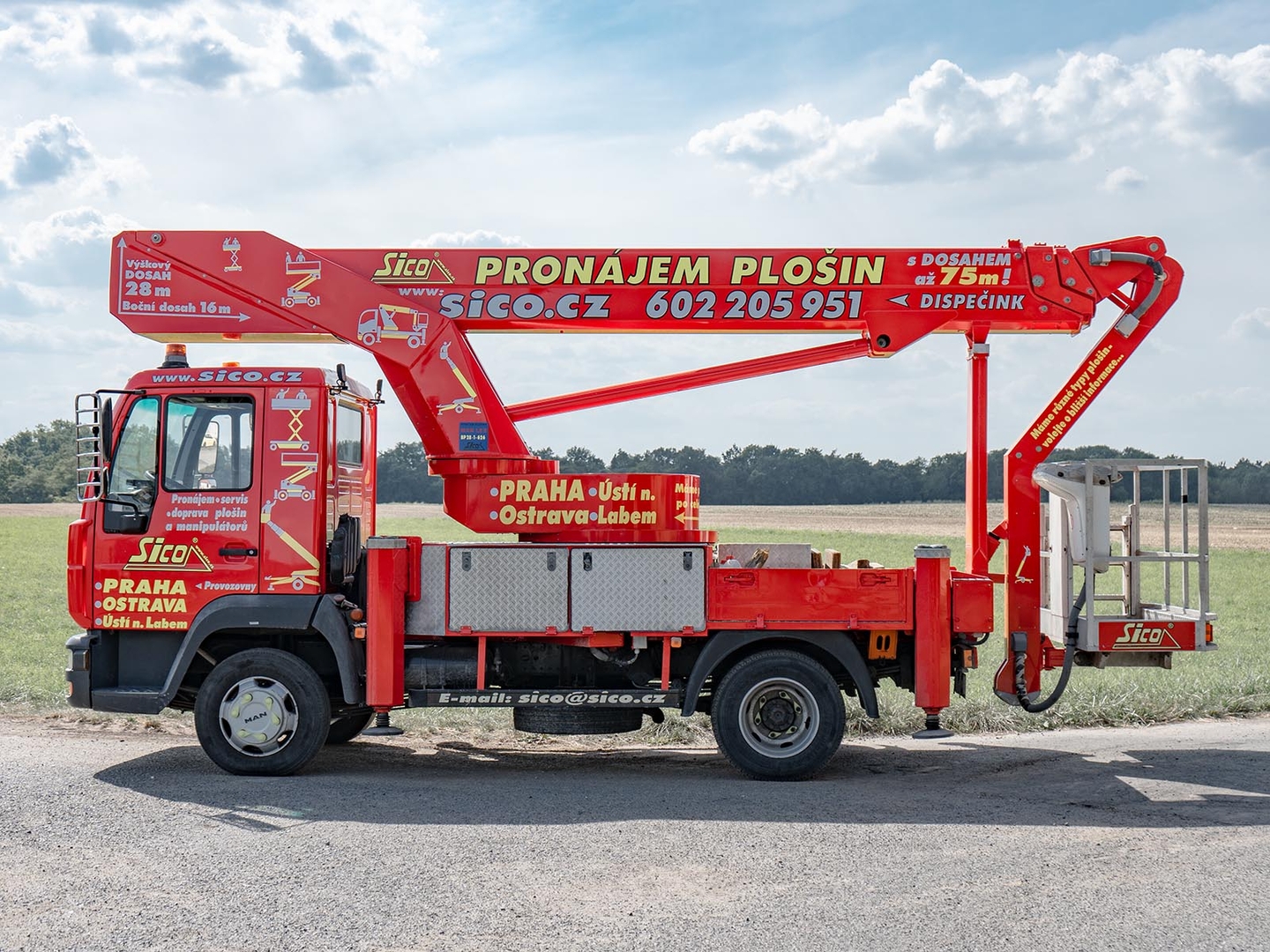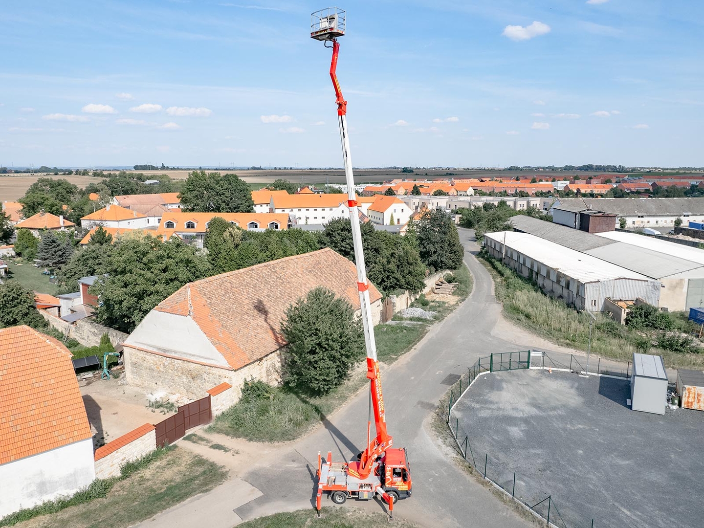 The robust patented construction of the Bison-Palfinger manufacturer with a telescopic boom with a JIB arm ensures the necessary stability when working at a height of up to 28 meters.