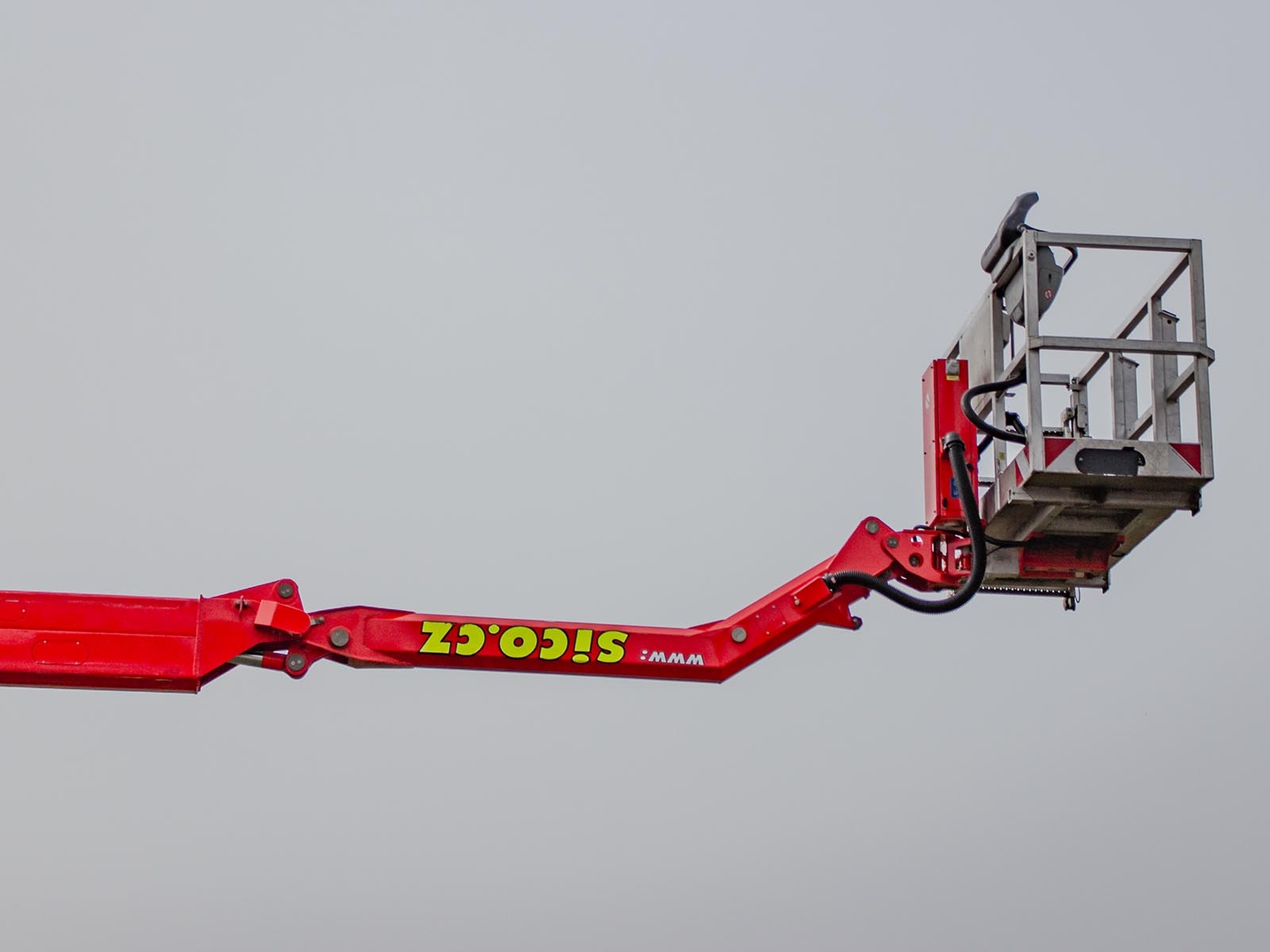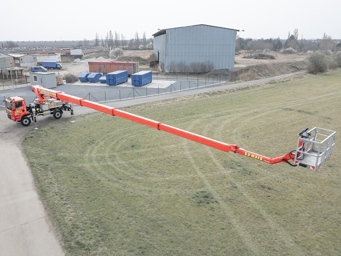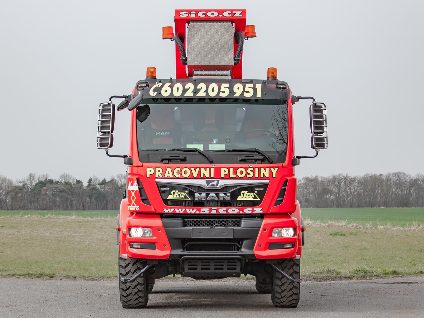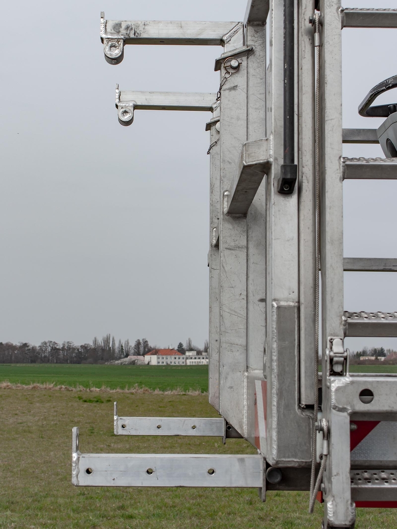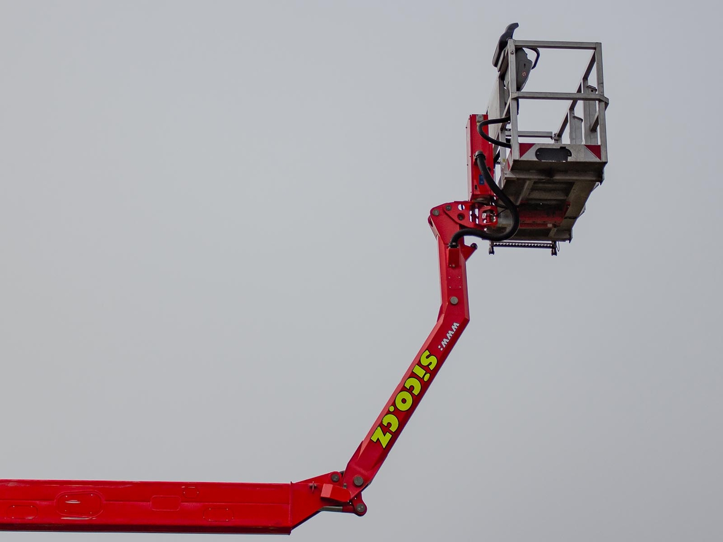 The Palfinger superstructure consists of a swivel on the chassis, a boom with an articulated telescope and a work platform on the so-called JIB arm, which allows the work platform to reach even hard-to-reach places. The maximum reach of the platform is 37 meters in height. The machine is equipped with an electric current generator and a large work platform with a load capacity of up to 500 kg is equipped with sockets with a voltage of 230V and 24V. The vehicle is equipped with off-road tires and thanks to the 4×4 drive, it can reach even more difficult-to-access places. The specialty of the machine is the equipment for cutting the green - ie the safety partition separating the operator from the worker performing the cutting and the holder of the chainsaw. The machine can be equipped with plate material holders. The truck platform meets strict safety regulations and international standards. The stability of the platform is ensured by the subframe of the vehicle with four retractable supports that absorb the load of the platform. This version of the P370 is on a chassis with a wheelbase of 4,5 meters and is equipped with a sleeping cabin.