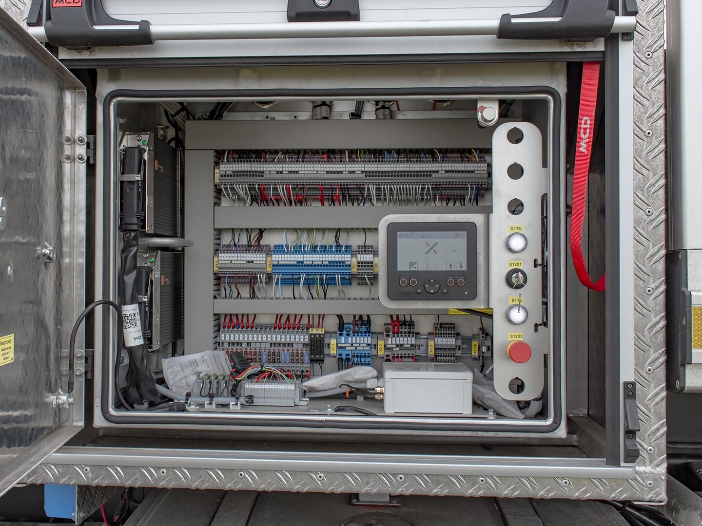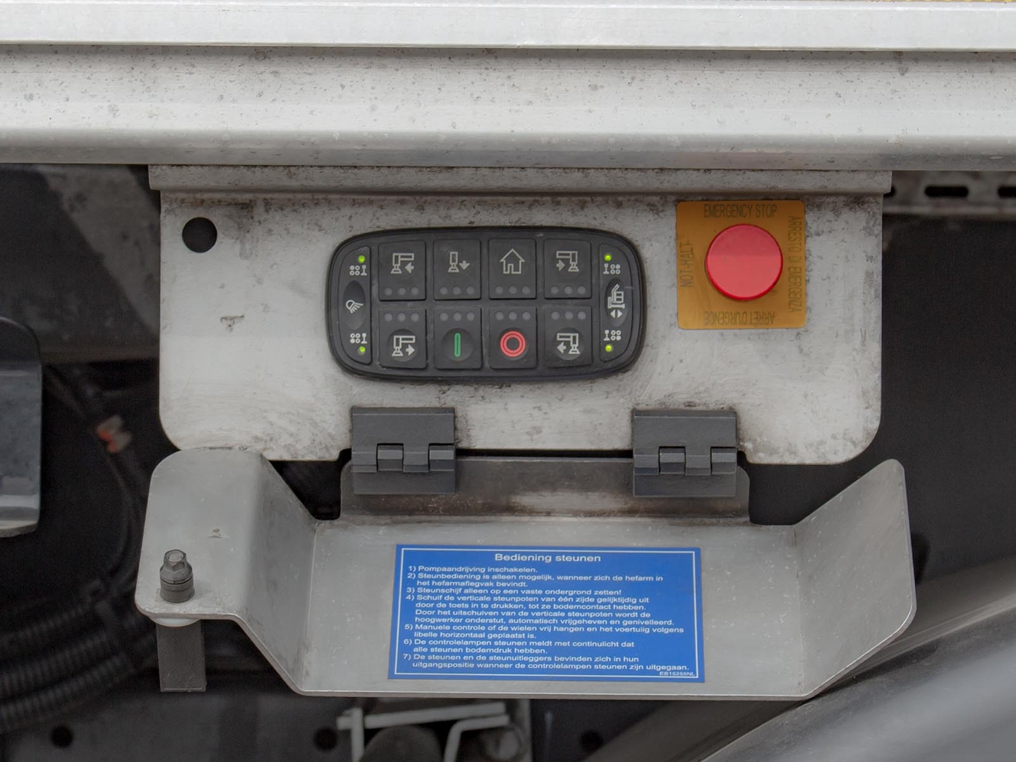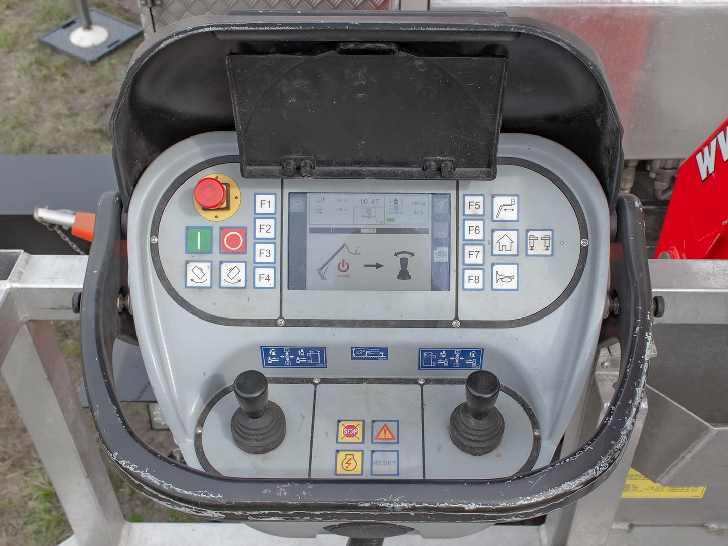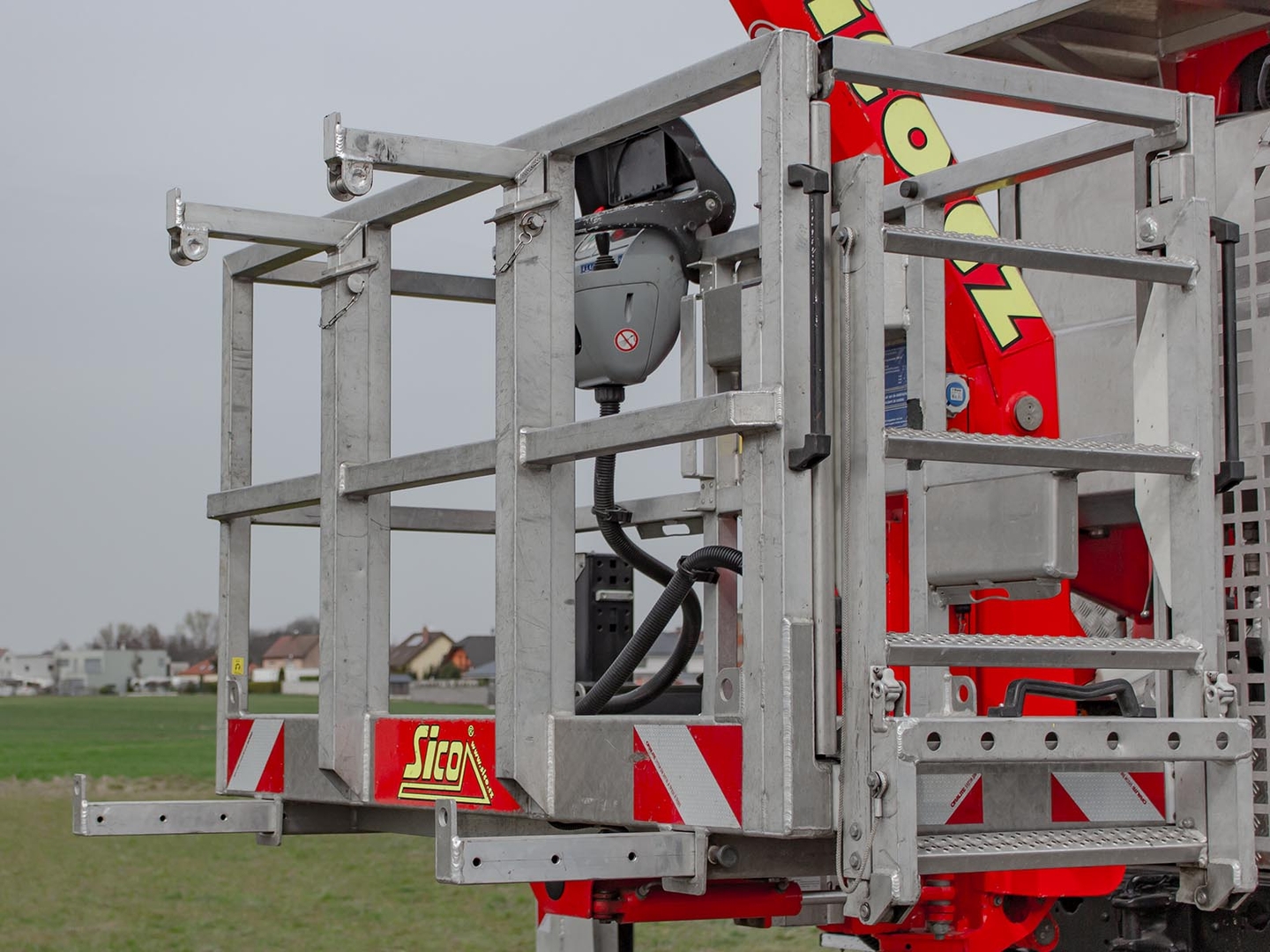 The Palfinger superstructure consists of a swivel on the chassis, a boom with an articulated telescope and a work platform on the so-called JIB arm, which allows the work platform to reach even hard-to-reach places. The maximum reach of the platform is 37 meters in height. The machine is equipped with an electric current generator and a large work platform with a load capacity of up to 500 kg is equipped with sockets with a voltage of 230V and 24V. The vehicle is equipped with off-road tires and thanks to the 4×4 drive, it can reach even more difficult-to-access places. The specialty of the machine is the equipment for cutting the green - ie the safety partition separating the operator from the worker performing the cutting and the holder of the chainsaw. The machine can be equipped with plate material holders. The truck platform meets strict safety regulations and international standards. The stability of the platform is ensured by the subframe of the vehicle with four retractable supports that absorb the load of the platform. This version of the P370 is on a chassis with a wheelbase of 4,5 meters and is equipped with a sleeping cabin.