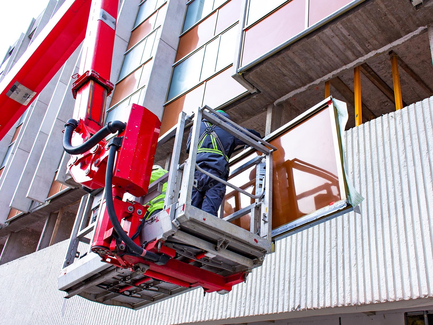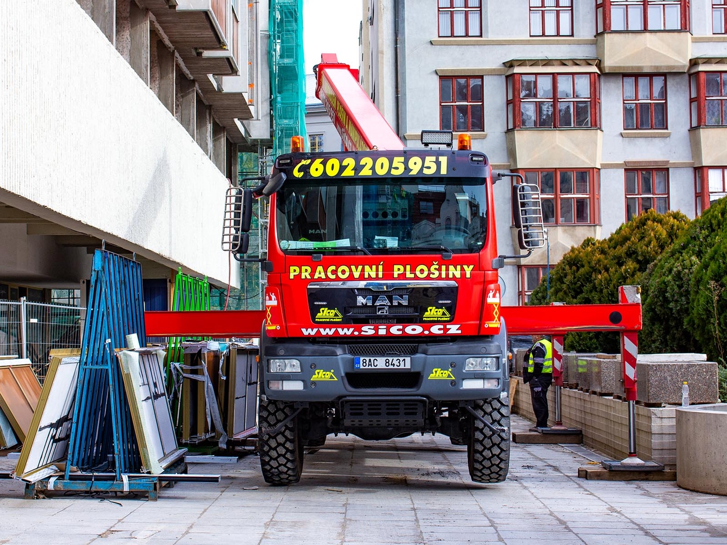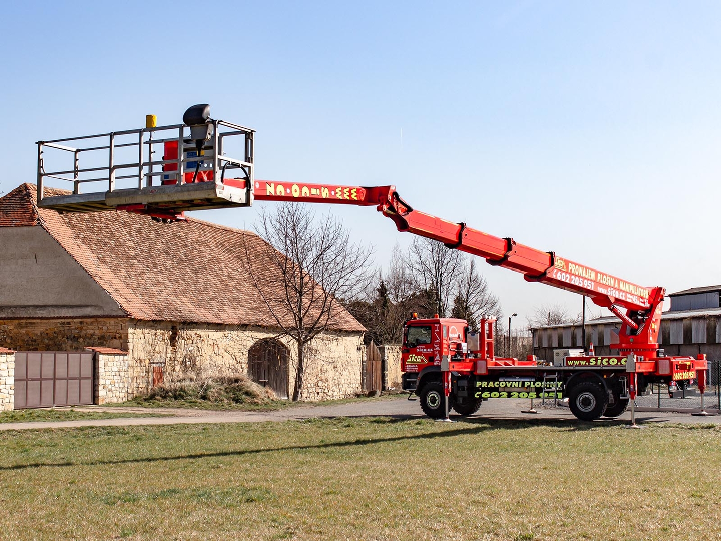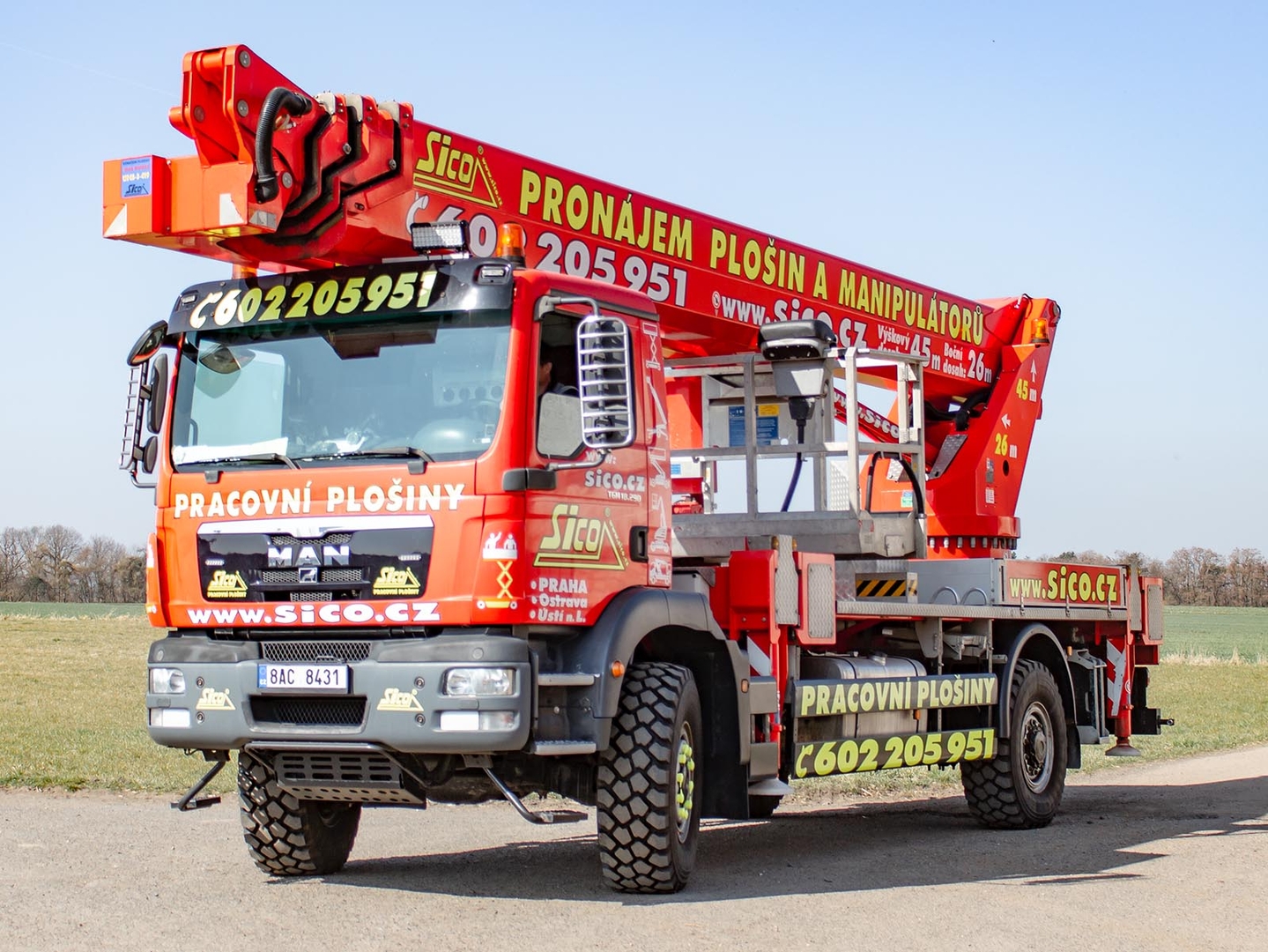 The construction of two telescopic arms - the first 4 section and the second 2 section, will allow a lateral reach of more than 20 meters at a height of up to 35 meters (with a platform load of 100 kg out of a total of 600 kg). The 4×4 drive and robust chassis with good approach angles allow the machine to move in the field and 4 supports ensure the necessary stability when working. The Wumag superstructure is designed to allow a range of 6 meters below the level of the chassis. The WT450 can therefore be used to inspect smaller bridge structures. When using the lateral reach to only one side, it is possible to place the platform on 2 extended and 2 retracted supports and thus reduce the space required for the set machine by approximately 2 meters. The work platform can be equipped with board material holders with a load capacity of 350 kg. The truck platform meets strict safety regulations and international standards.
