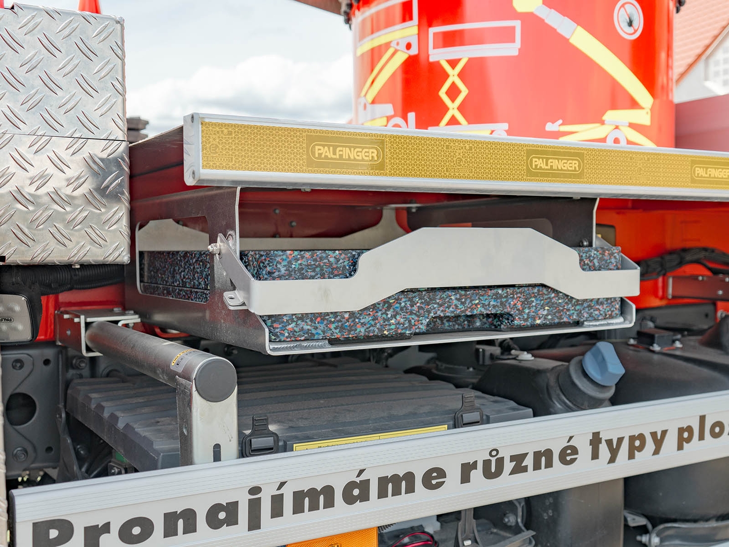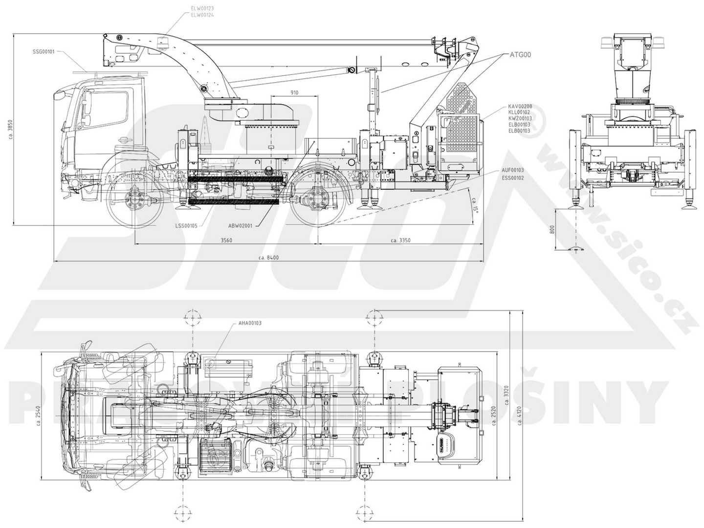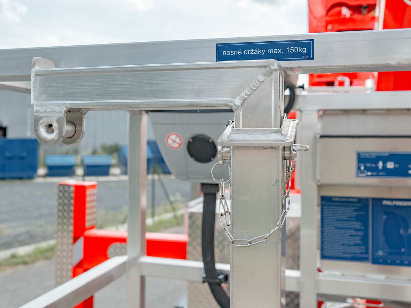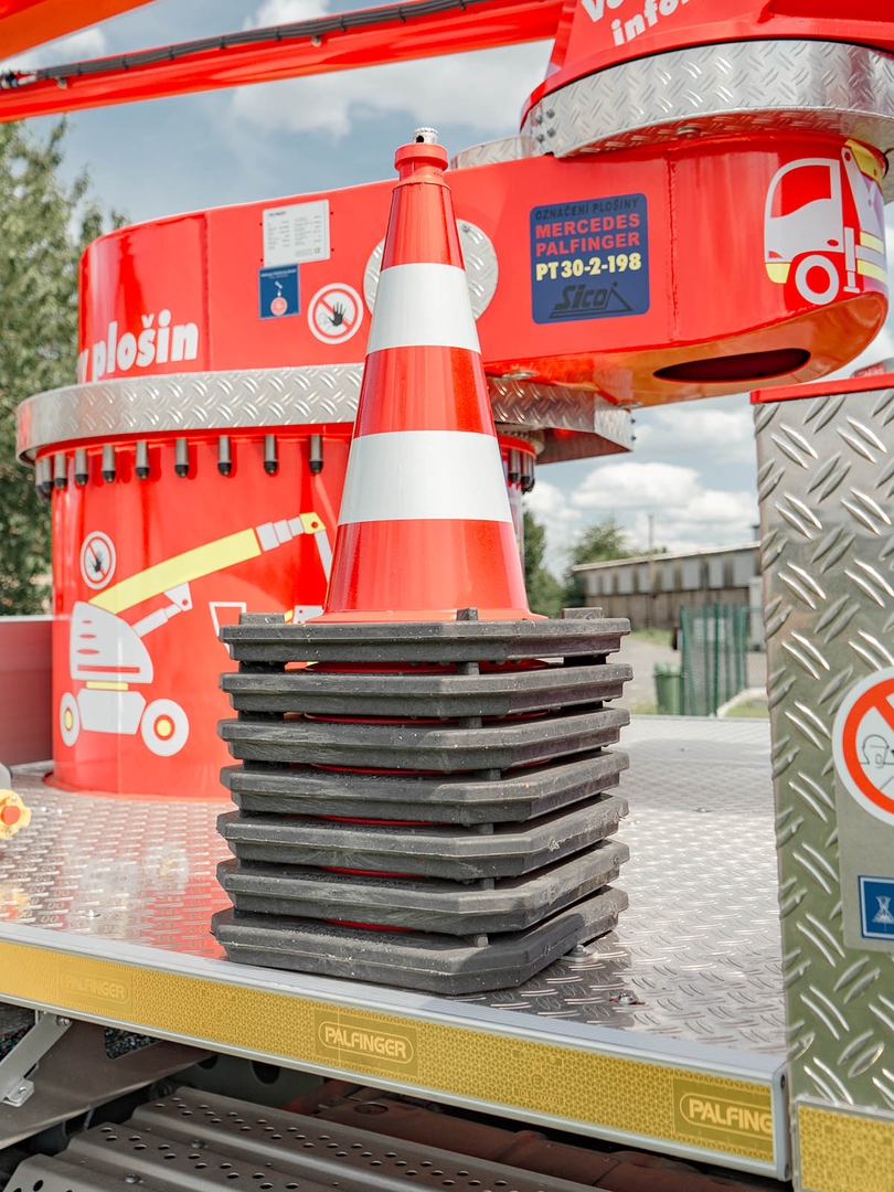 Palfinger P300KS je disponuje perfektními dosahy. Nástavba je montovaná na kompaktním podvozku M-B Atego 4x4. Do výšky 8 m je možný bez použití stabilizátorů - nabízí se využití při opravě veřejného osvětlení. Při použití ve svažitém terénu dovolí stabilizátory s výškou zdvihu 800 milimetrů vyrovnat sklon až 5°. Při využití opěr je k dispozici maximální pracovní výška až 30 metrů a stranový dosah až 20,5 metru (při 100 kilogramech v pracovním koši). JIB rameno je vertikálně pohyblivé v rozsahu 195° a výložník je schopný 540° rotace okolo své osy.