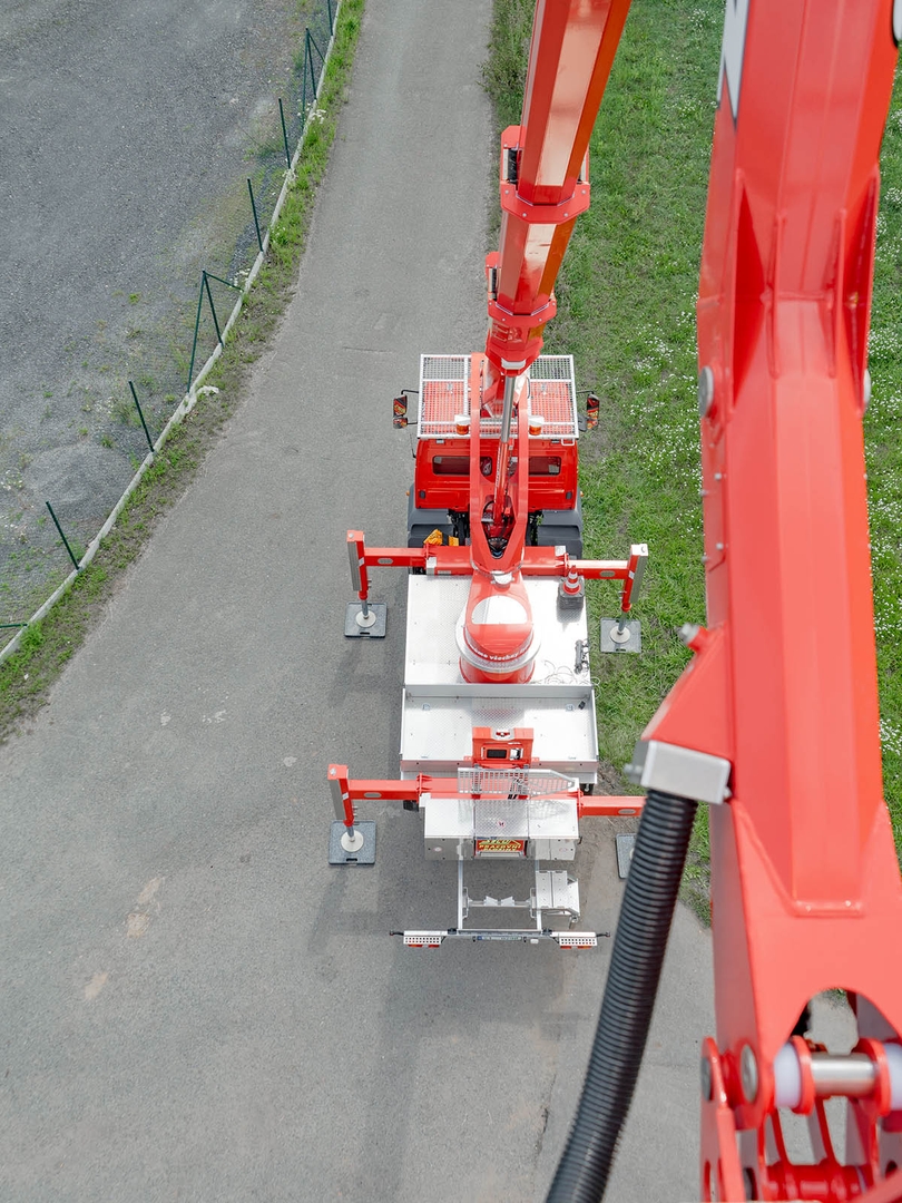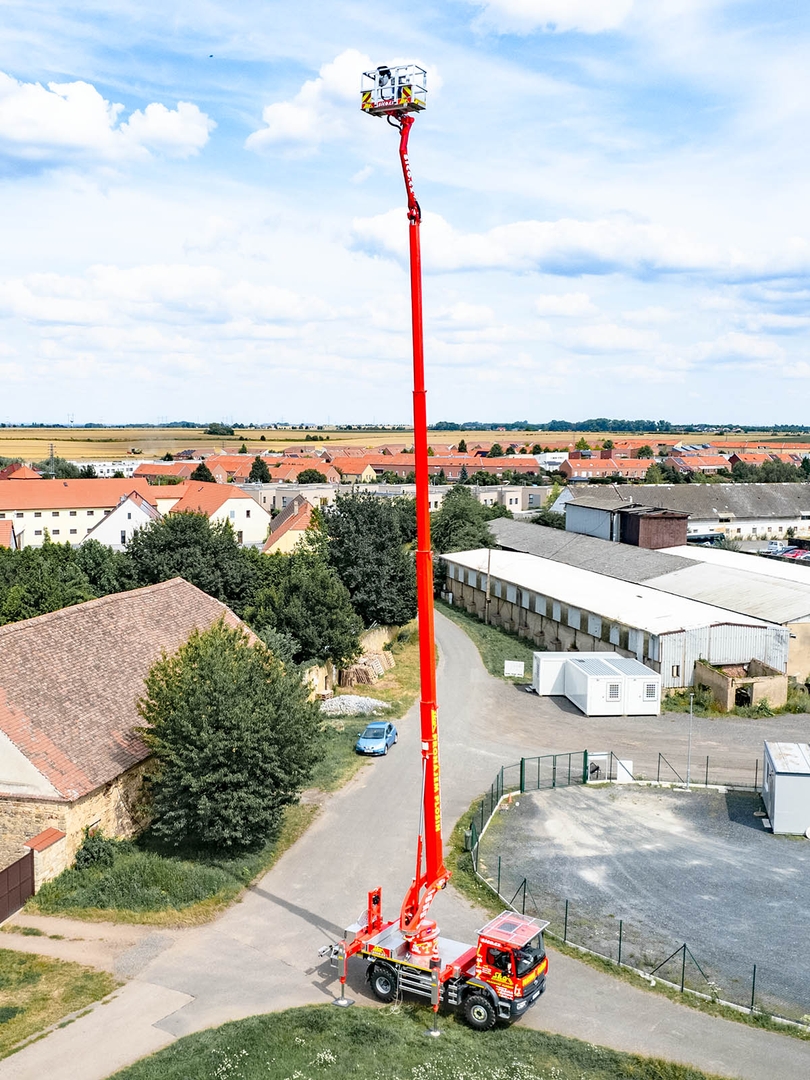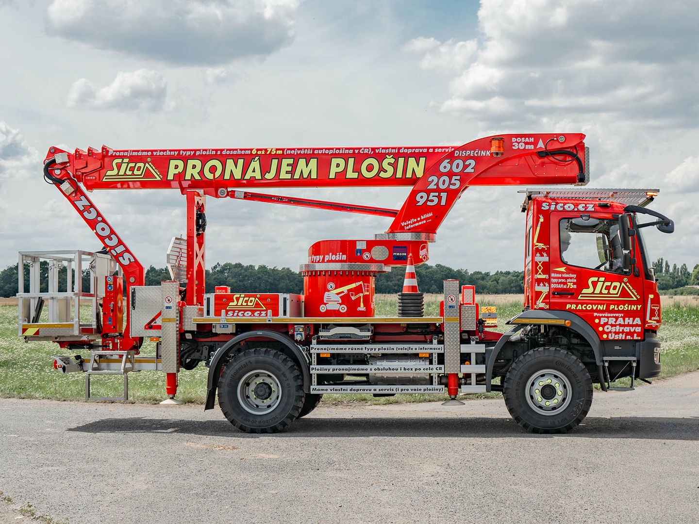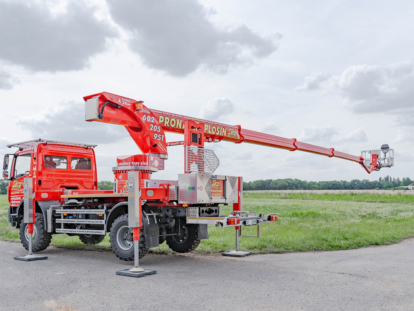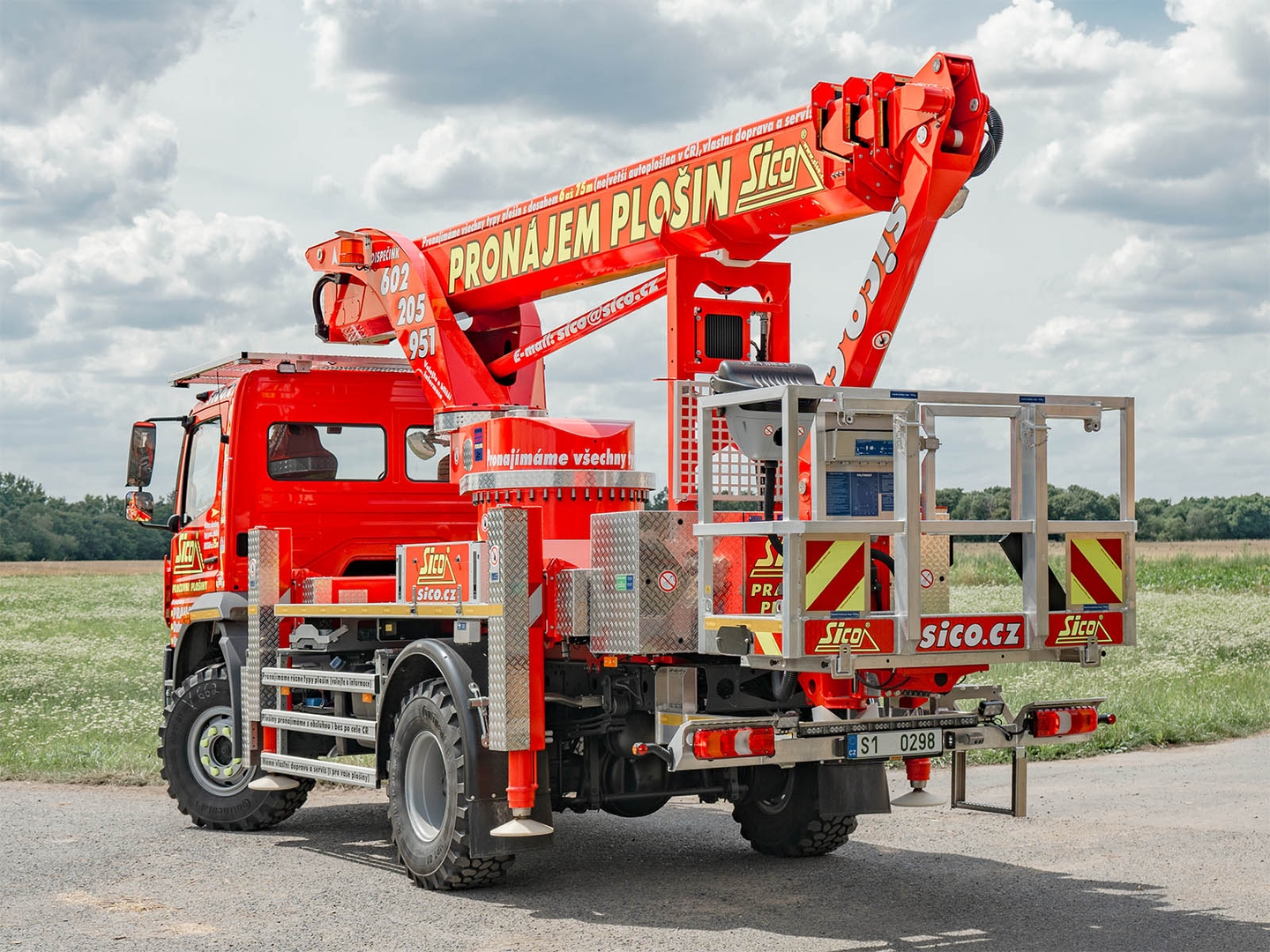 Kompaktní rozměry, perfektní manévrovatelnost a k tomu vysoká průchodnost terénem. Max. pracovní výška 30 m a stranový dosah až 20,5 m.