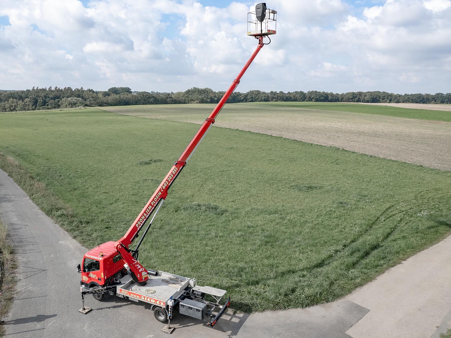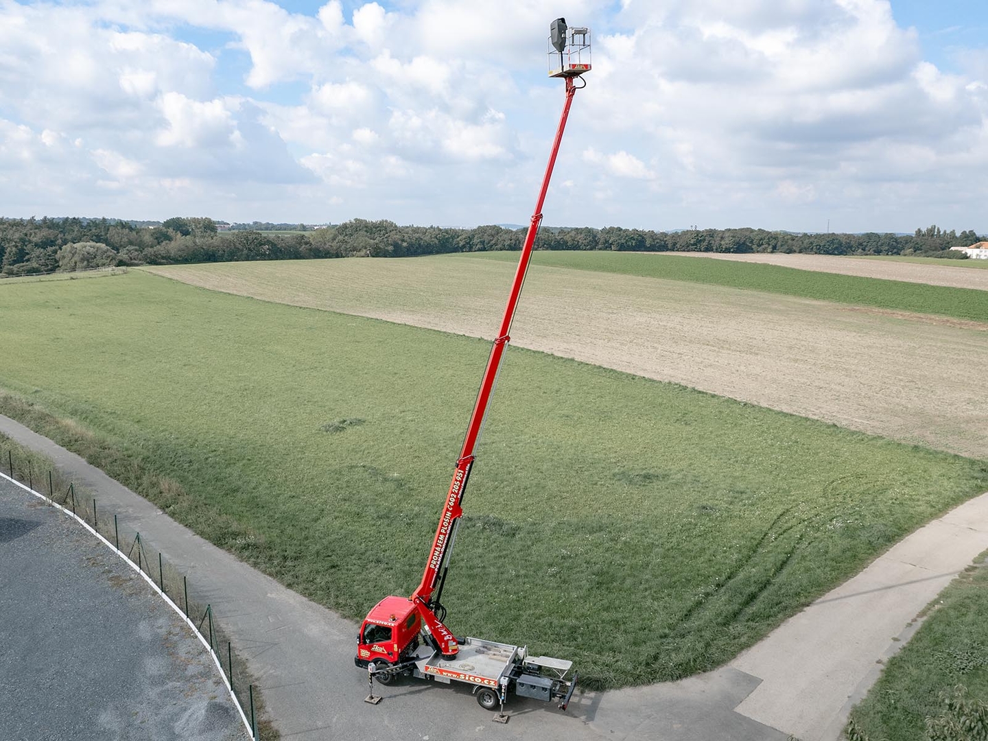 The maximum working height is 22,5 meters and the lateral reach is 13,5 meters. Fully proportional control ensures that you get to the required job position accurately and smoothly. The B230T is a machine suitable for high-altitude work that requires frequent relocation of the platform, which in this case takes a minimum of time. When using the lateral reach to only one side, the platform can be seated on 2 extended and 2 retracted supports, thus reducing the space required for the established machine. The platform meets strict safety regulations and international standards.