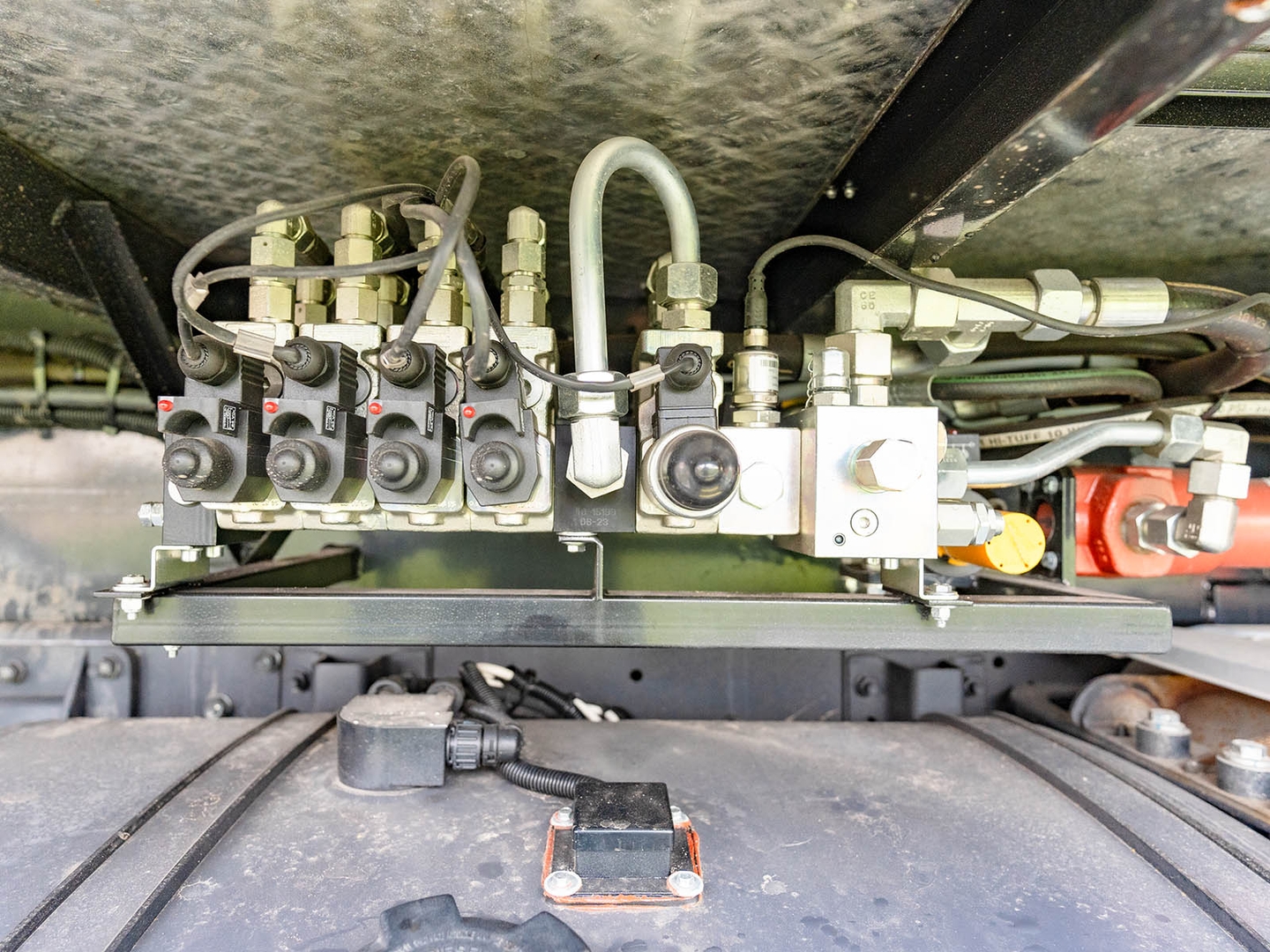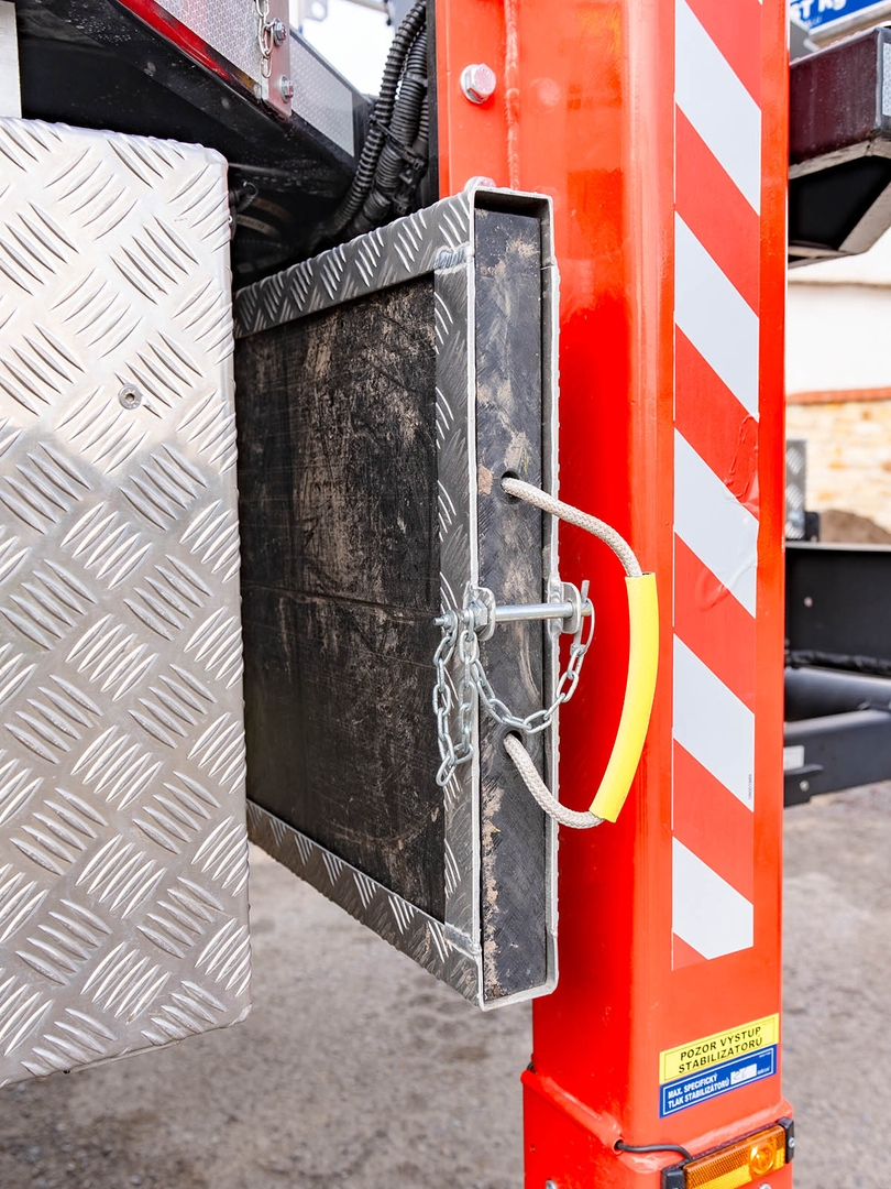 Another advantage is that the supports (4x) follow the shape of the chassis. The positioning of the machine places low demands on space. Thanks to the high support lift, setting up the machine on sloping terrain is no problem either.