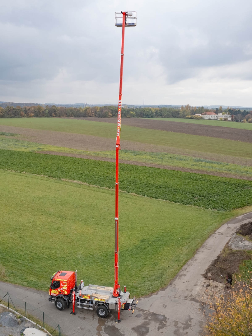 Two-wheel drive, all-terrain tyres and a powerful engine ensure that you can get where you need to go even on difficult terrain. Automatic set-up speeds up preparation before the job. The proven DT (double telescopic) design allows the following: