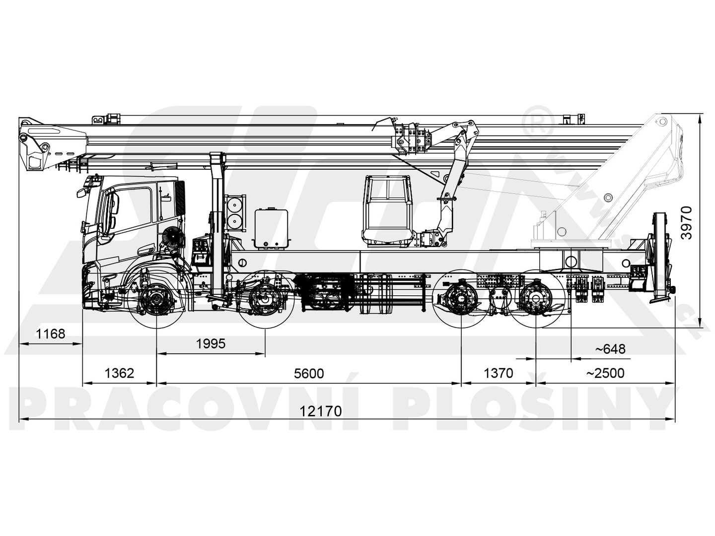 - 39.5 m lateral reach (100 kg in basket), 28 m lateral reach (600 kg in basket)