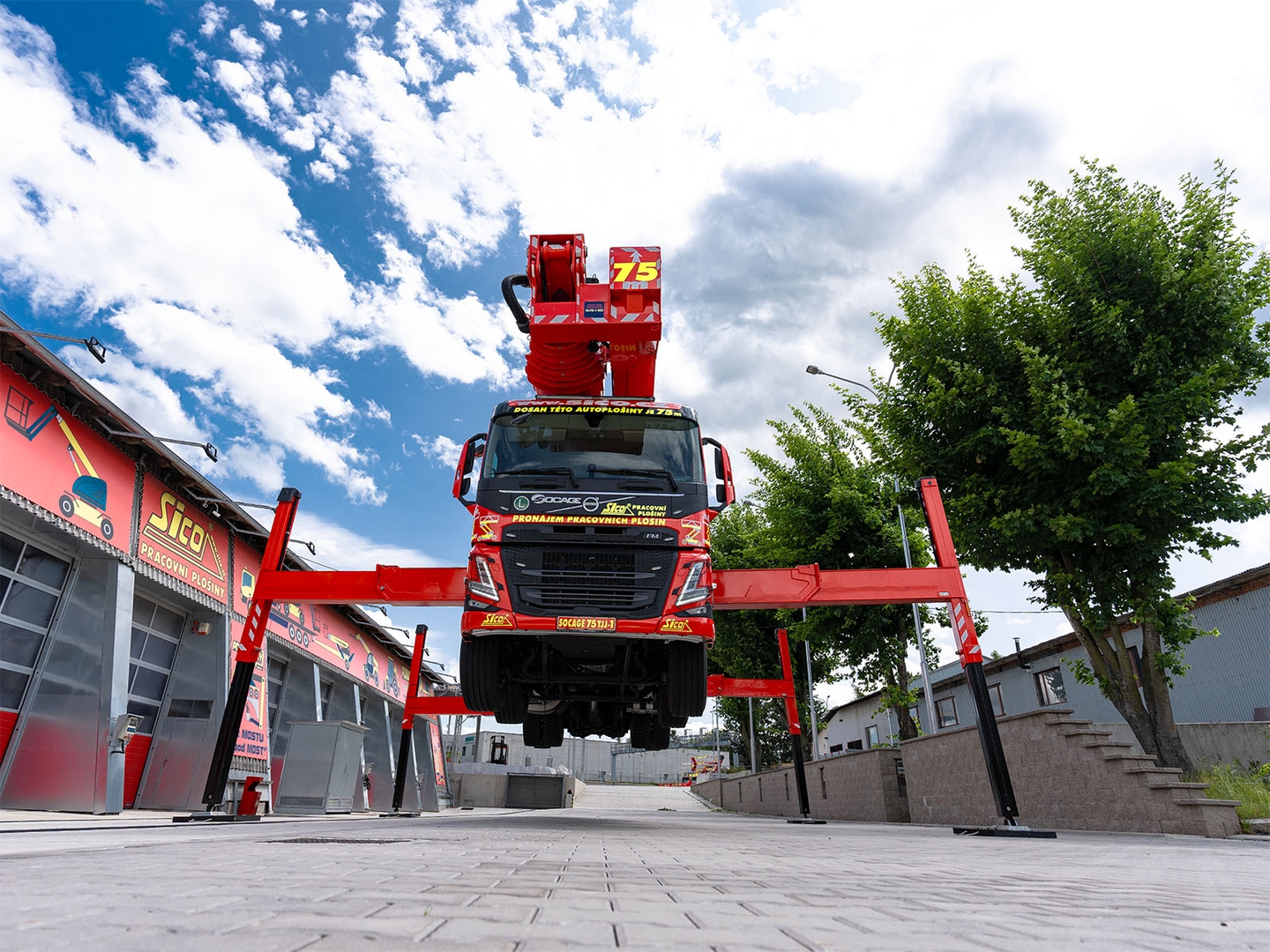 The 600 kg working basket capacity, extreme reach and multi-zone stabilization system make the Socage 75TJJ suitable for a wide range of applications from power grid maintenance work to building maintenance, film applications and bridge structure rehabilitation.