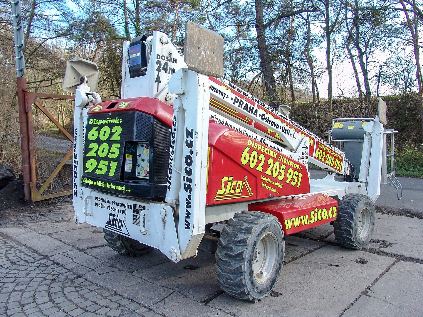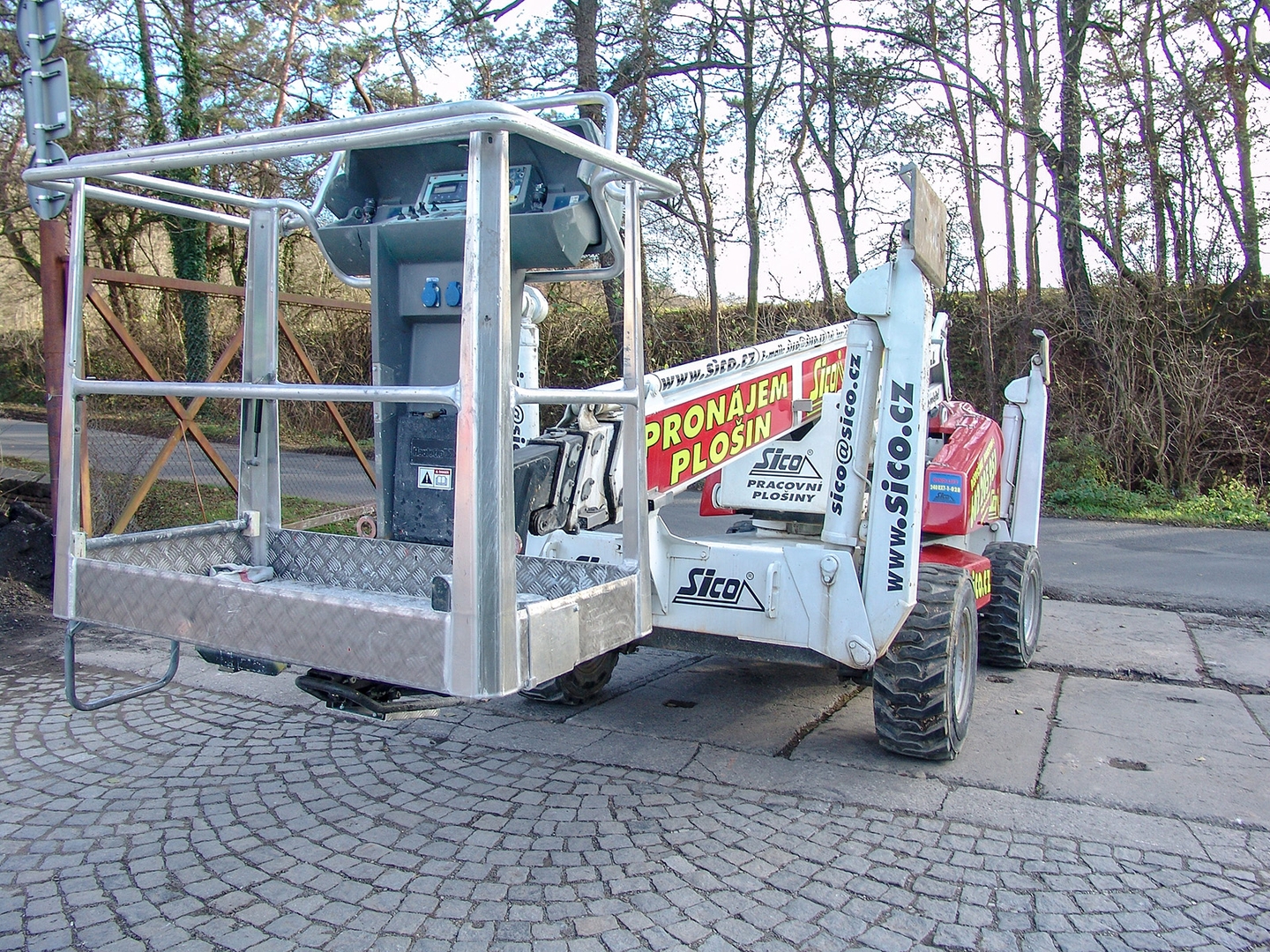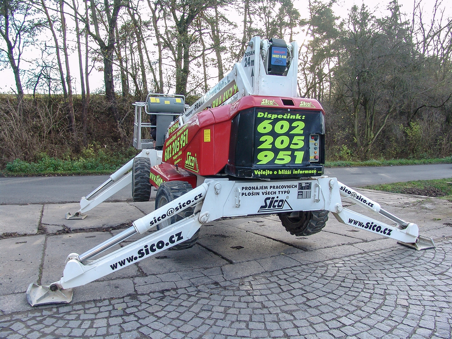 With the specific design solution, the manufacturer achieved low weight (absence of counterweights) and maintaining perfect values of height and side reach, which is 24 meters. With a weight of 4400 kilograms, the machine will not damage the terrain on which it is set up. The platform is thus suitable for use in gardens. The supports can compensate for inclinations of up to 10° and the powerful motor ensures a gradient of up to 35%. For better off-road handling, the machine is equipped with a pivoting front axle, all-wheel drive and pivoting both axles. 240 RXT meets all strict safety standards and regulations.