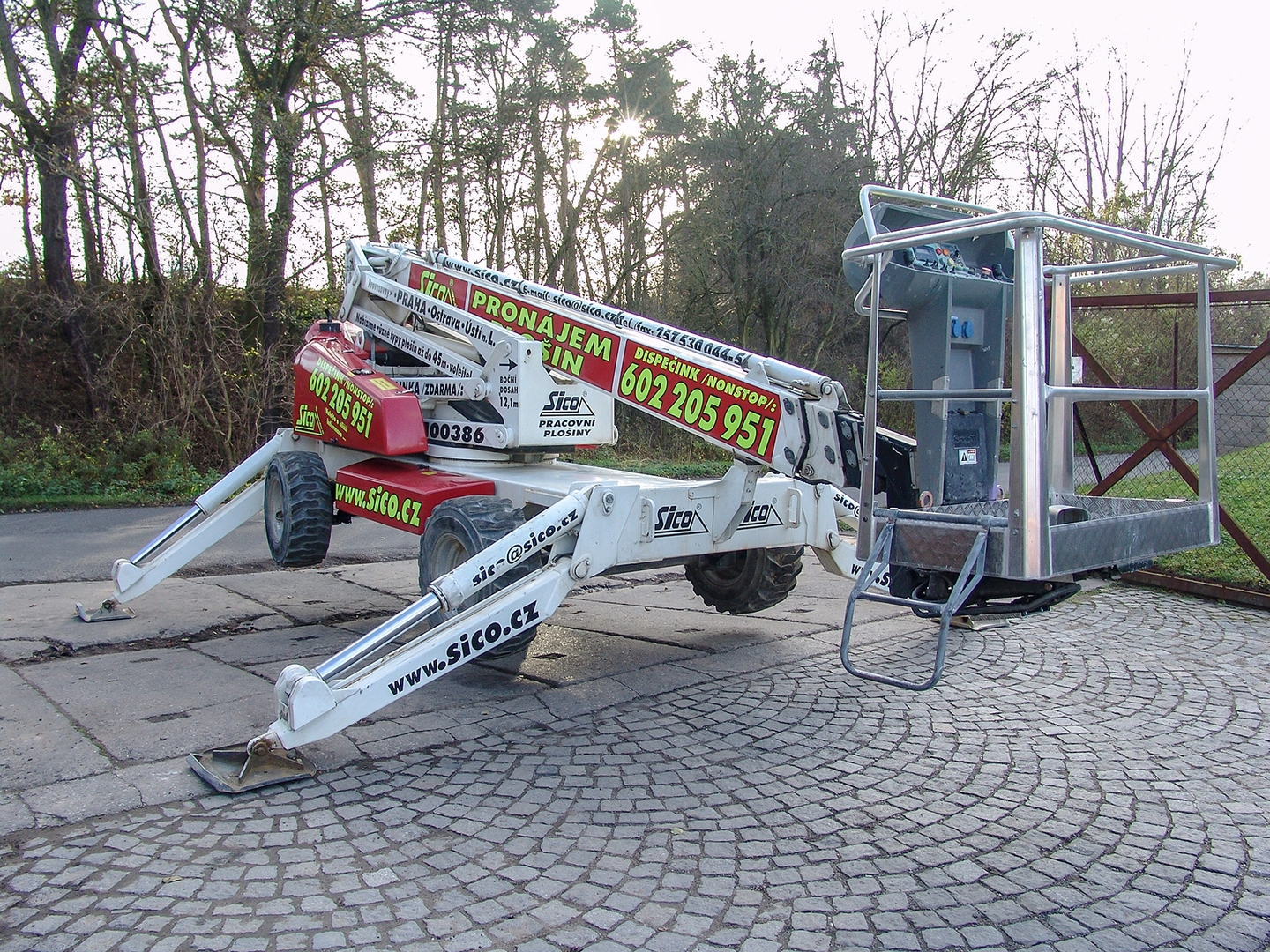 Unique Dinolift machine for work in difficult and sloping terrain. Special for pruning greenery. Articulated telescopic construction and 4 hydraulic supports!