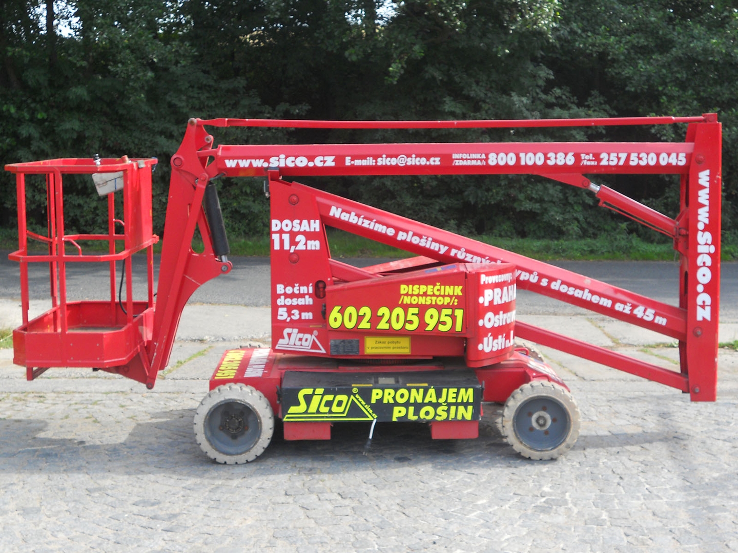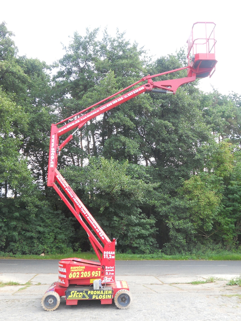Weighing only 2540 kilograms, it allows you to work at a height of up to 11,2 meters. The outer turning radius is 2,83 meters and a length of just over 4 meters ensures perfect maneuverability. You can use the Dino 112 for high-altitude work both indoors and outdoors. Thanks to the articulated-telescopic construction with the JIB arm, you can reach even hard-to-reach places. The arm is vertically movable in the interval of 140° and lifts rotatable on both sides by 200°. The highly efficient system of batteries and electric motors is designed to minimize charging time and last as long as possible in active operation! The favorable price is another of the many advantages of the Dino 112 work platform. The platform meets all international safety regulations and standards.