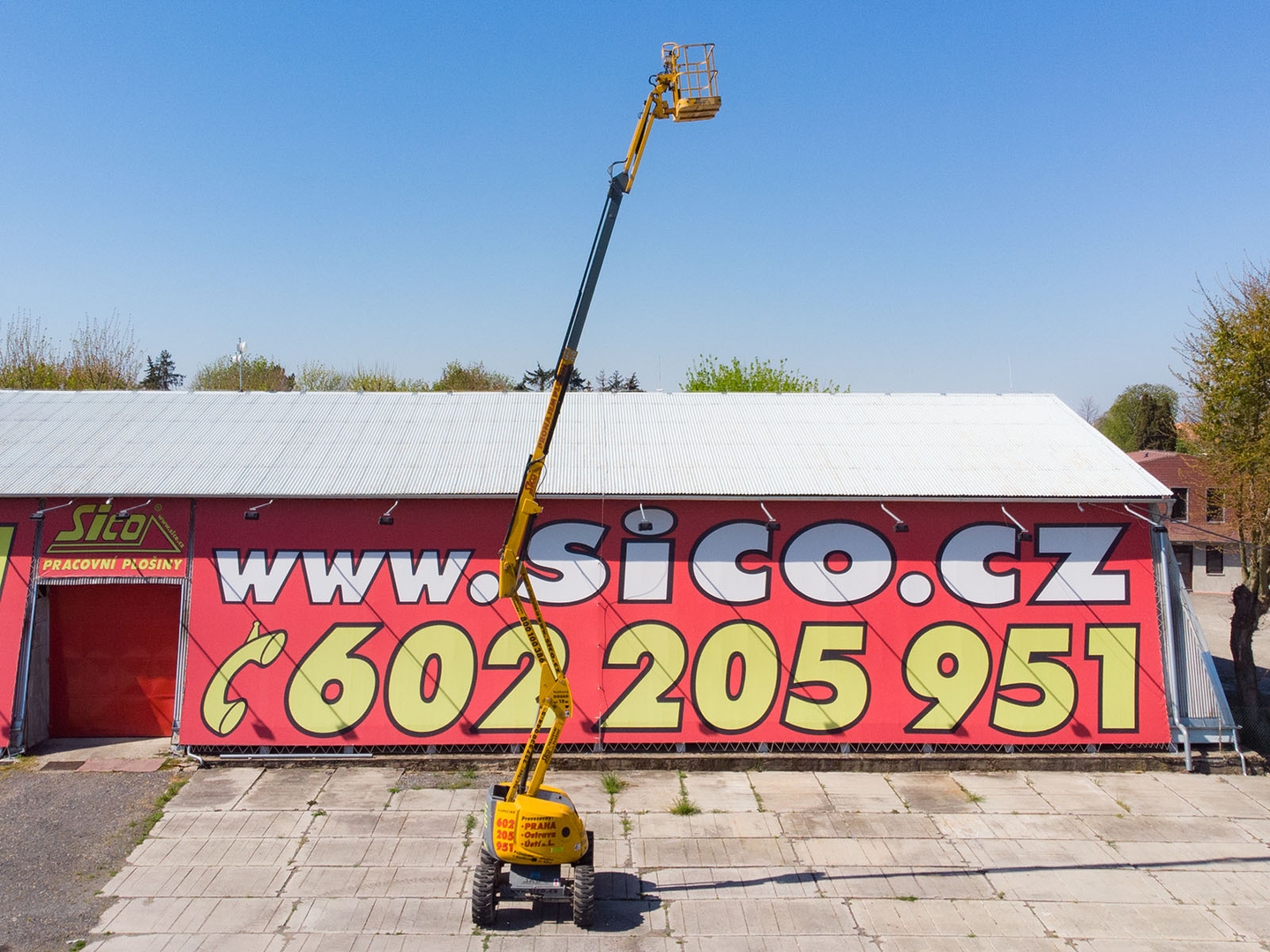 The machine of articulated-telescopic construction with driven both axles, with off-road wheels and with a gradient of 50% allows use in difficult terrain conditions. The work platform of the French manufacturer Haulotte makes even hard-to-reach places accessible. The rotating body, on which the three arms and the work platform are located, can be rotated 360°. The platform can be rotated up to 180°. The maximum working range is 17,3 meters in height and 10,6 meters to the side. The machine can move with the arms fully extended and meets all strict safety regulations and international standards.