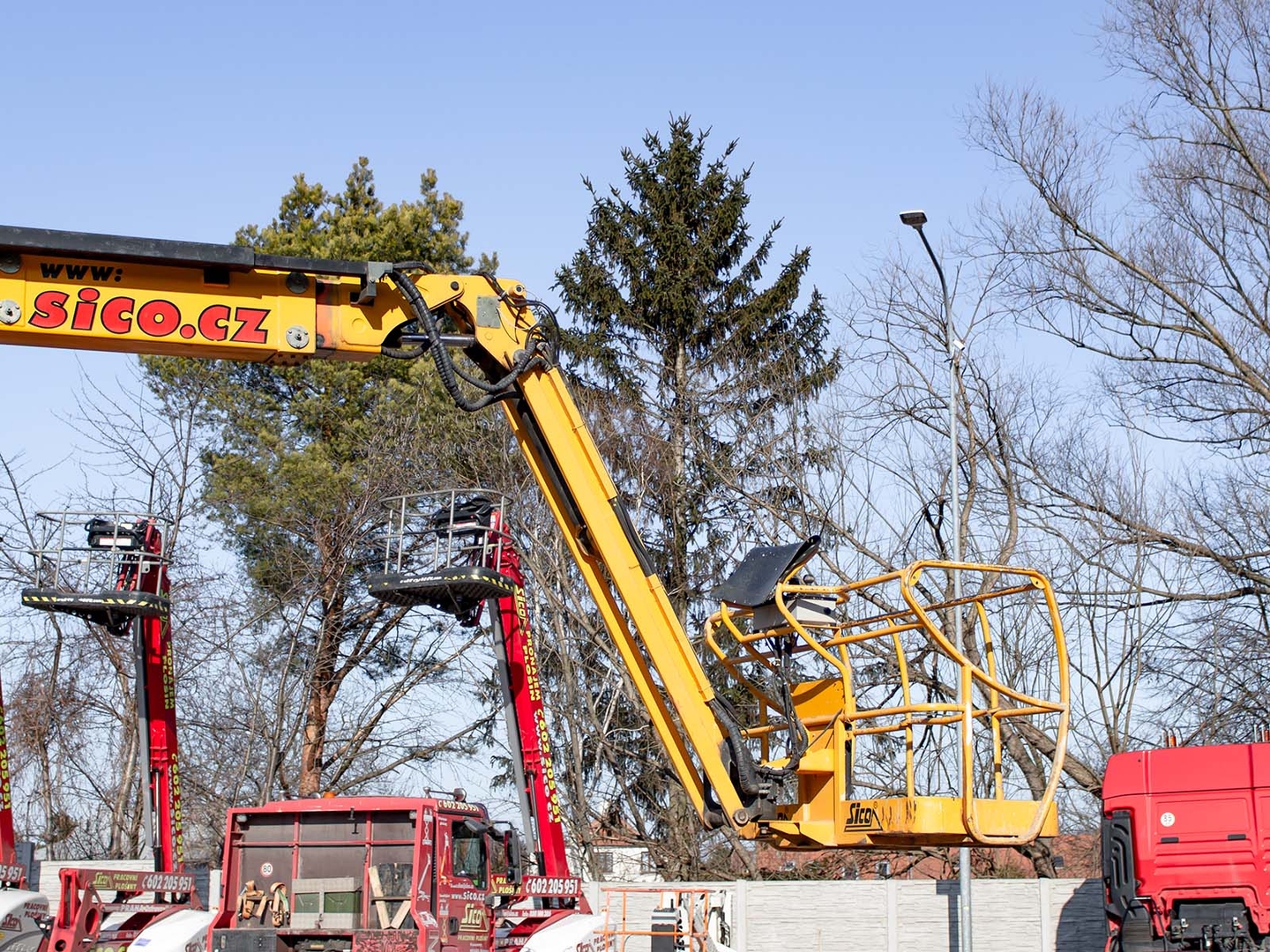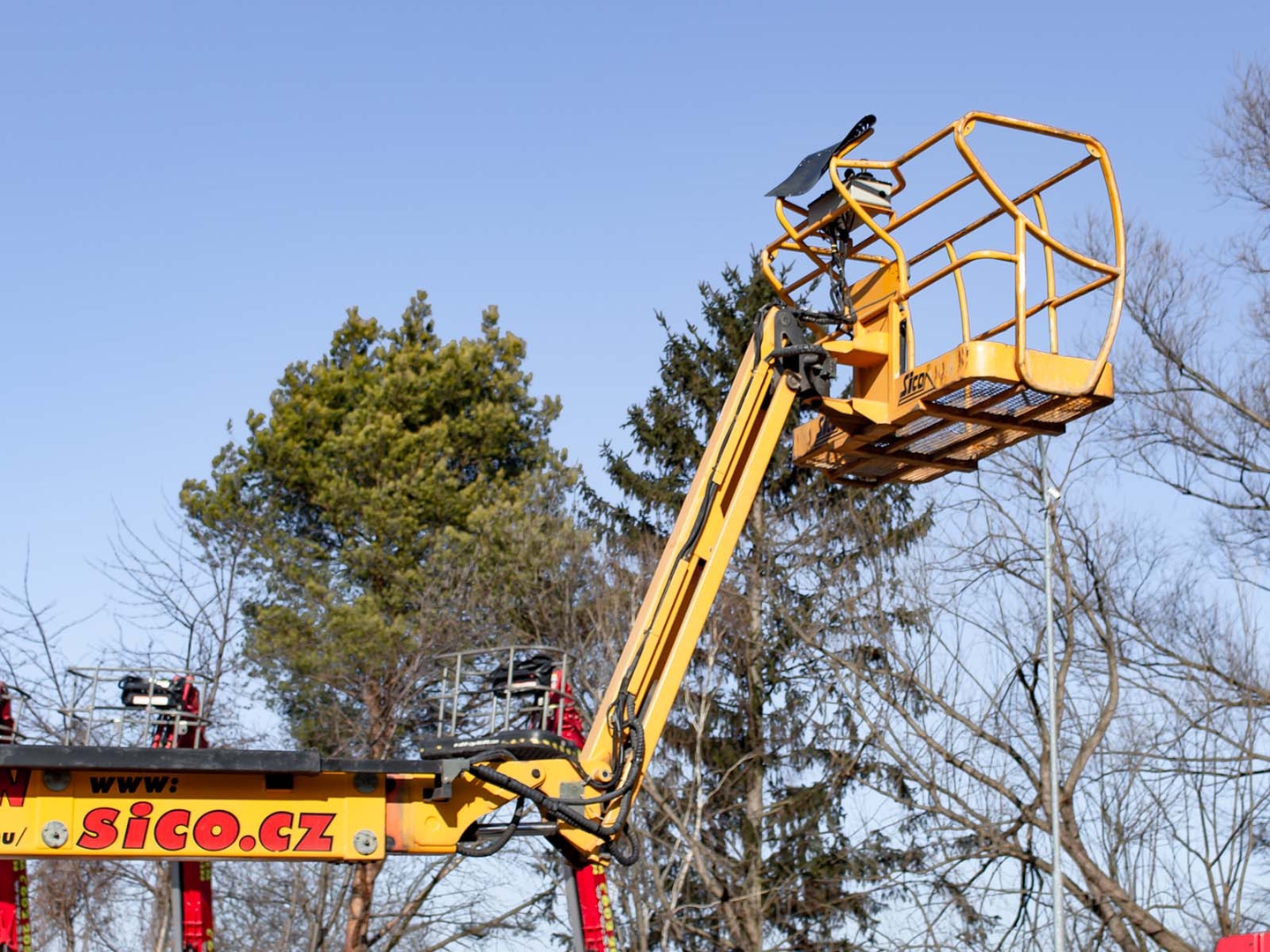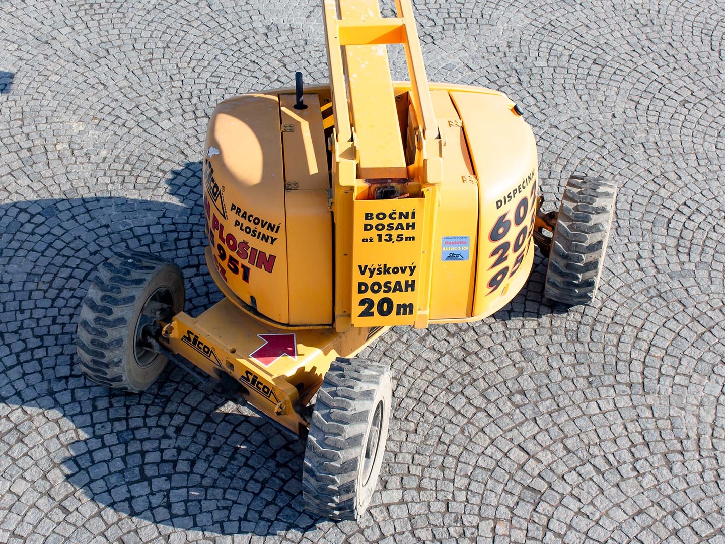 Together with a minimum outer turning radius of just 3,9 meters, it ensures maximum work efficiency. It has a fully proportional control and a rotating platform on a vertically movable JIB arm. And the advantage is also the zero overlap of the weight over the chassis part. The work platform can comfortably hold two workers even with tools, the load capacity is 230 kilograms. The machine is equipped with a hydraulic differential lock for moving in really difficult terrain. The machine meets all strict safety standards and regulations.