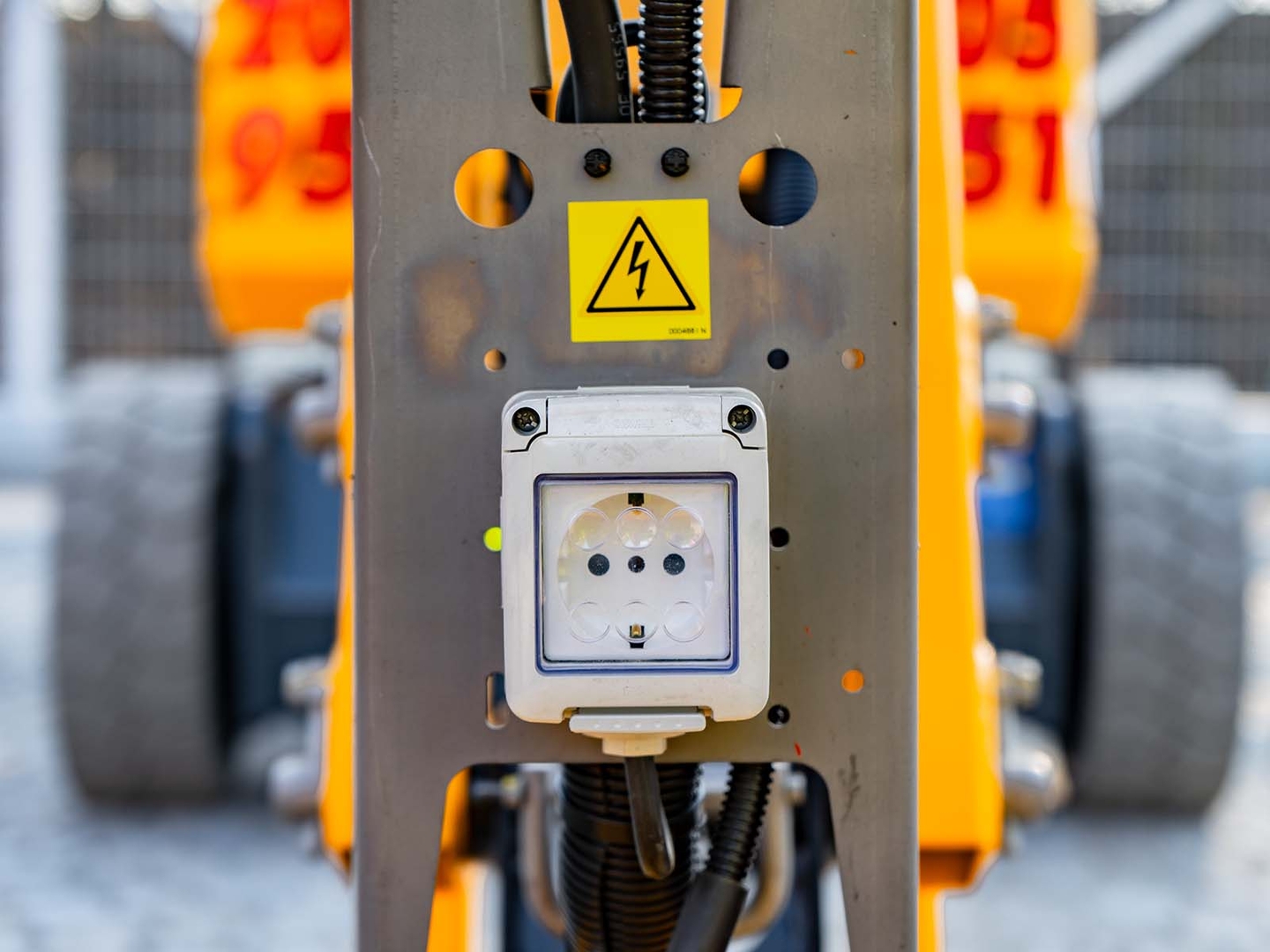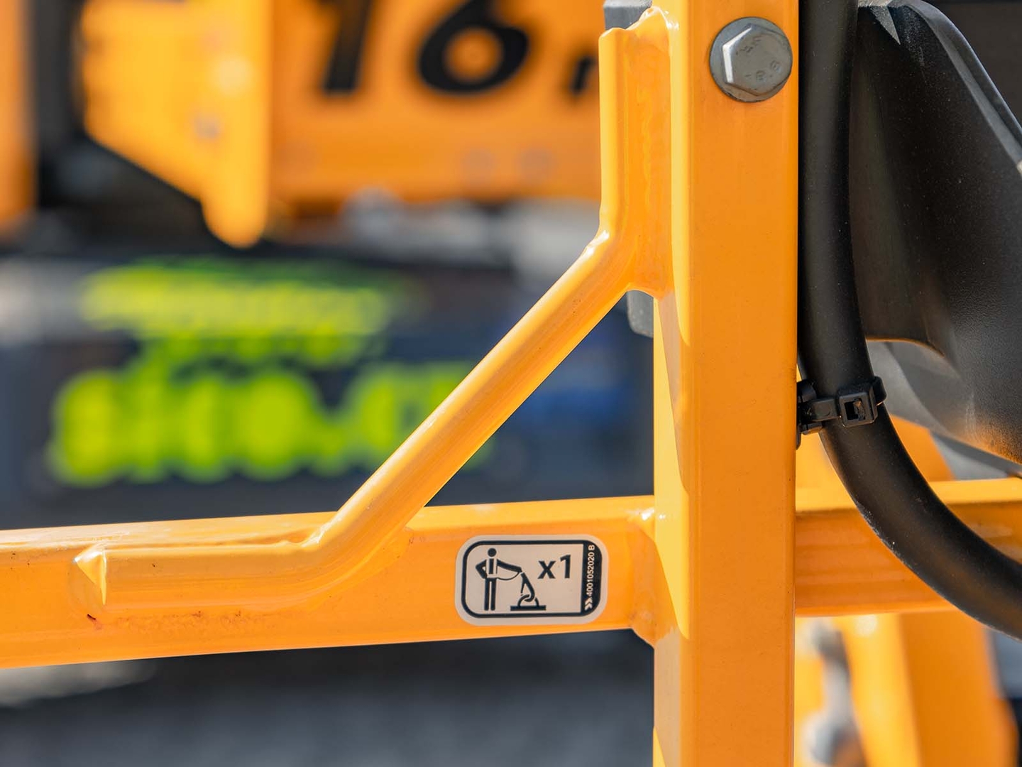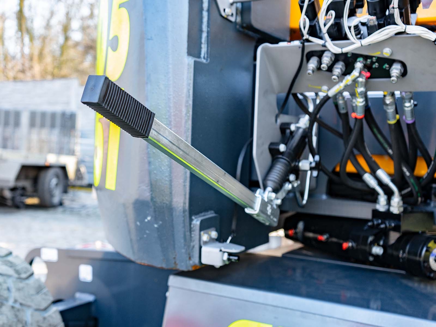 The machine is suitable for indoor and outdoor work. Compared to the standard equipment level, the PRO version is additionally equipped with a tool holder, a lighting system and the Activ' shield bar safety element and the already mentioned horizontally (-55°/+55°) and vertically (-65°/+65°) movable JIB arm.
