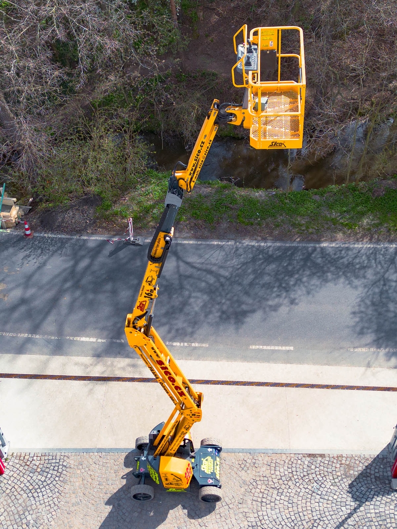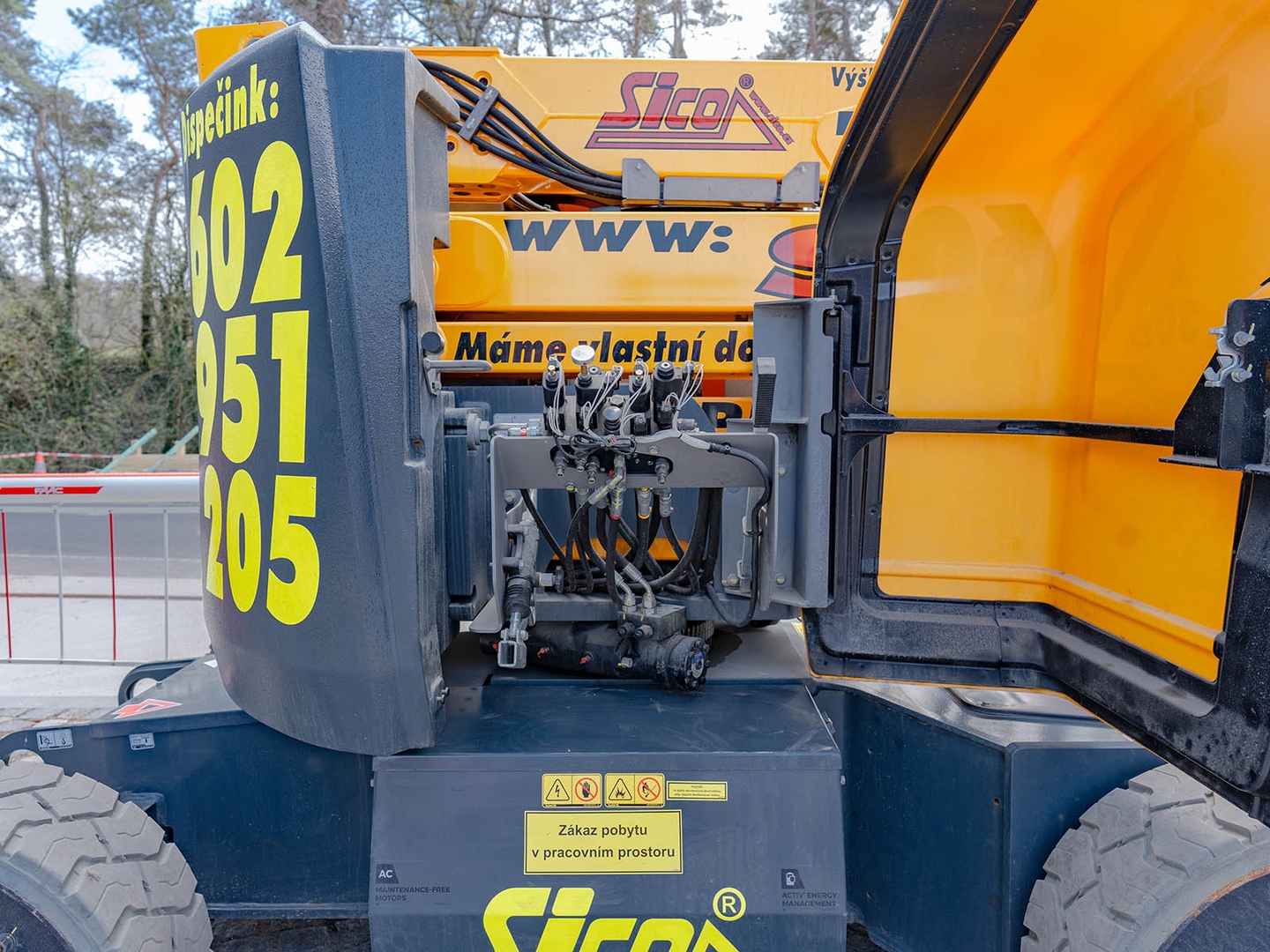 Compact dimensions, simple operation, zero overhang of weights when turning and a low value of the turning radius ensure perfect maneuverability in confined spaces. Access to hard-to-reach places is guaranteed not only thanks to the articulated-telescopic construction, but also by the JIB arm, which can also be moved in a horizontal plane.