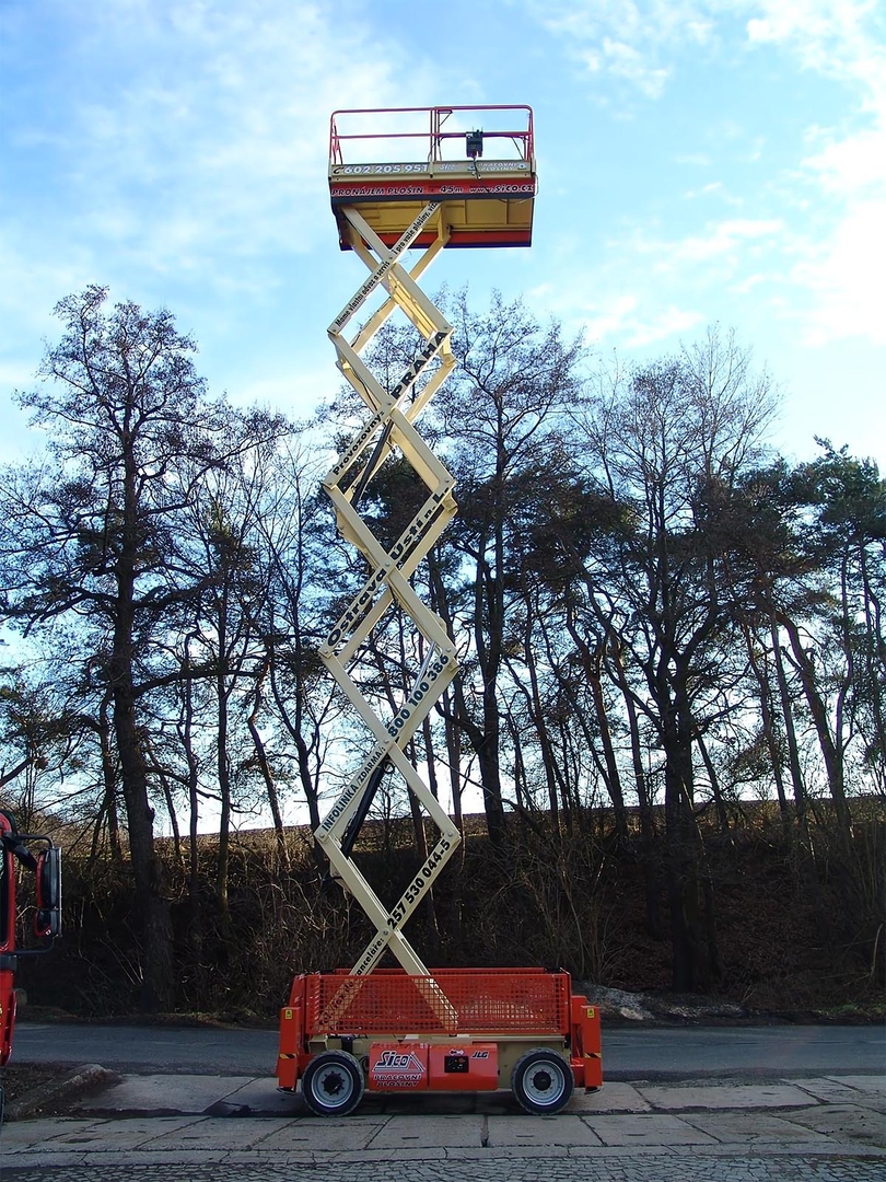 The American JLG 4069 LE lasts up to 10 hours on a charge, gets you up to more than 14 meters, carries 360 kilograms in the platform and is equipped with 4 supports for maximum stability.