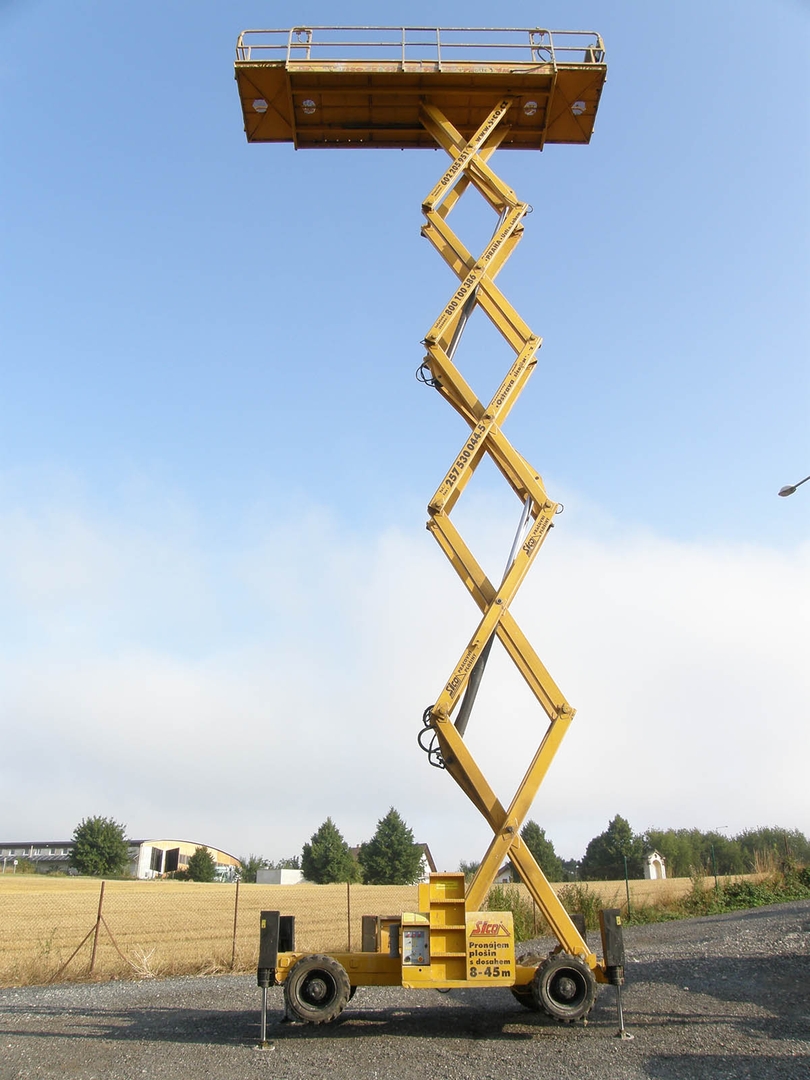 The highest diesel scissor lift Haulotte in SICO. He has a huge platform and can carry 500 kilograms in it. And it will definitely not be intimidated by difficult terrain!
