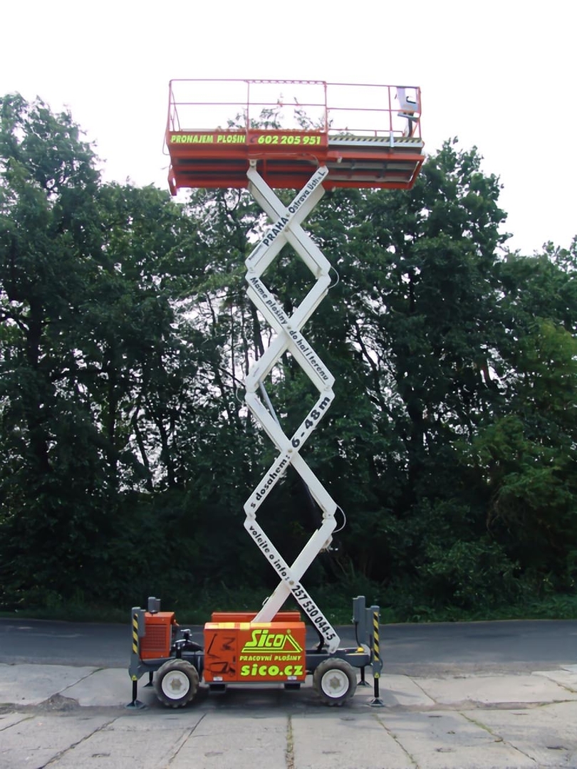 The entry model of the range of diesel scissors platform. Robust construction and working height 10,1 meters. A universal helper who is not afraid of the terrain. For a very reasonable price.