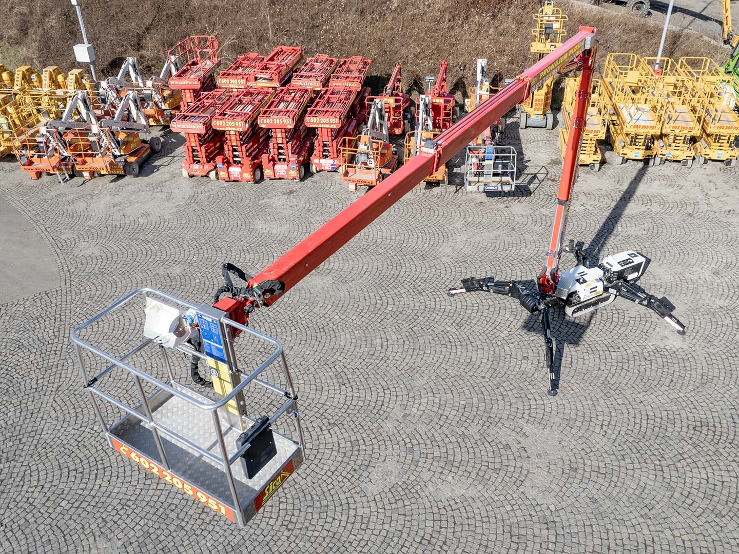 The DT25 SPYDER platform was specially created for indoor and outdoor work in large halls - airports, shopping malls, factories and other spacious buildings. Thanks to the compact design of the work platform, it is possible to easily adjust the passage width of only 80 cm, and the removable platform can also be used for work in hard-to-reach places.