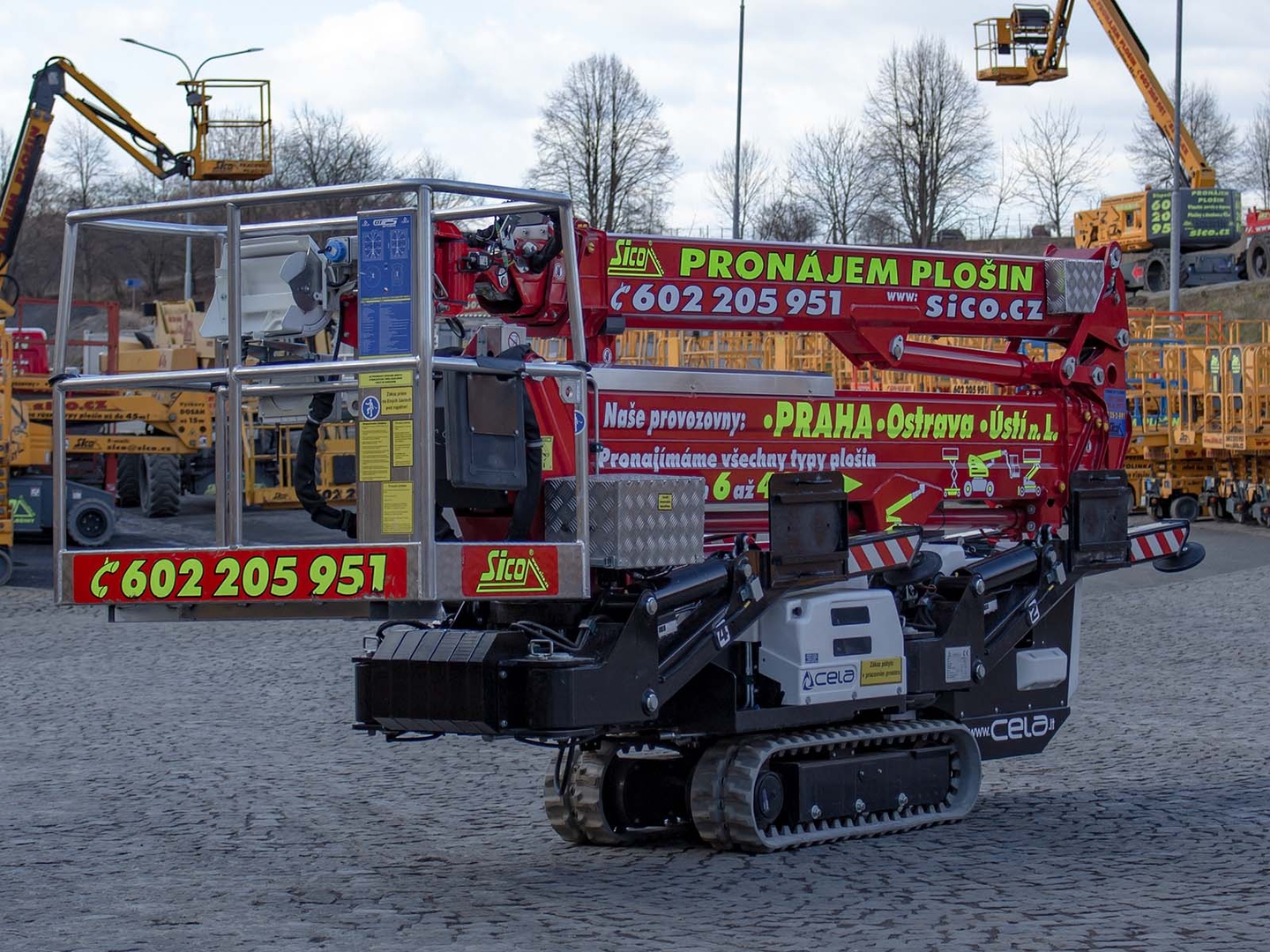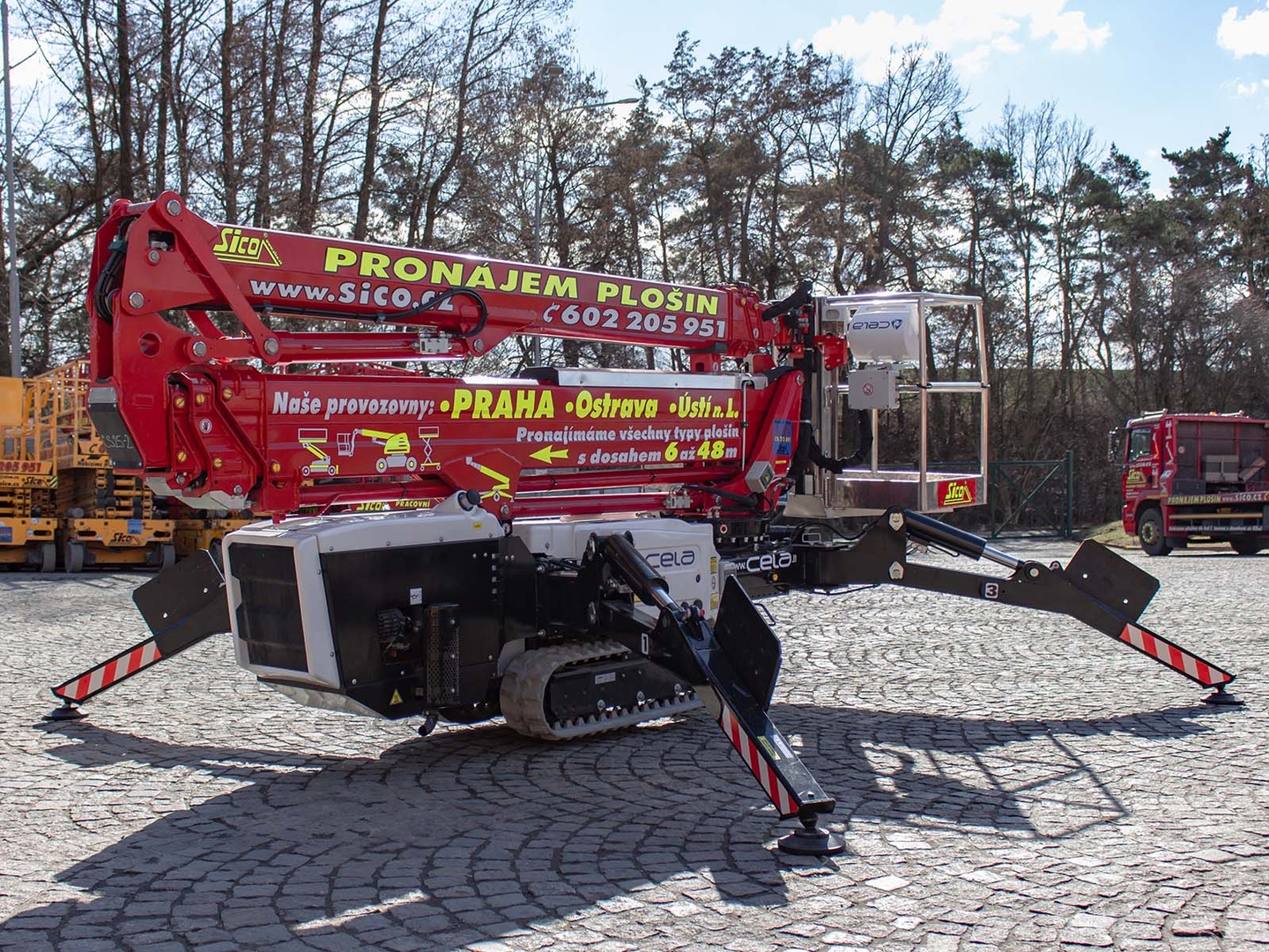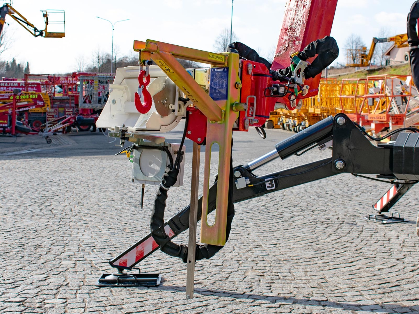 The DT25 SPYDER work platform has a crawler travel and can also be controlled remotely. Its working height of the platform is 25 meters. At a load of 120 kilograms, the lateral reach is 11,5 meters, at full load it is limited to 9 meters for safety reasons. The machine will also allow a negative range of 5 meters below ground level. The work platform can be easily replaced with a crane hook with a load capacity of 260 kilograms. The work platform meets strict safety regulations and international standards. The platform's protection system - hydraulic locks, pressure relief valves, double protection of electrical and hydraulic elements - ensures perfect safety of the worker in the platform and the personnel on the ground.