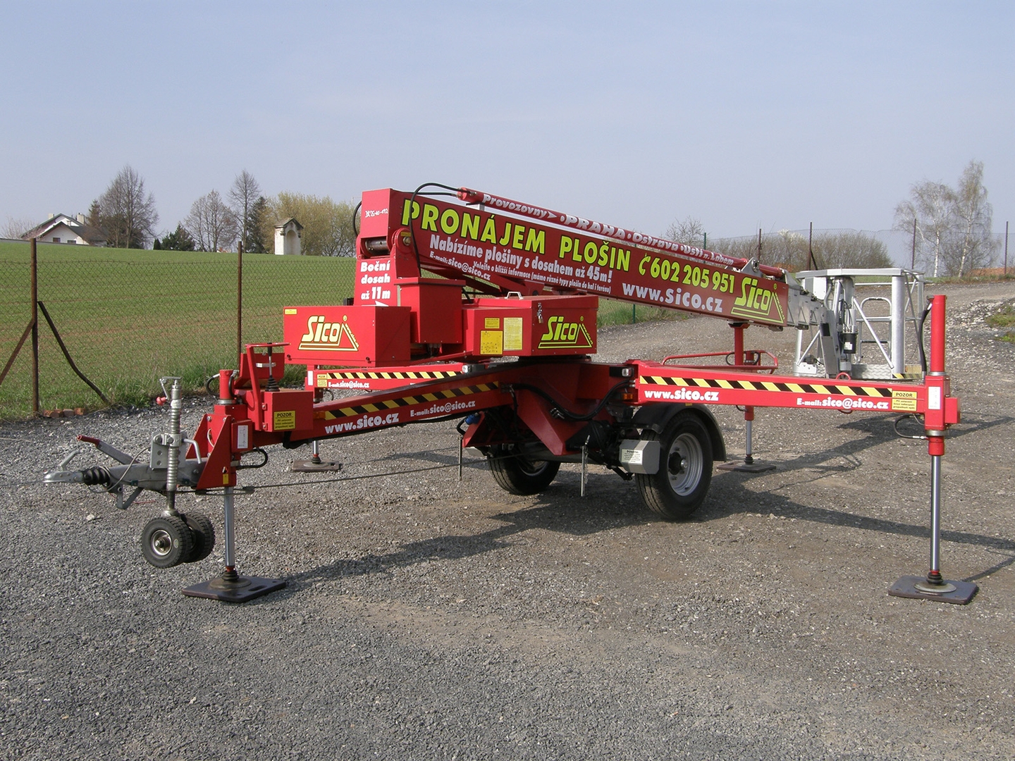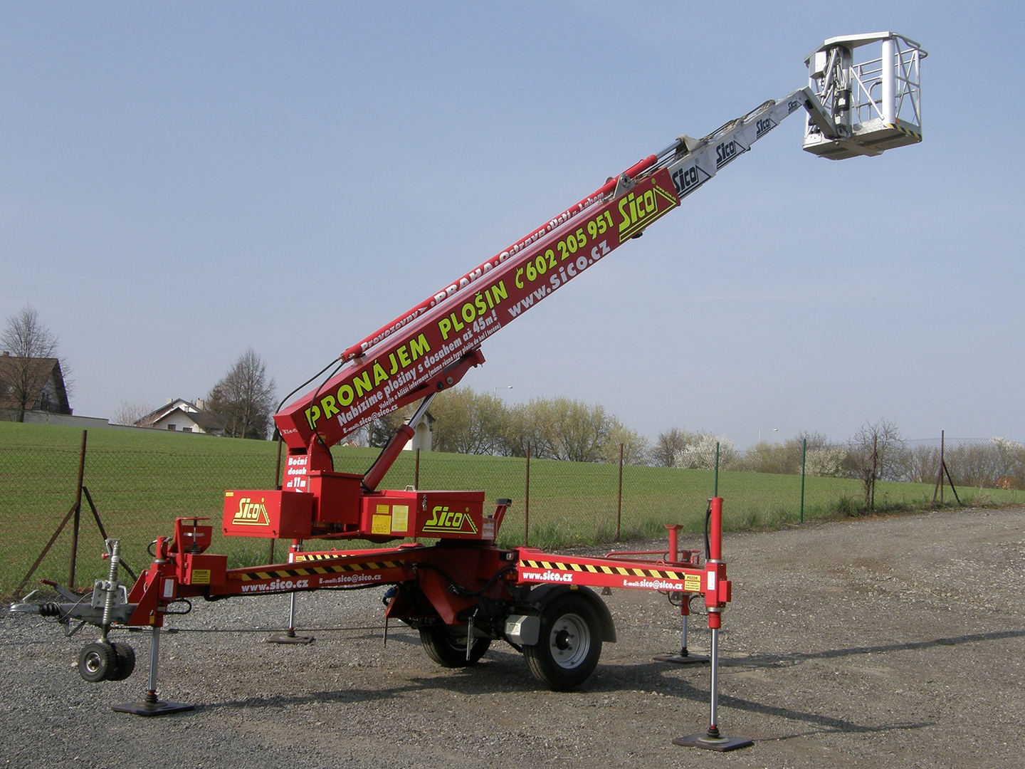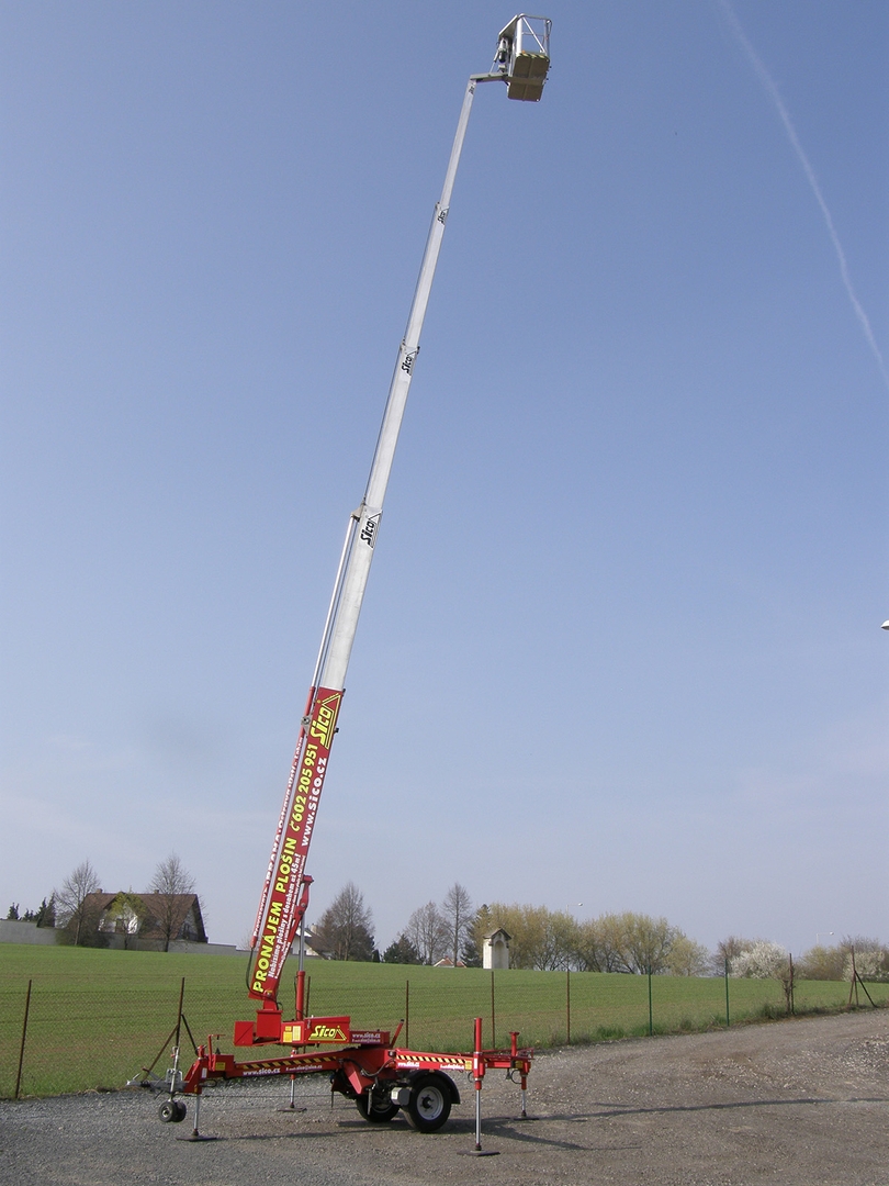 Telescopic boom, working height 25 meters, side reach 11,4 meters and a platform load capacity of 200 kilograms - this characterizes the Denka lift DK 25 trailer work platform.