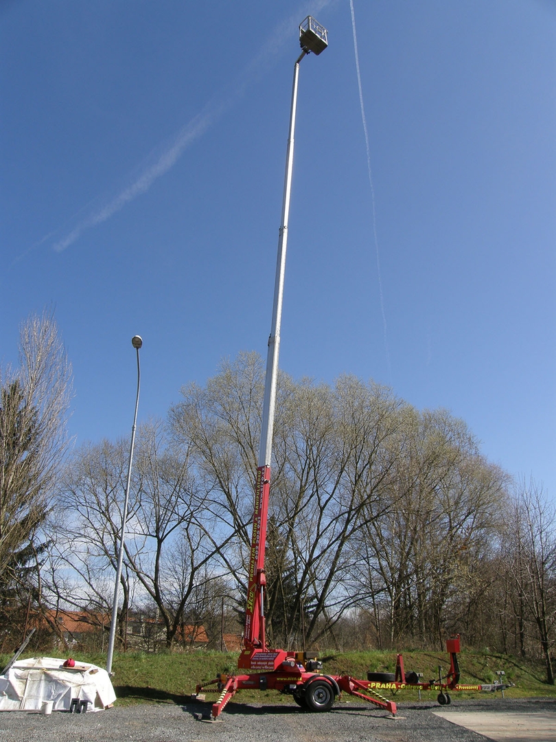 DL 30 is our highest trailer platform, the telescopic boom will get you to a height of up to 30 meters. The set machine takes up an area of less than 4,5 x 4,5 m.