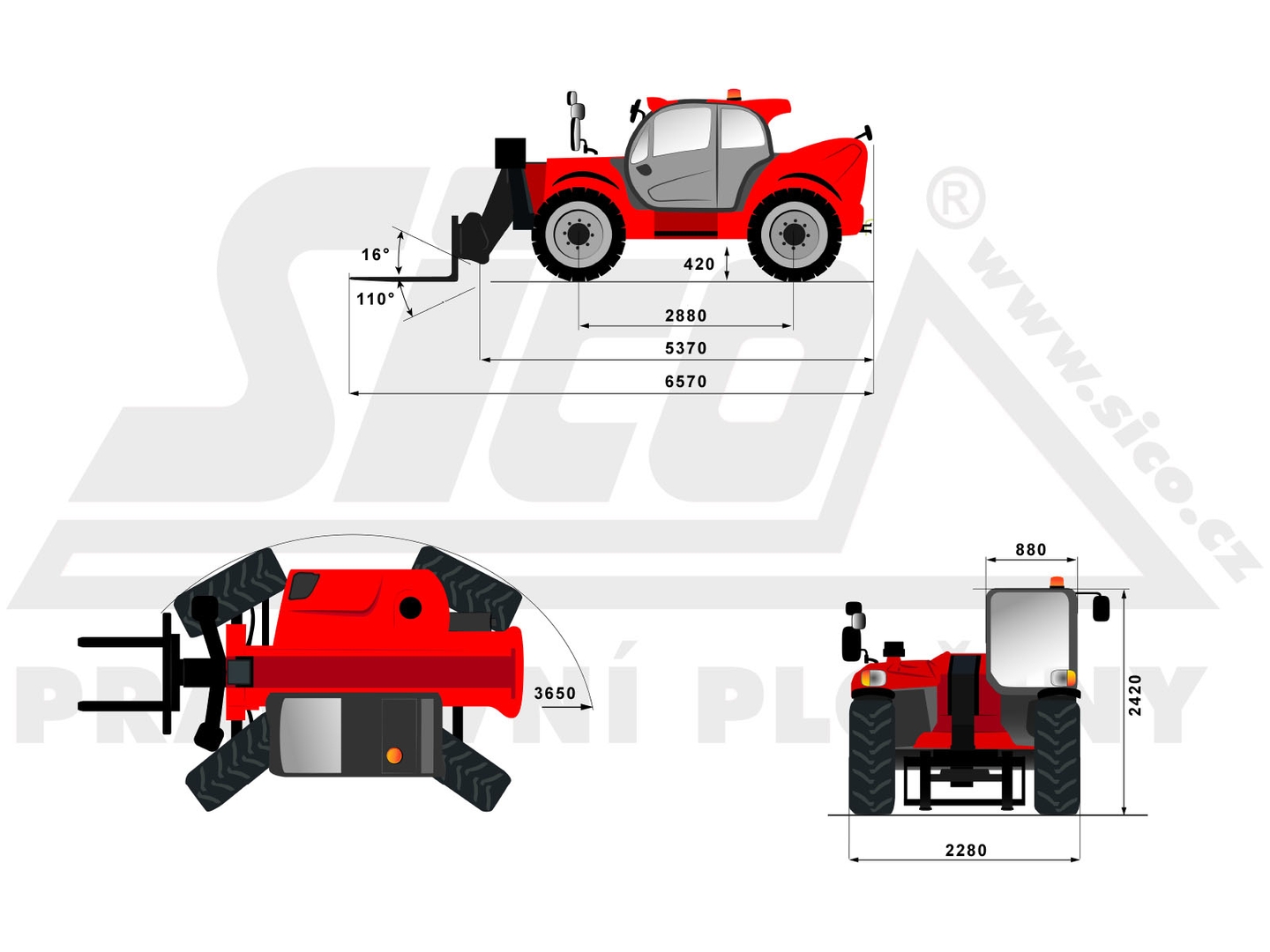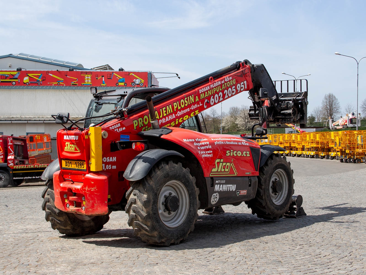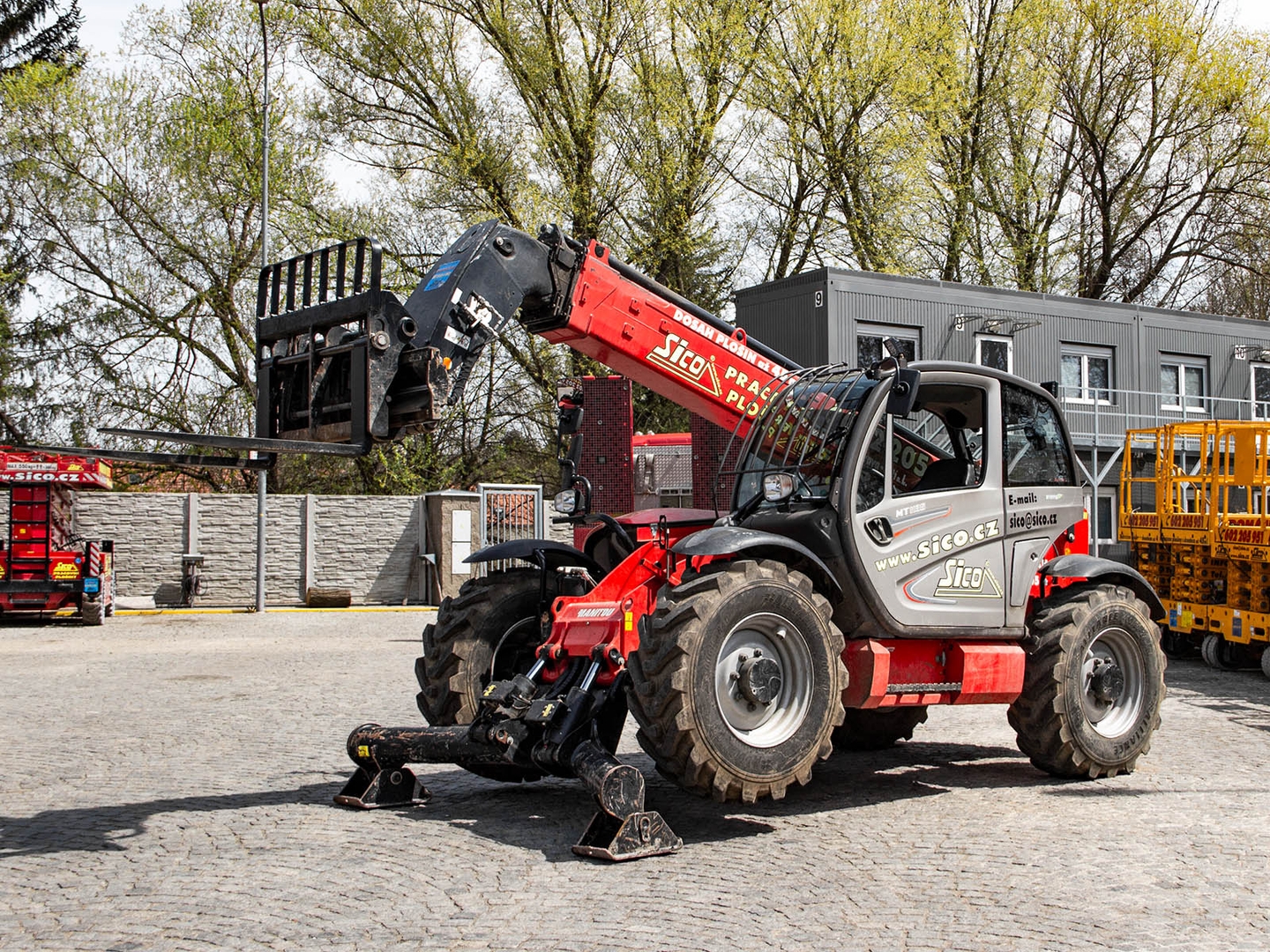 MT 1135 can compensate for lateral tilt in the interval + -10% and has a radius of only 3,6 meters. Combined with simple operation and small external dimensions, this makes the machine a universal device for a wide range of activities. The maximum height is 11,05 meters and the arm reaches a distance of up to 7,75 meters. We can equip the Manitou MT 1135 with palletizing forks (also extended), a bucket, but also a work platform.