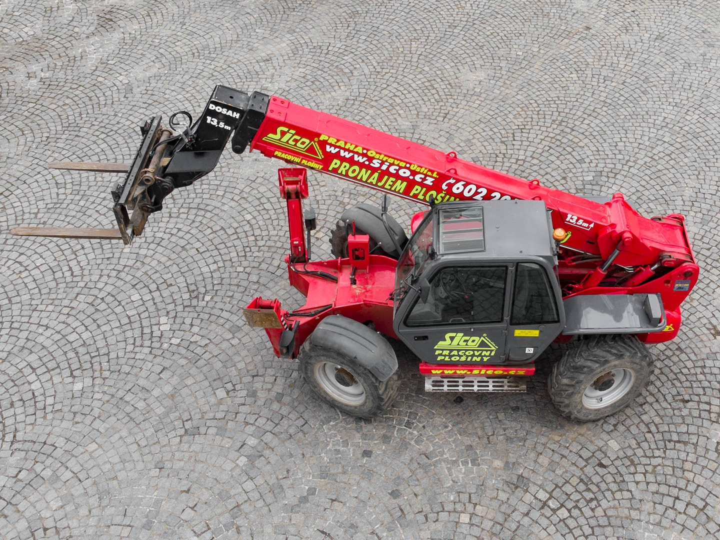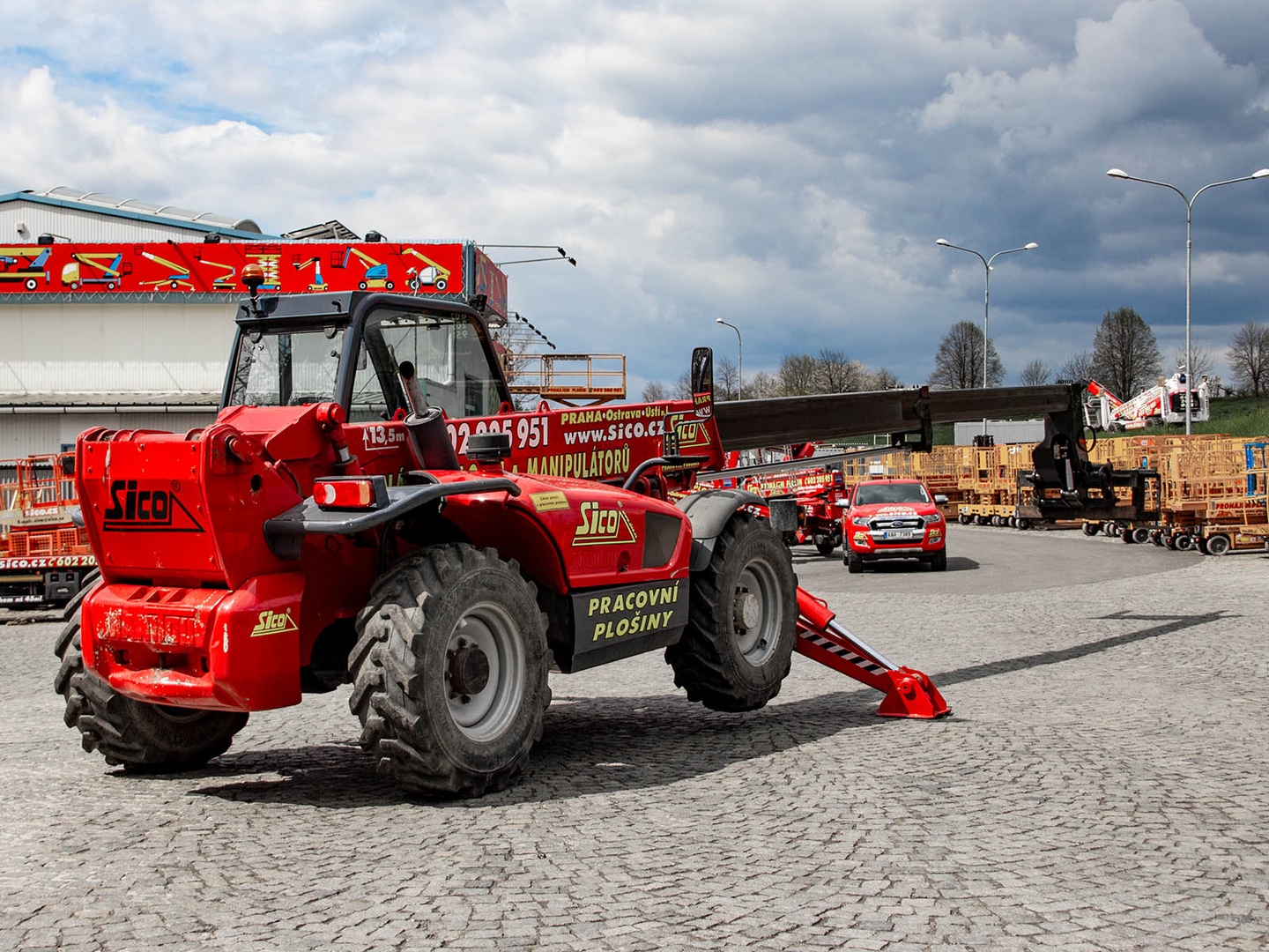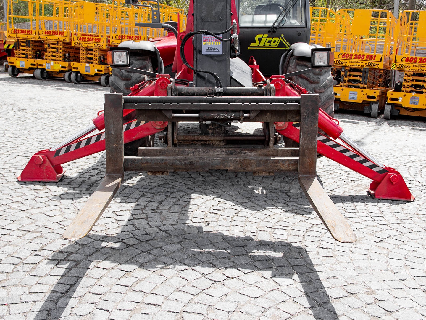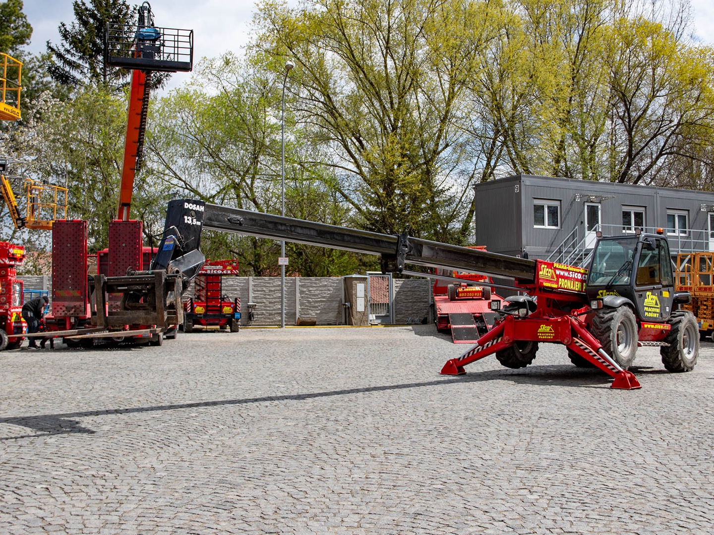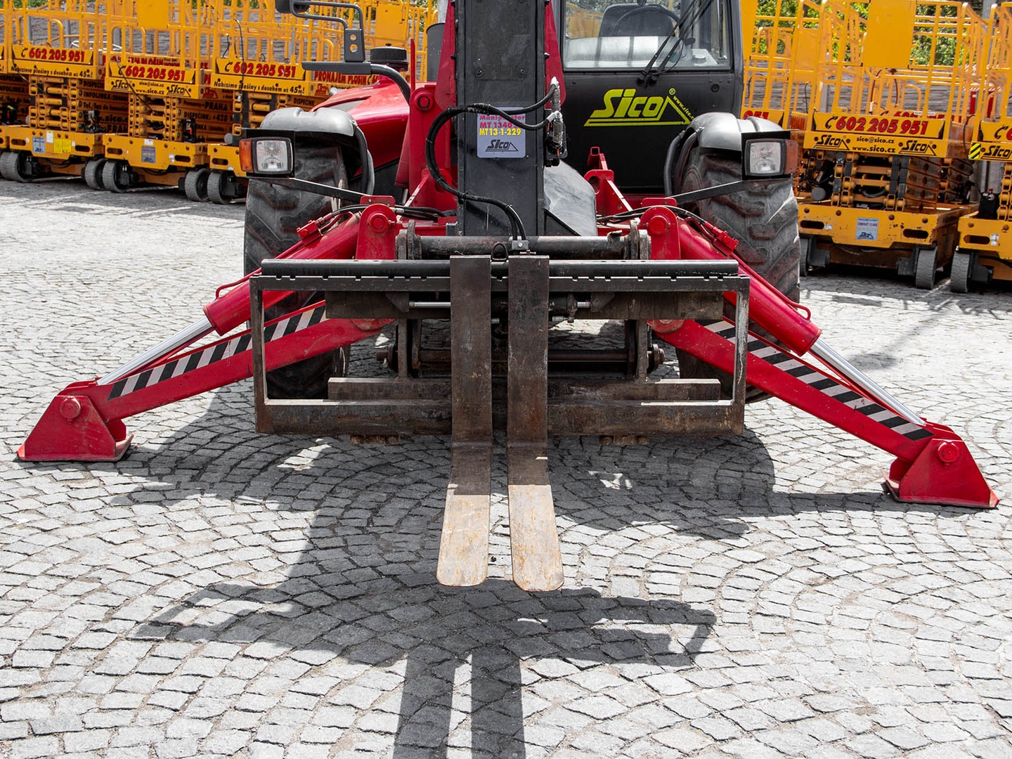We can equip the Manitou MT 1340 SLT with palletizing forks (also extended), a bucket, but also a work platform. The machine handles work in difficult terrain and handles a side slope of + - 10% - the tilt compensation system ensures safety when working. Thanks to the outer turning radius of less than 4 meters, it will be a good partner even in cramped spaces. Both turning axles allow the so-called crab operation. The maximum height is 13 meters and the reach of the arm is 9,34 meters.