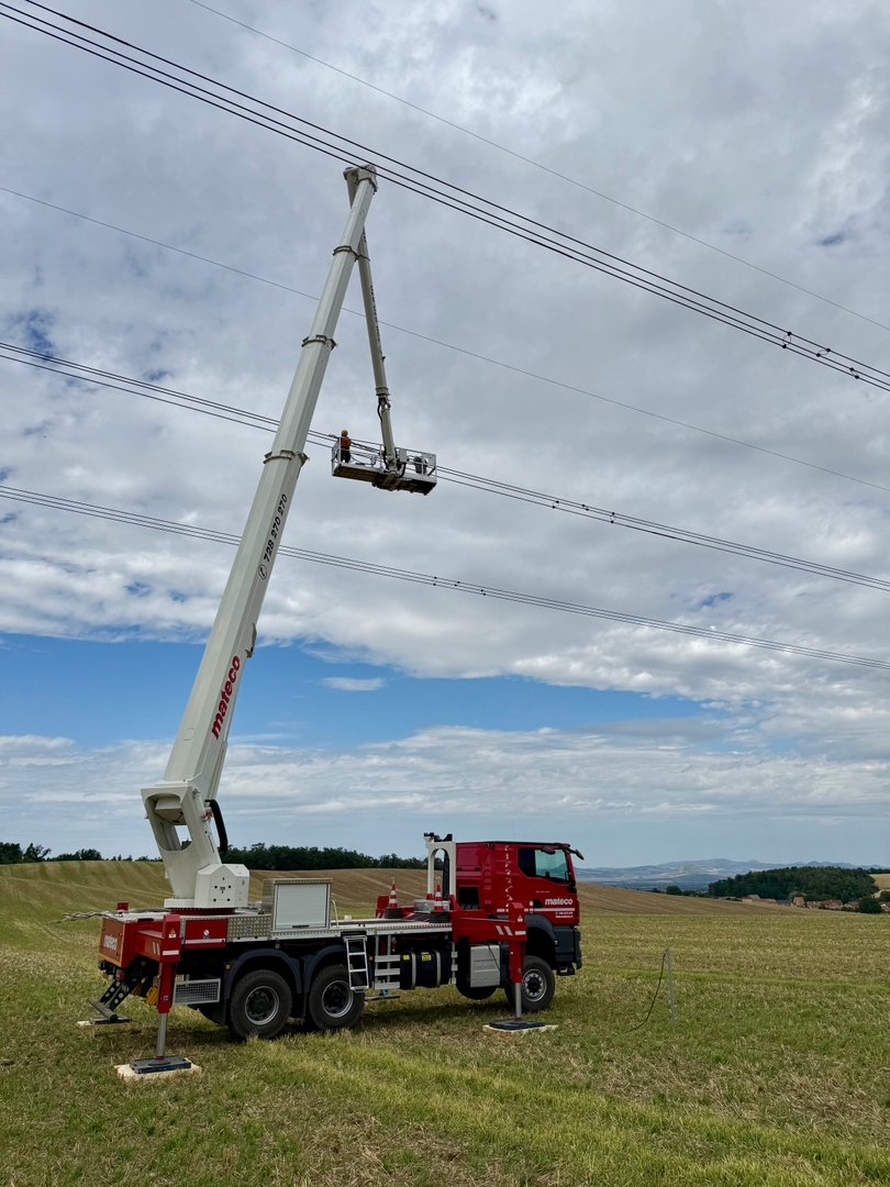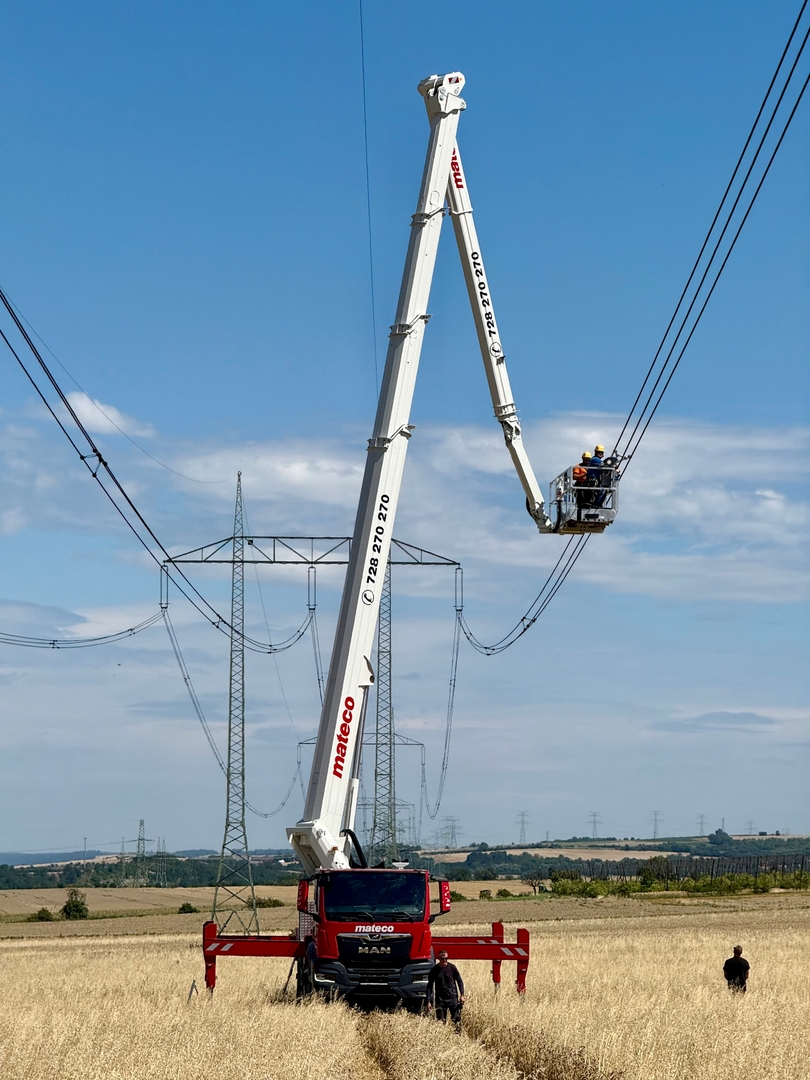 Použití této automobilové plošiny umožnilo bezpečný přístup k vysokonapěťovým vedením i náročným částem infrastruktury. Díky své vysoké nosnosti a rozsahu pohybu byla práce provedena efektivně, přesně a s maximálním důrazem na bezpečnost pracovníků.