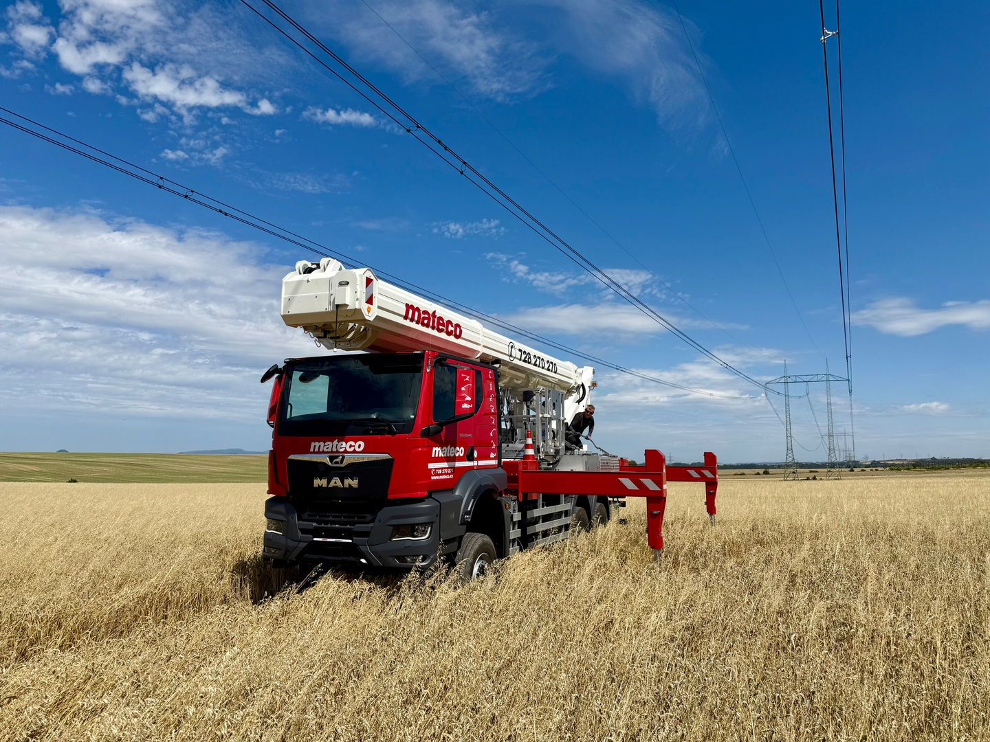 Při kontrole a servisu vysokého napětí na Žatecku jsme využili naši novou autoplošinu Ruthmann STEIGER® T 510 HF, která spadá do kategorie automobilové plošiny.