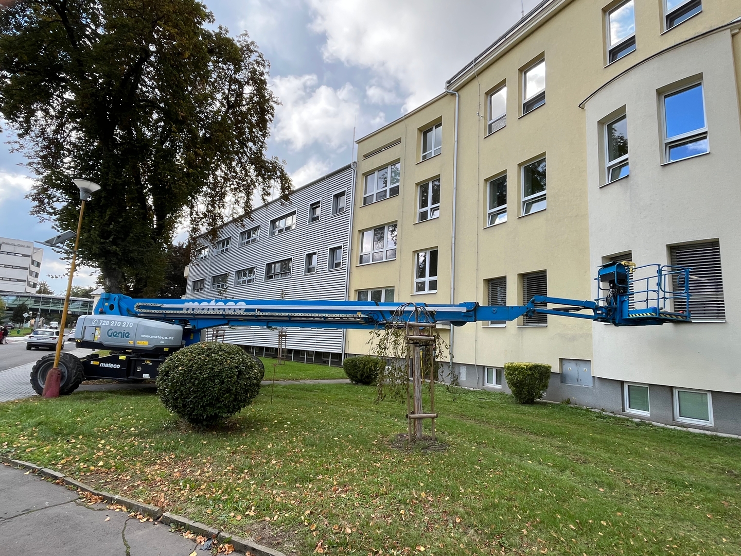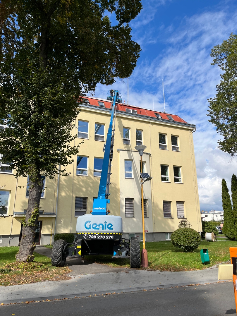 Při montáži hromosvodů v areálu Nemocnice Opava jsme zajistili kompletní technickou podporu formou pronájmu pracovních plošin. Pro tento projekt byla použita teleskopická pracovní plošina Genie S 125, která spadá do kategorie teleskopické plošiny.