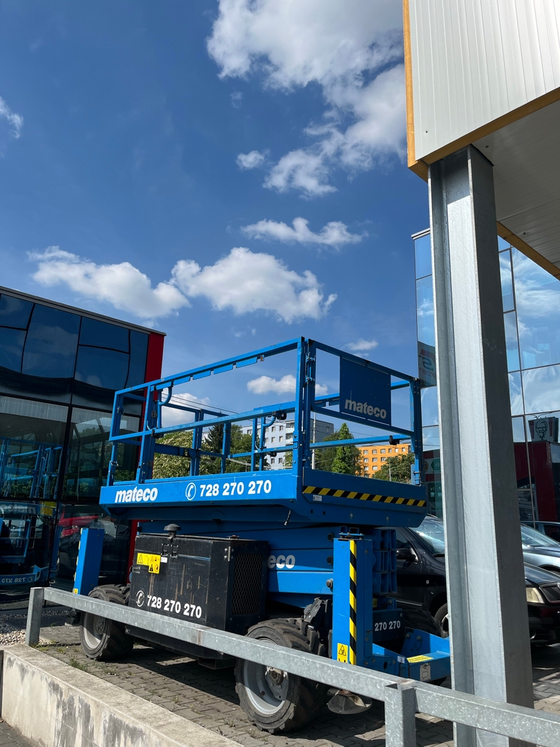 Díky volbě pronájmu nůžkové plošiny od společnosti mateco bylo možné práce provést efektivně, s důrazem na bezpečnost obsluhy i přesnost instalace opláštění.