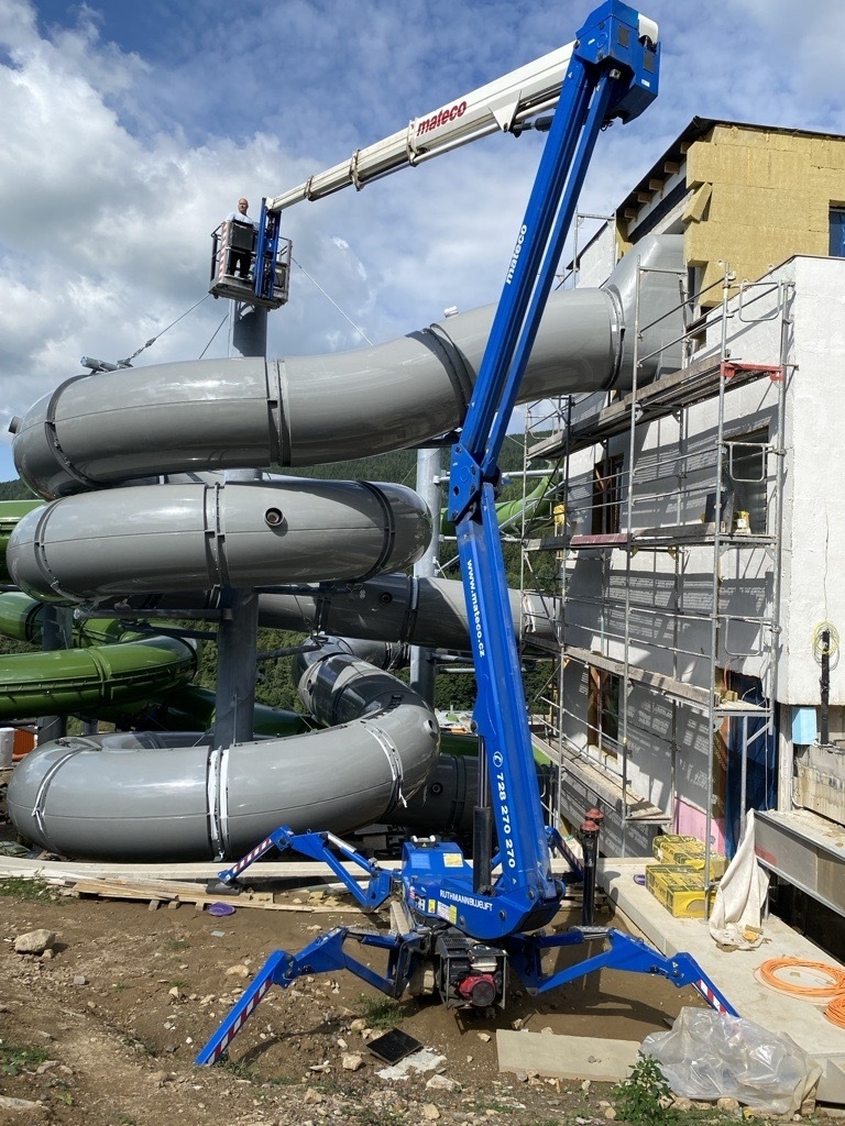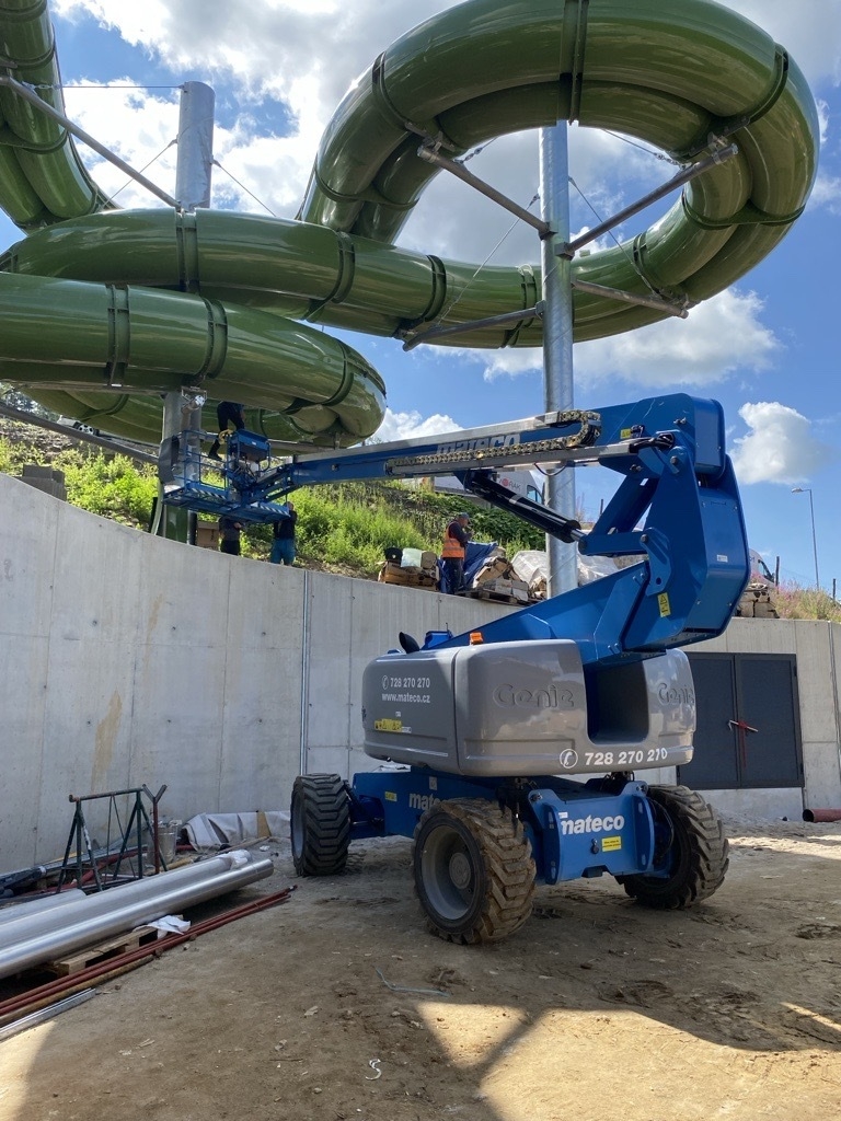 Tyto plošiny umožnily flexibilní pohyb v prostoru, překonání překážek a bezpečný přístup k výškovým částem konstrukce tobogánu tam, kde přímý výstup nebyl možný. Během práce byla důležitá stabilita, nosnost, přesné ovládání i důraz na bezpečnost pracovníků.