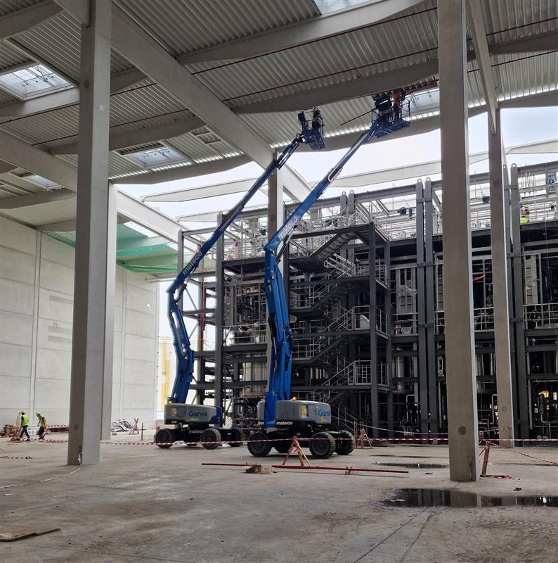 Na projektu Phoenix v Bohumíně jsme zajistili pronájem pracovních plošin pro specializované výškové práce při montáži sprinklerového systému. Pro tento účel byly nasazeny dvě kloubové pracovní plošiny Genie Z-60/37DC z kategorie kloubové plošiny, které díky svému elektrickému pohonu a flexibilnímu dosahu umožnily bezpečný a efektivní přístup do všech potřebných částí výrobní haly.
