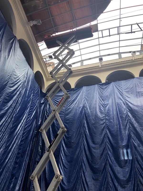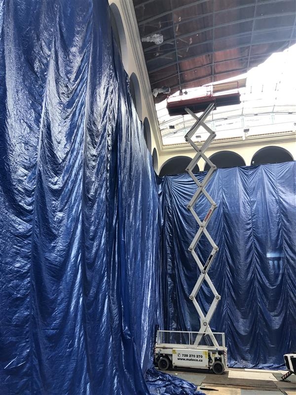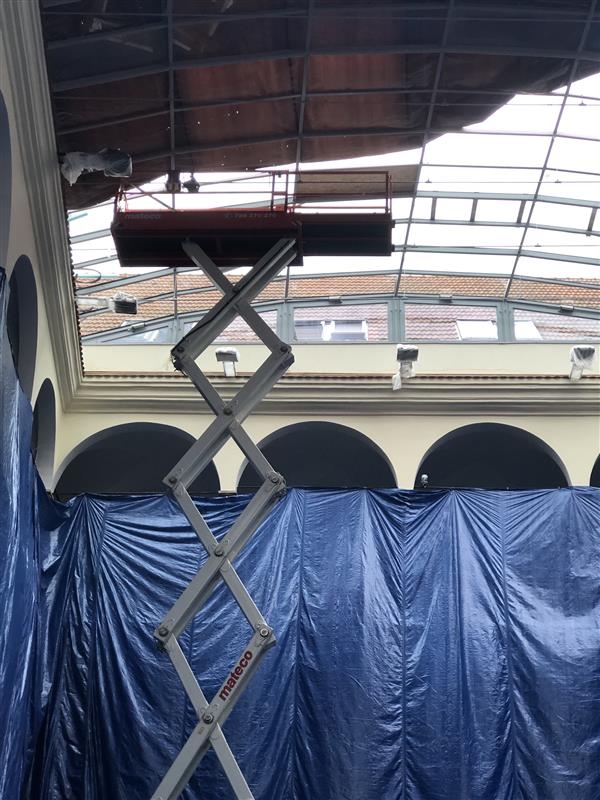 Tato pásová pracovní plošina JLG X20J se díky svému kompaktnímu designu a nízké hmotnosti ukázala jako ideální řešení pro práce v historických prostorách, kde je třeba dbát na maximální ohleduplnost vůči stavbě. Její tichý elektrický provoz, vysoká přesnost ovládání a výborná stabilita umožnily bezpečné a efektivní provedení všech prací bez ohrožení okolní architektury.