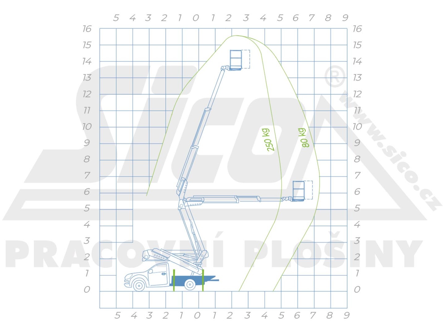 Stroj využívá dvouramenné kloubovo-teleskopické kostrukce umožnující stranový dosah až 7,3 metru při zatížení koše 80 kilogramy. Ovládání je plně proporcionální a velmi přehledné a intuitivní. Stroj je navíc vybaven elektropohonem (230V). Maximální stabilitu při práci ve výšce zajišťují 4 hydraulické opěry a o bezpečnost pracovníků se starají zámky hydraulických válců, které brání ztrátě tlaku. Hmotnost stroje nepřesahuje 3,5 tuny a tím pádem je možné zapůjčení s řidičským průkazem skupiny B. VYZVEDNU A VRÁTÍM - obecné podmínky a vysvětlení zde.Podmínky pronájmu, doporučení k používání, informace ke školení a výpis zakázané manipulace najdete zde.