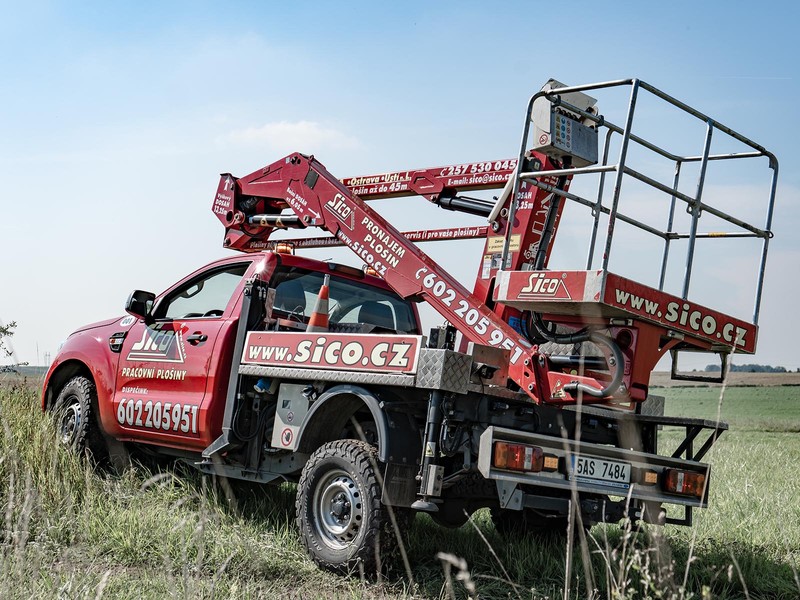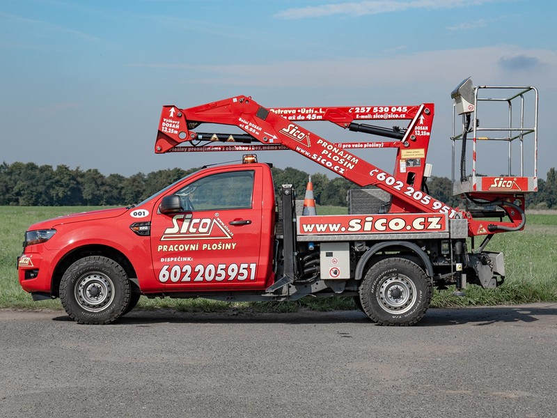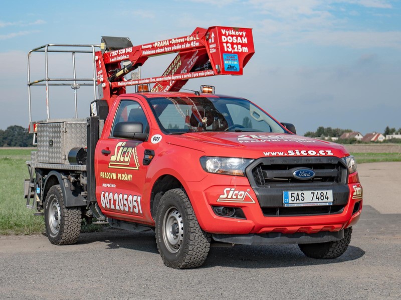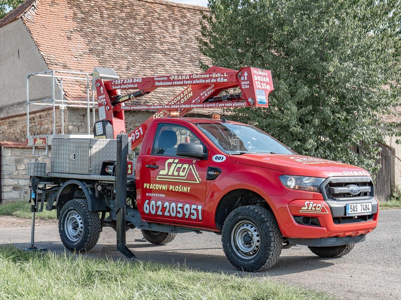 Rychlá, snadno ovladatelná, spolehlivá a cenově velmi dostupná autoplošina Ford Ranger E140P 4x4 s pracovní výškou až 13,2 metru.