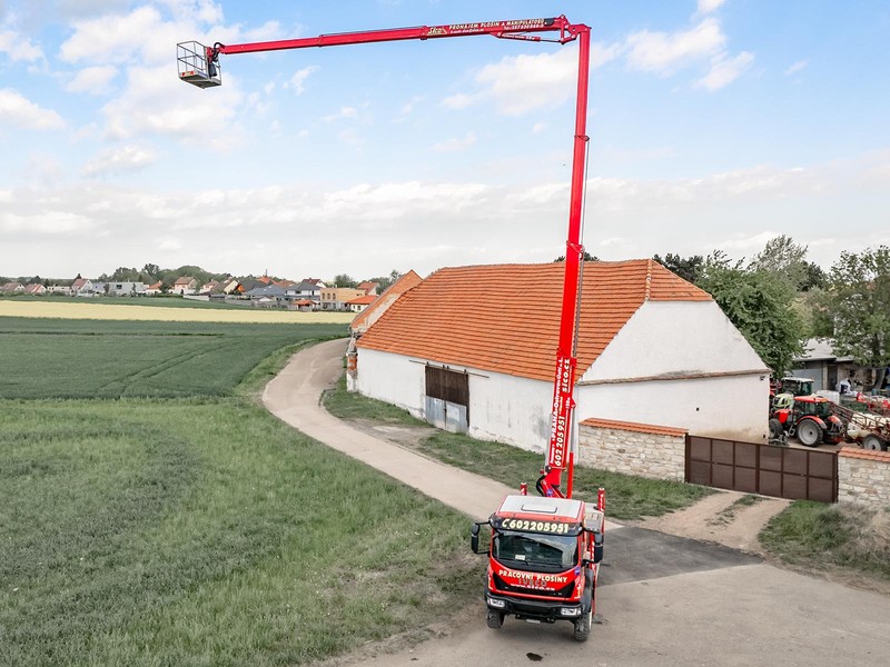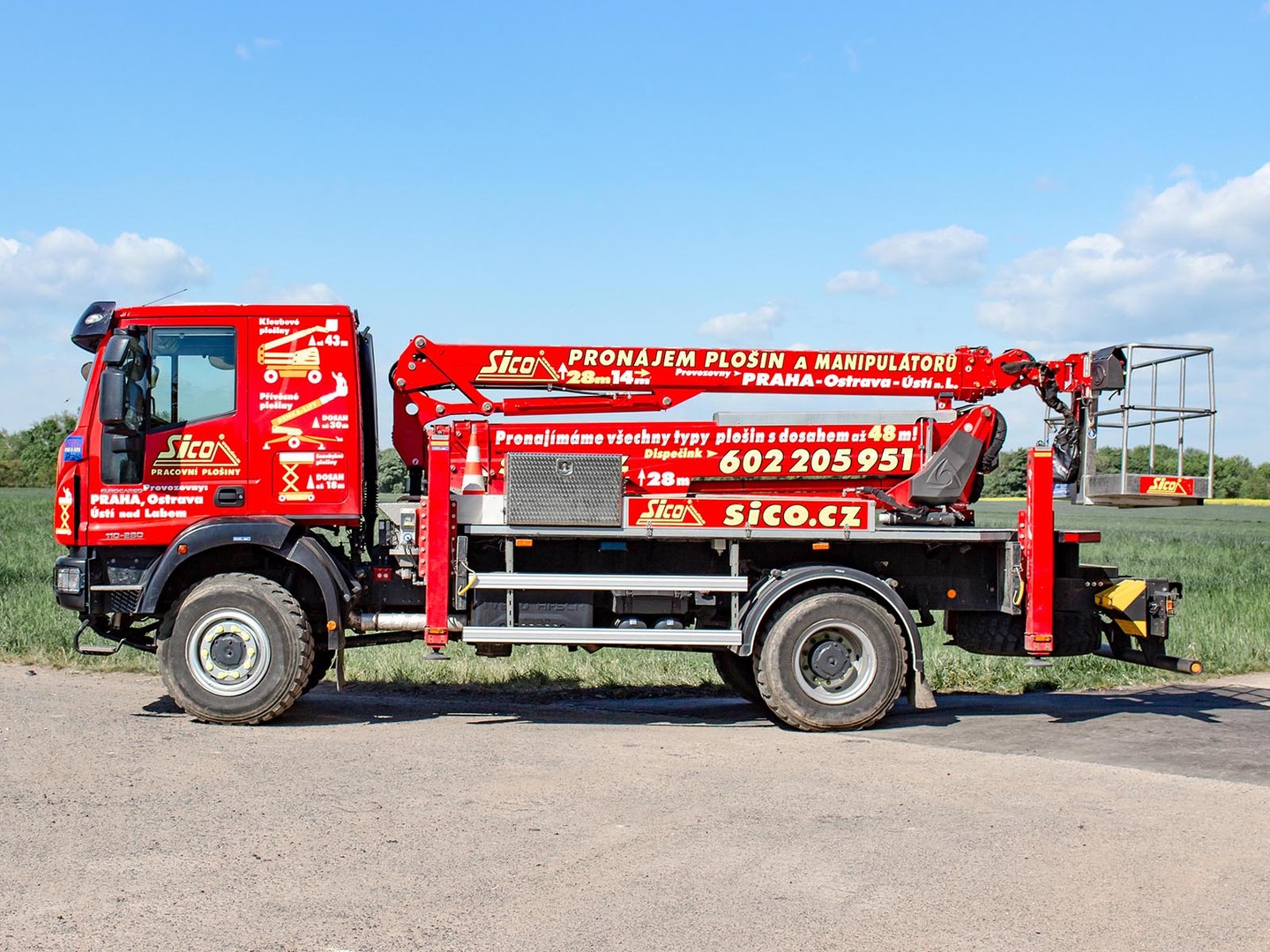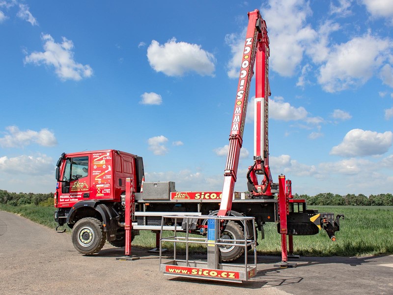 Autoplošina výrobce Cela je v poměru pracovní výška a průchodnost terénem tím nejlepším, co máme. Vezme vás až do 28 metrů.