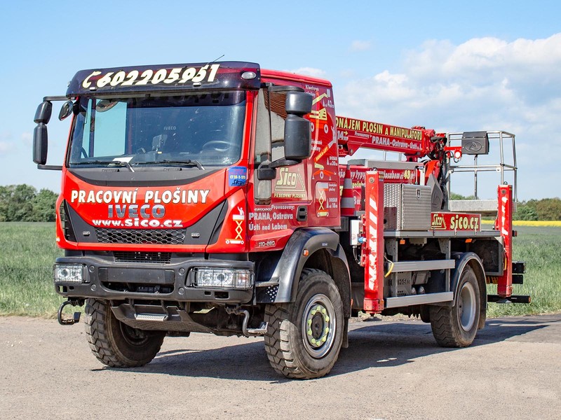 V 16 výškových metrech vás dostane až 14 metrů do strany. Koš jde snadno nahradit jeřábovým hákem o nosnosti 390 kg. Podvozek IVECO Eurocargo je osazen terénními pneumatikami a všechna kola jsou poháněná. Ustavení stroje je rychlé a při práci na více místech vás téměř nezdrží, intuitivní proporcionální ovládání vám umožní plynulý přístup do stísněných prostor a dosah 6 metrů pod úroveň podvozku z DT28 činí dostupný univerzální pracovní stroj. Autoplošina splňuje přísné bezpečností předpisy a mezinárodní normy. Stabilita plošiny je zajištěna pomocným rámem vozidla se čtyřmi výsuvnými podpěrami, které zachycují zatížení plošiny. Podmínky pronájmu, doporučení k používání, informace ke školení a výpis zakázané manipulace najdete zde.