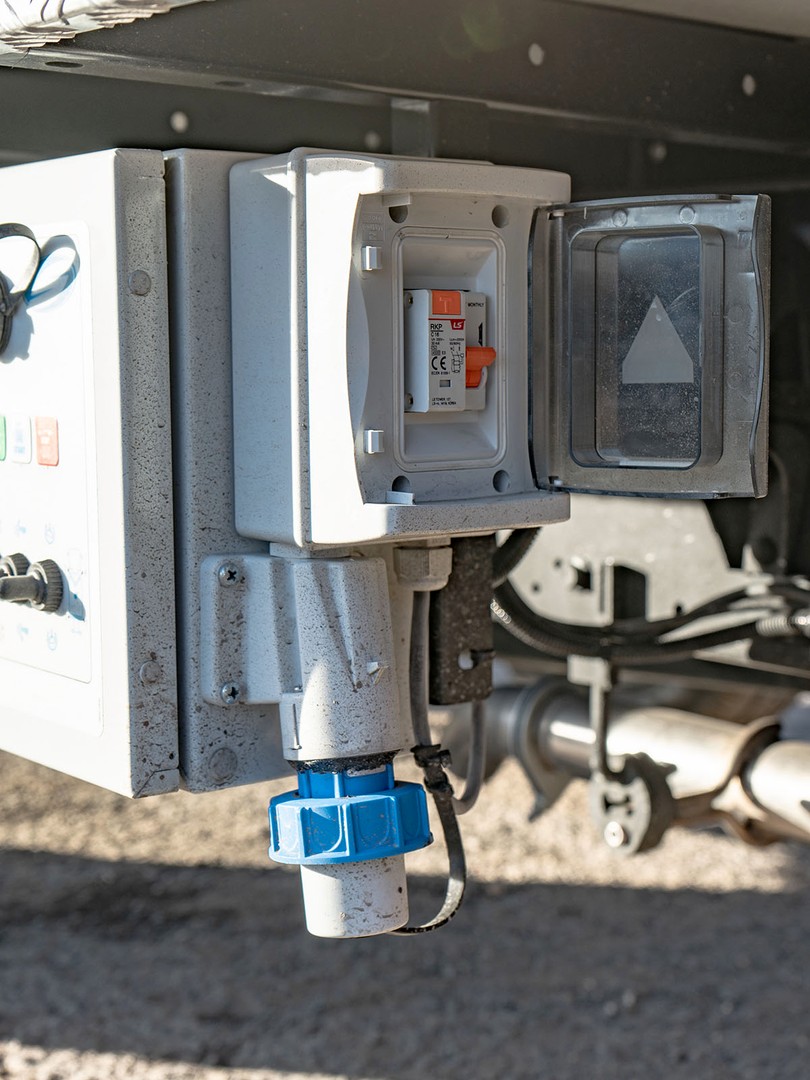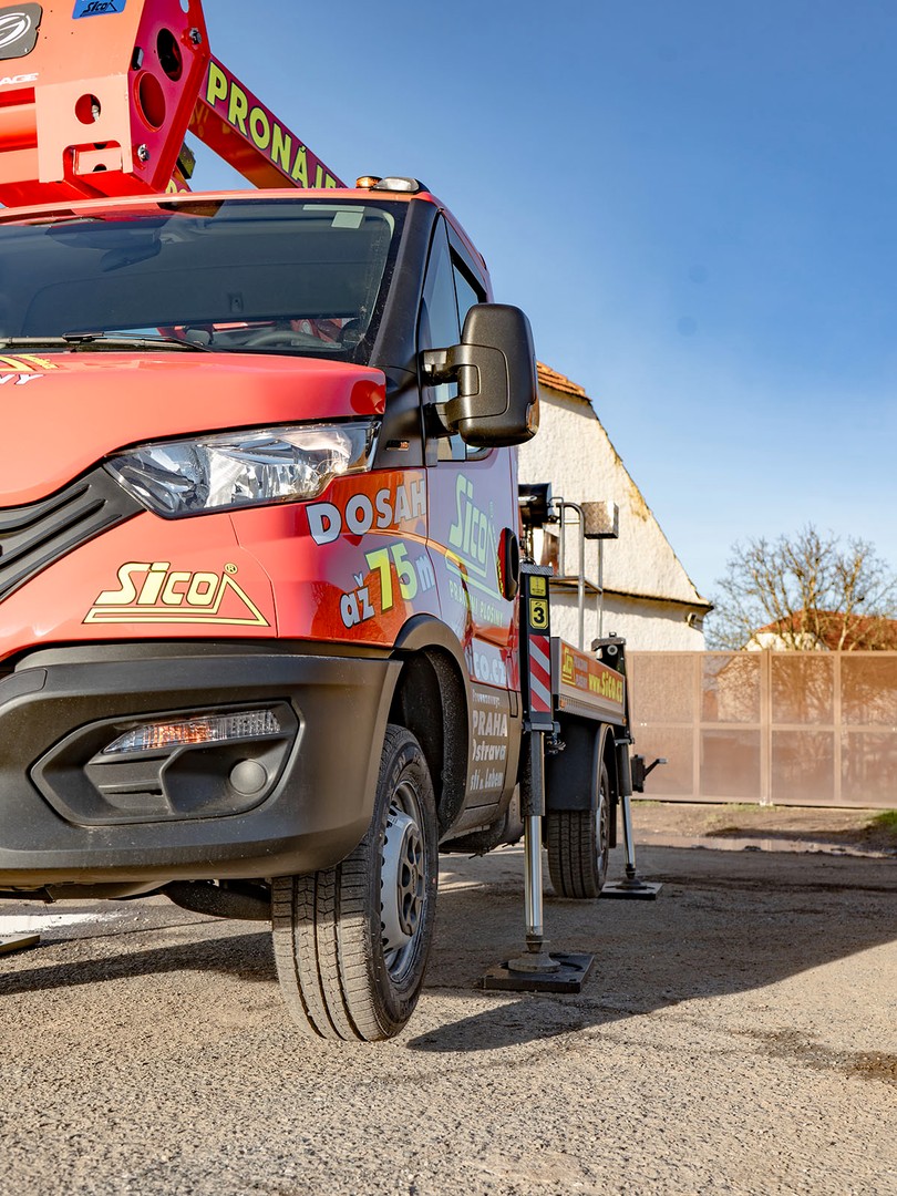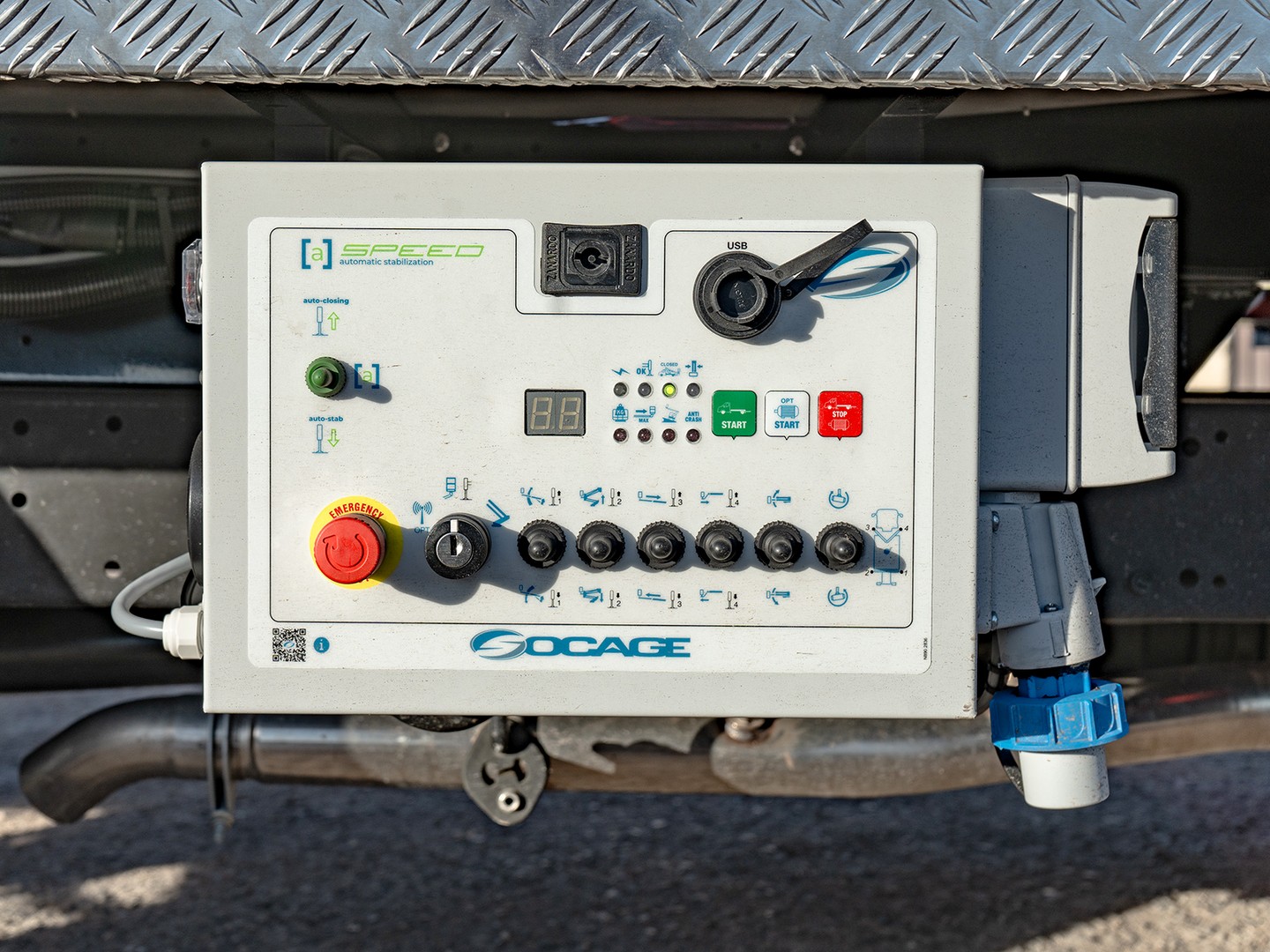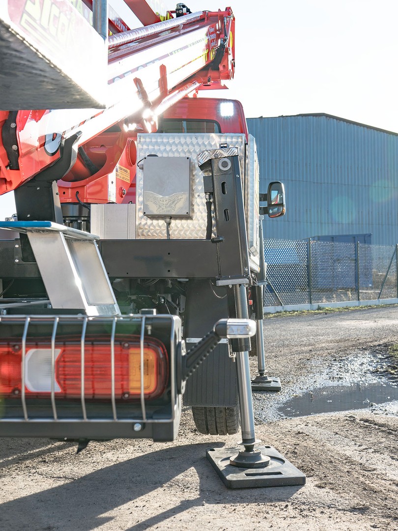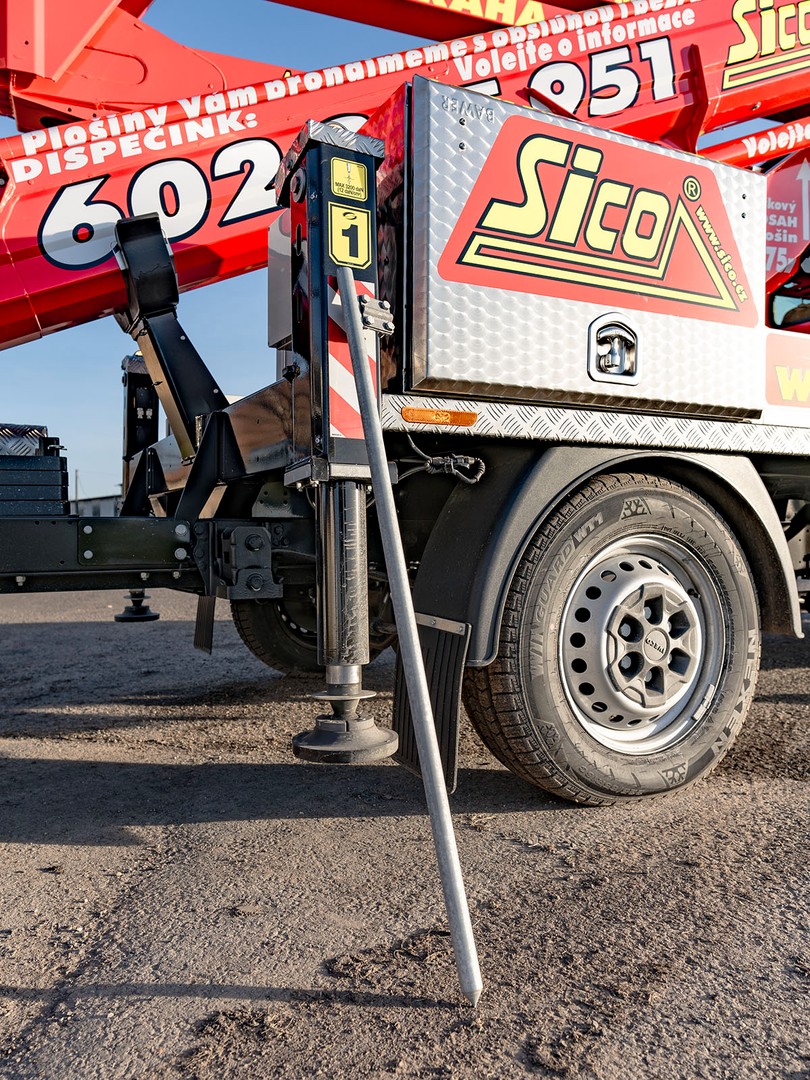 Stabilitu zajišťují 4 opěry (kopírující tvar vozu) s dostatečným zdvihem a o bezpečí při práci se stará celá škála systémů včetně náklonoměru, zámků hydraulických ventilů, čidel vyhodnocujících zatížení. Plošina umožňuje vzdálené nouzové ovládání.