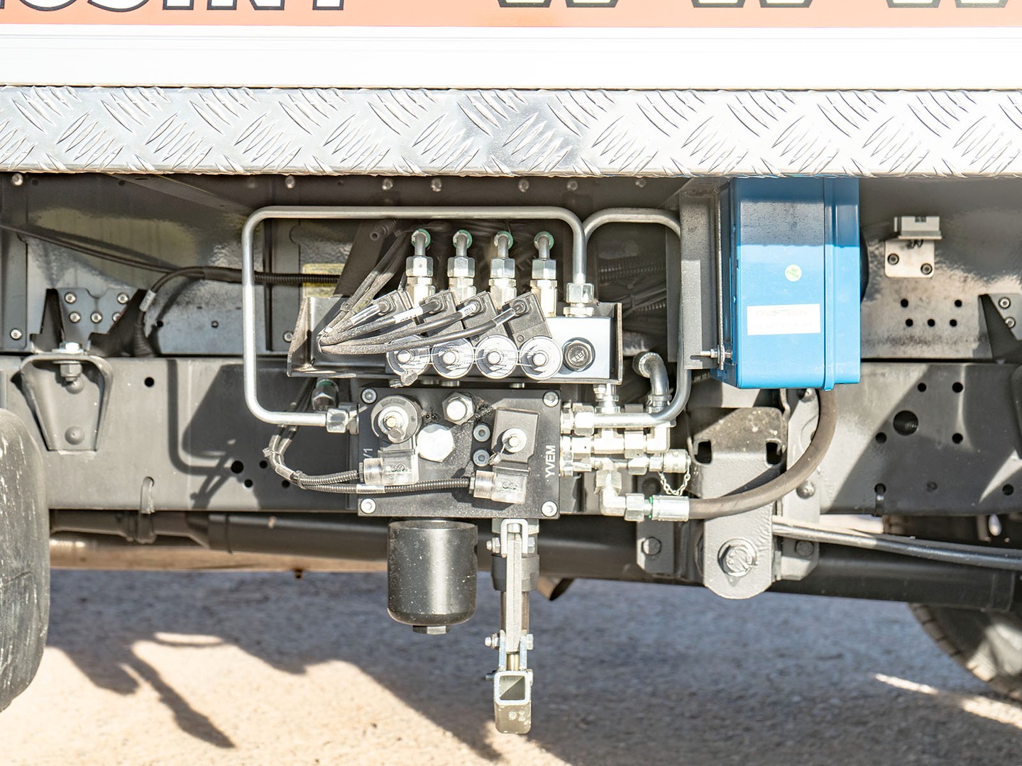 Autoplošina je vybavena funkcí automatického ustavování a balení. Tato funkce je dostupná i z pracovního koše. Nástavba je otočná o 700°, pracovní koš pak umožní rotaci v intervalu 90° na obě strany. Ovládání je intuitivní a proporcionální řízení funkcí a simultální pohyby umožní velice přesnou manipulaci.