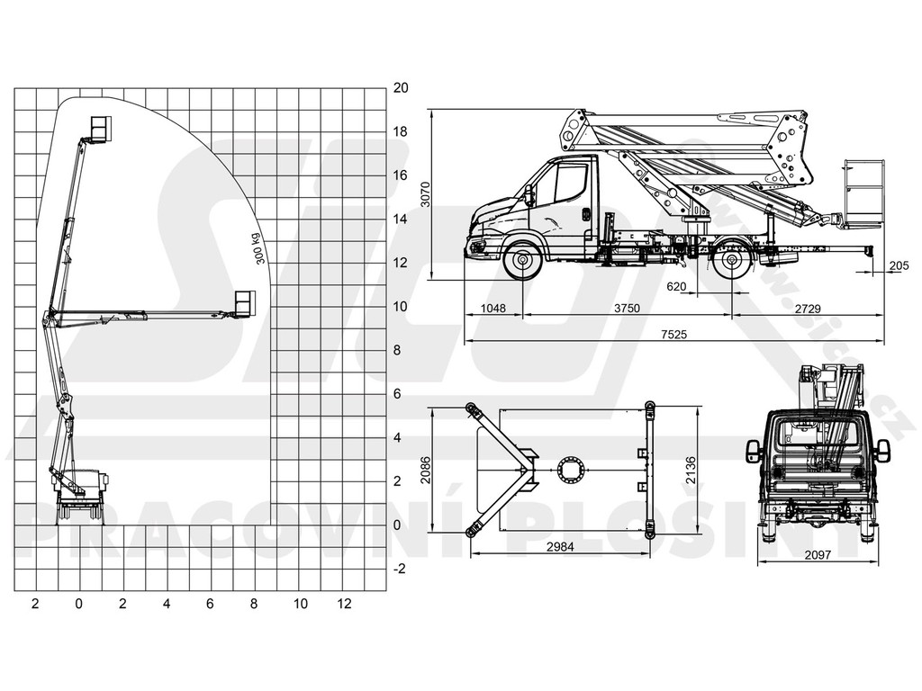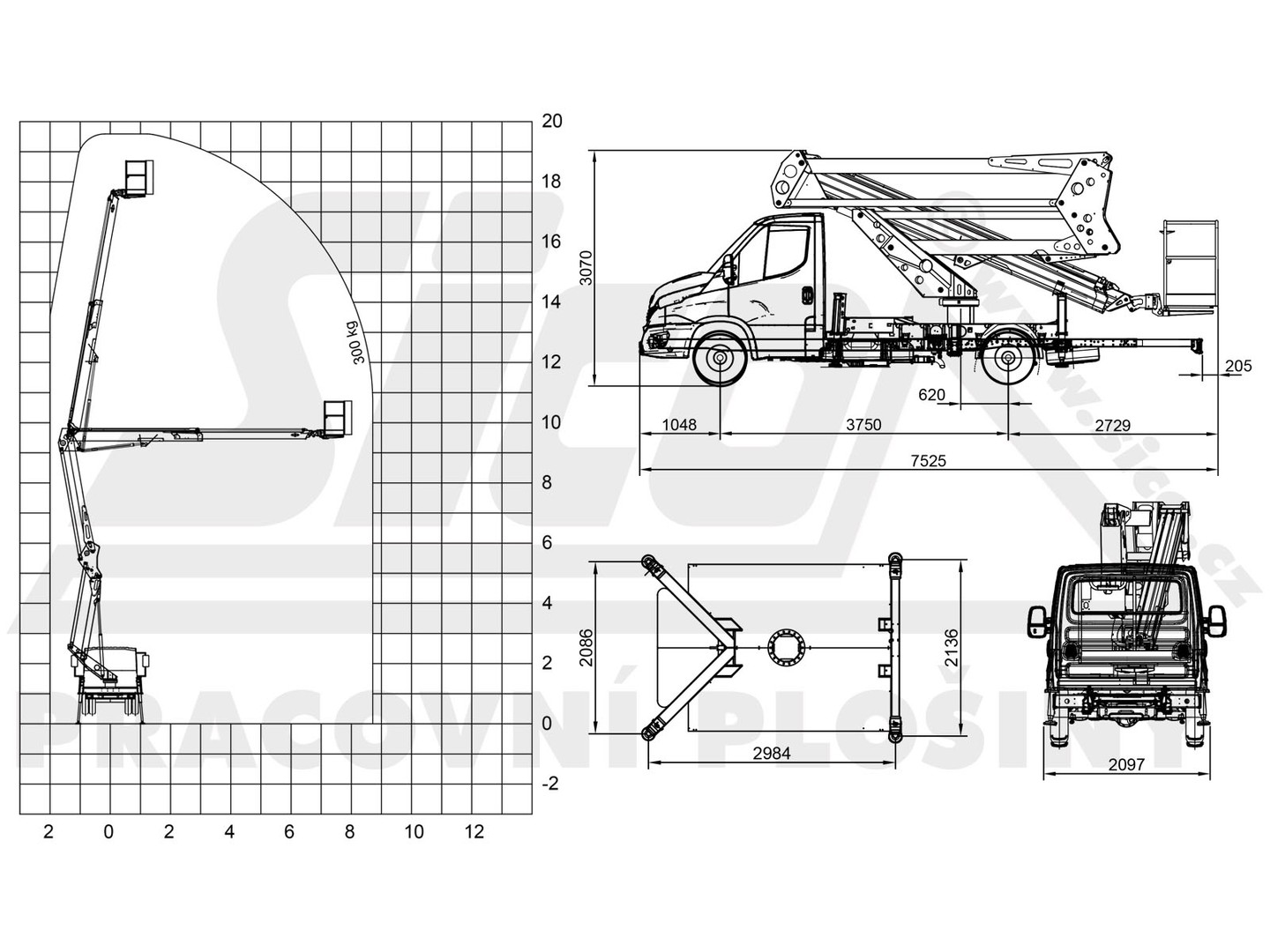 Kloubová konstrukce 20D SPEED doplněná teleskopickým výložníkem umožní práci ve výšce 19,6 metrů a dovolí stranový dosah až 8,7 metrů a to do výšky více než 10 metrů. Nosnost a rozměry koše jsou dimenzovány pro dva montéry s nářadím - 300 kilogramů, rozměr 1,4 x 0,7 m.
