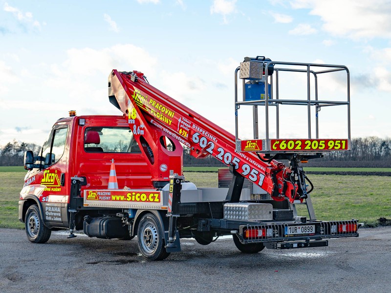 Kvalitní ocel a inovativní konstrukce teleskopické nástavby zajistí jistotu i v maximální výšce 17,7 metru. Maximální stranový dosah je závislý na zatížení pracovního koše a zastaví se na hodnotě 10 metru při 80 kilogramech.