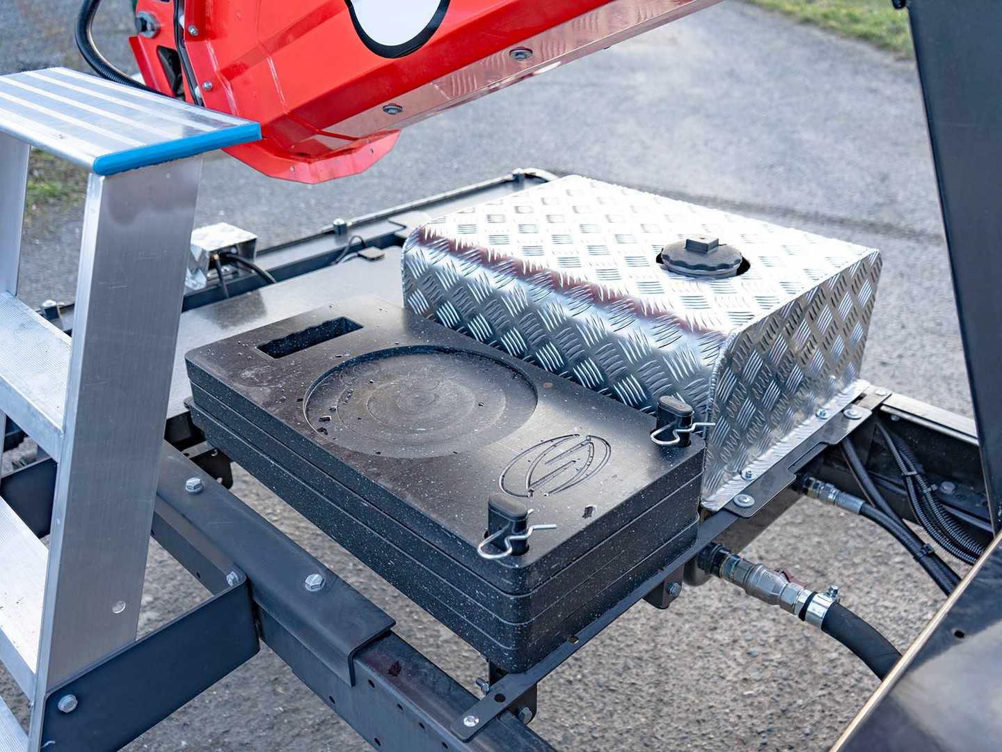 Stabilitu zajišťují 4 opěry s dostatečným zdvihem a o bezpečí při práci se stará celá škála systémů včetně náklonoměru, zámků hydraulických ventilů, čidel vyhodnocujících zatížení. Plošina umožňuje vzdálené nouzové ovládání.