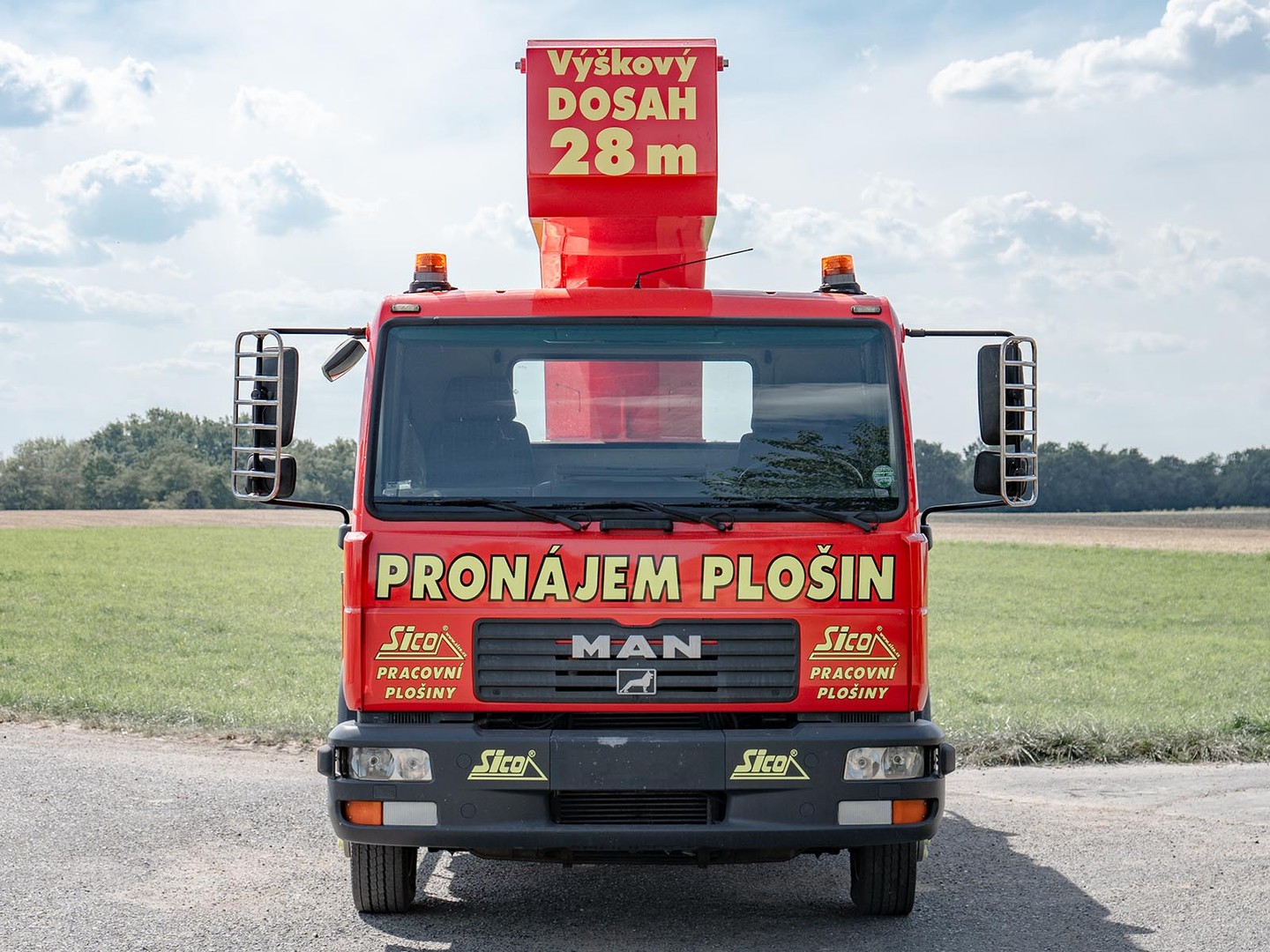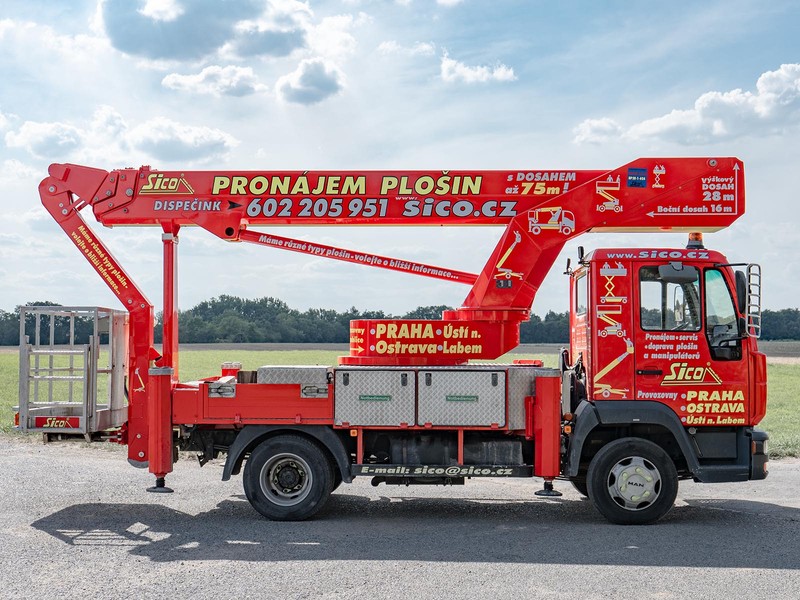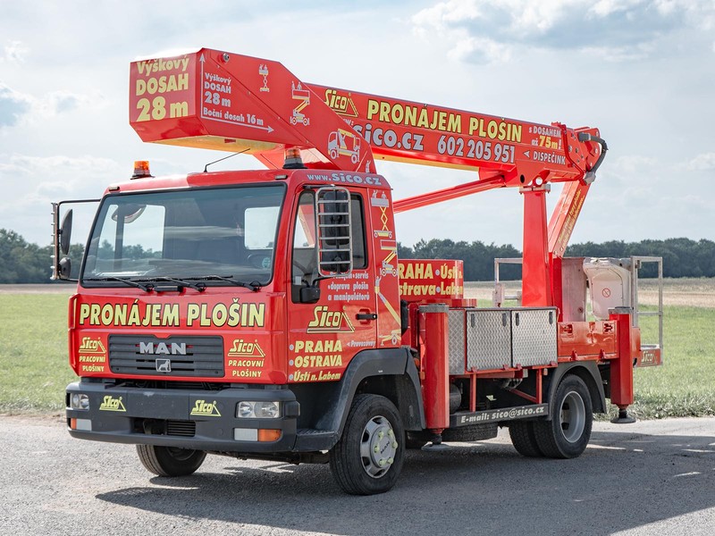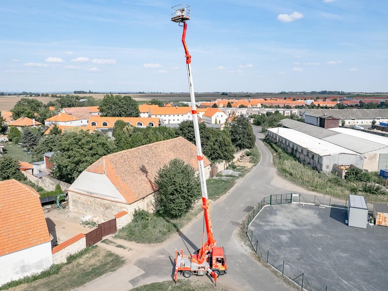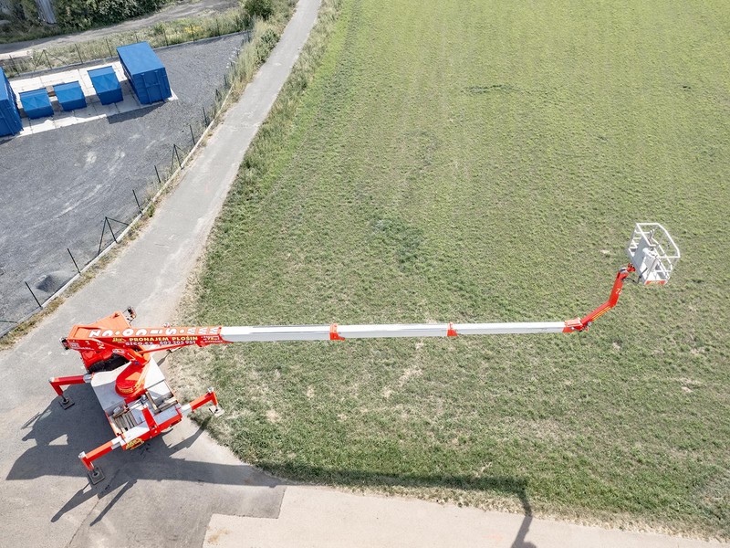 Robustní patentovaná konstrukce výrobce Bison-Palfinger s teleskopický výložníkem s JIB ramenem zajistí potřebnou stabilitu při pracích ve výšce až 28 metrů.