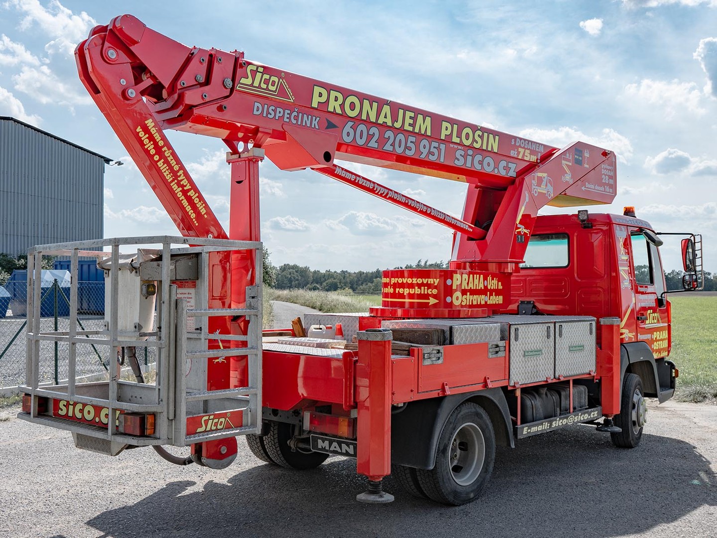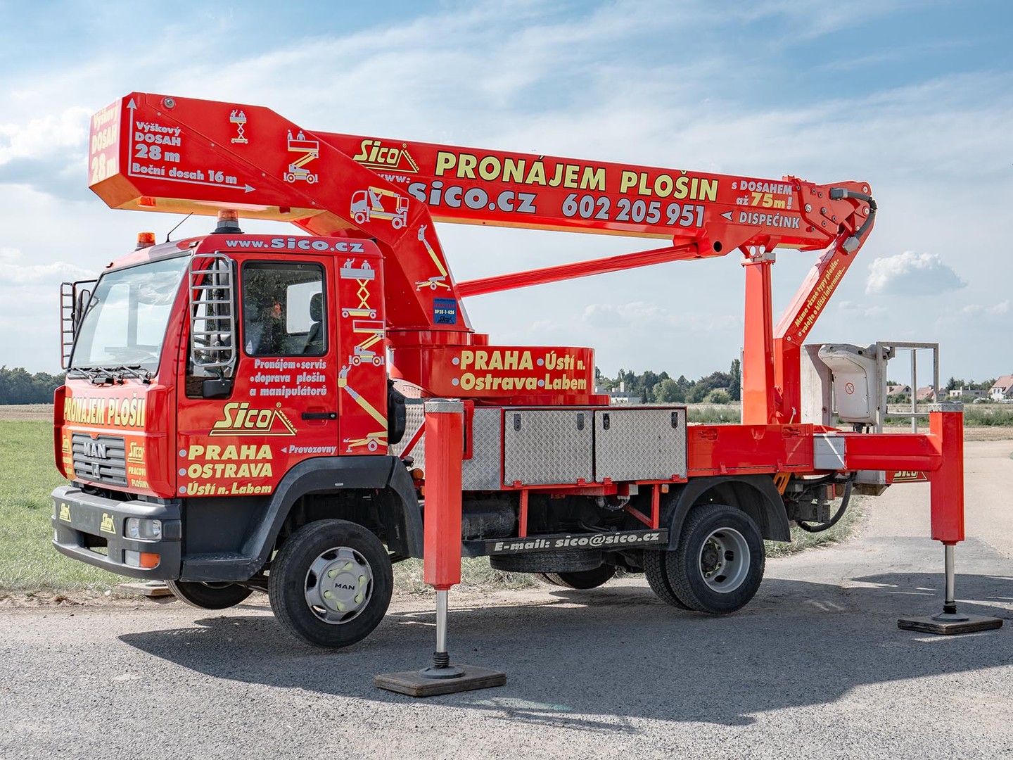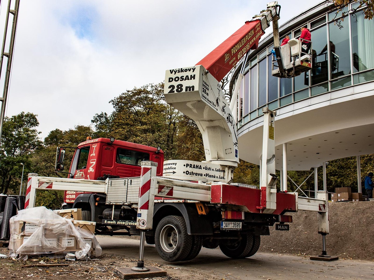 Robustní patentovaná konstrukce výrobce Bison-Palfinger s teleskopický výložníkem s JIB ramenem zajistí potřebnou stabilitu při pracích ve výšce až 28 metrů.